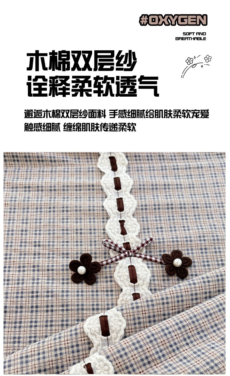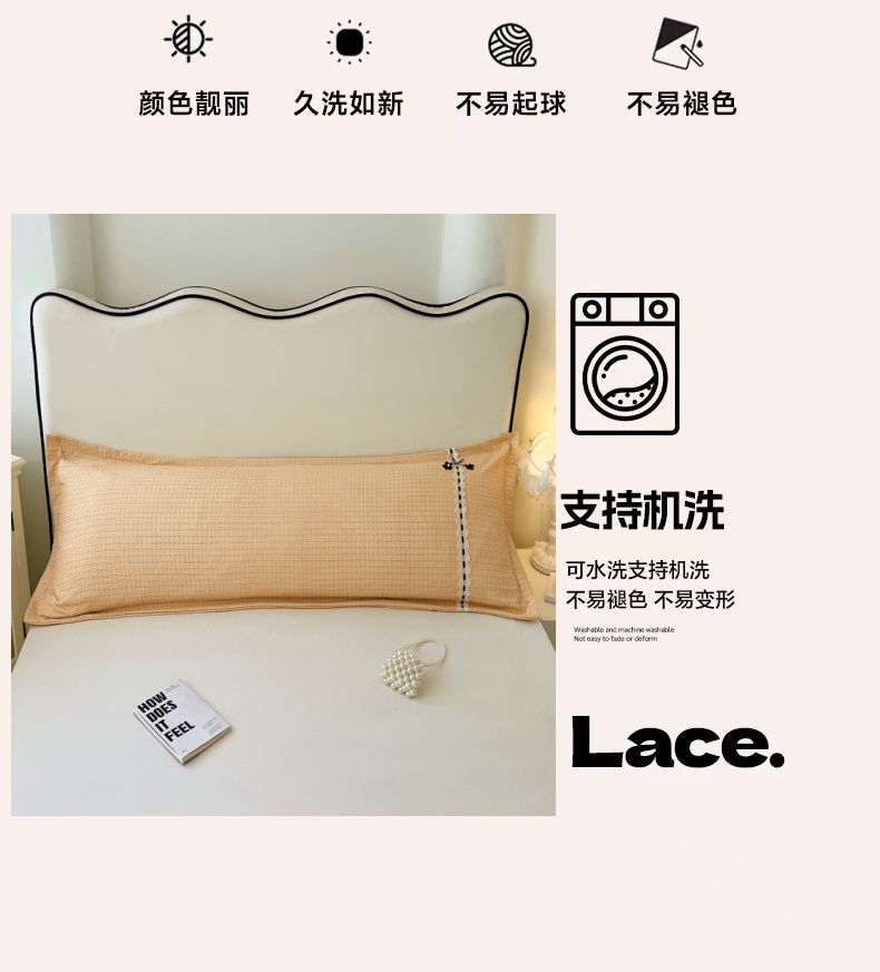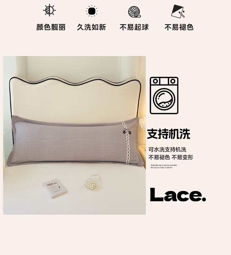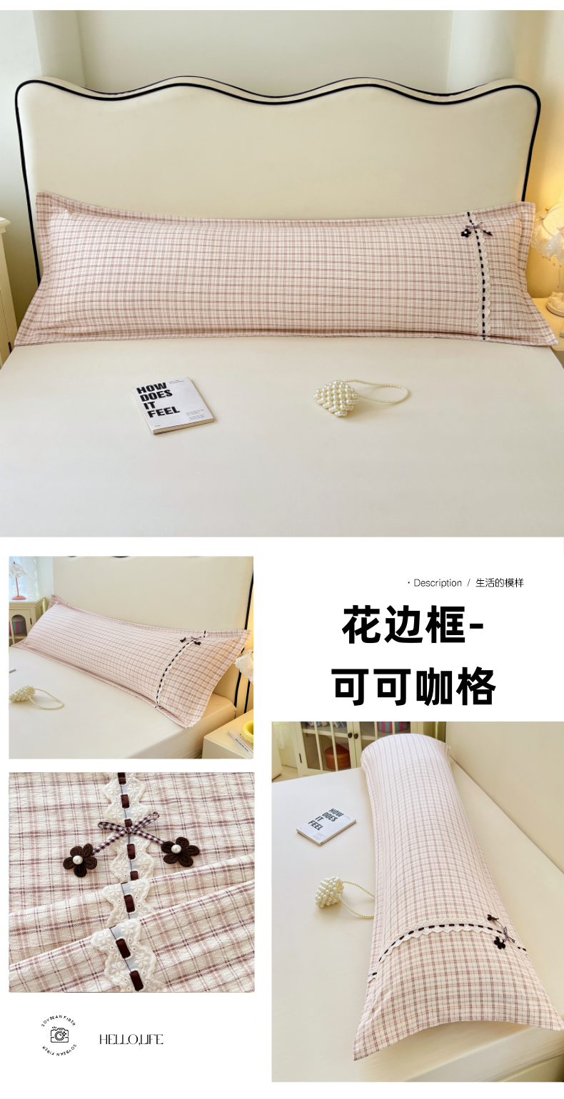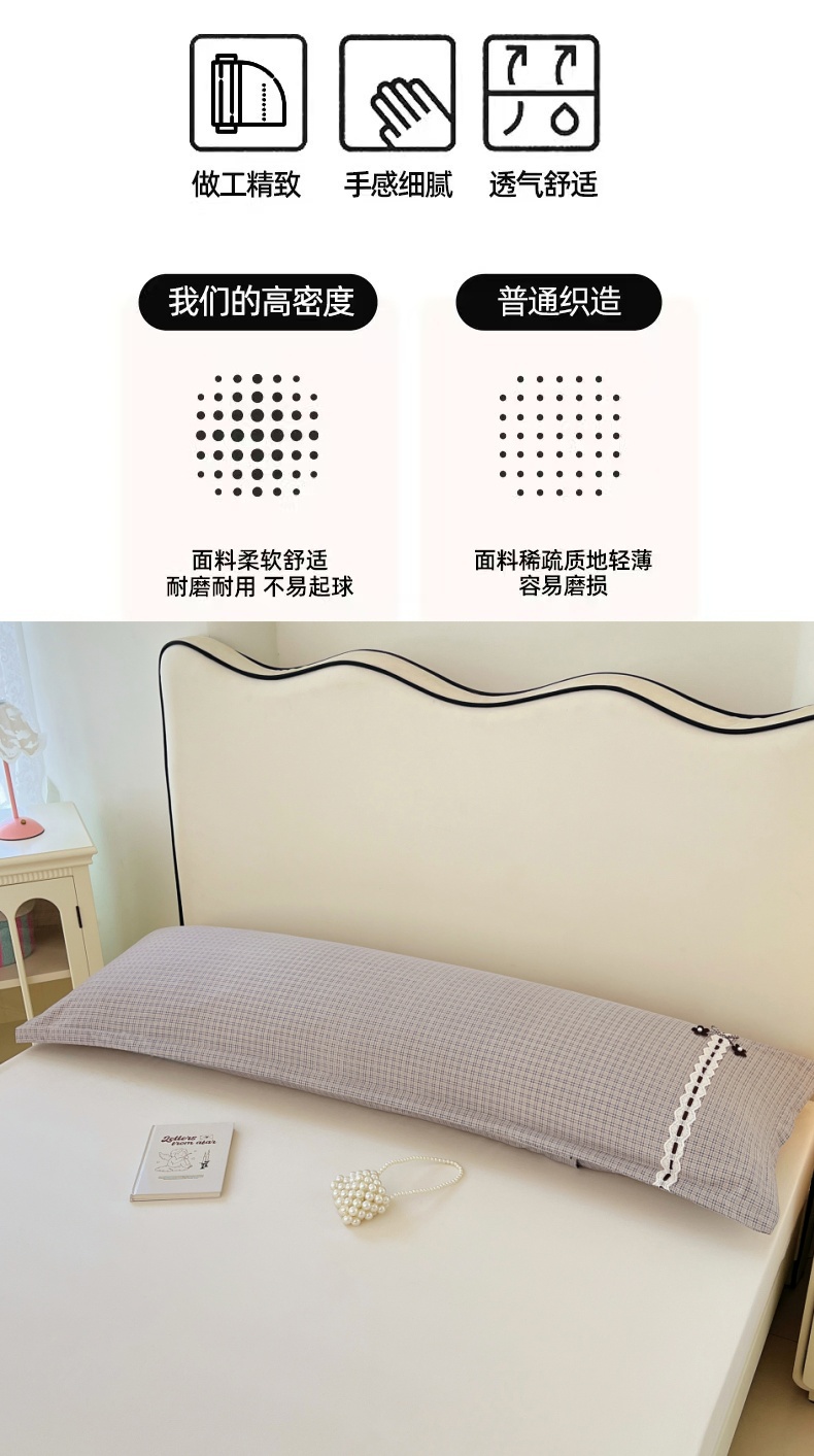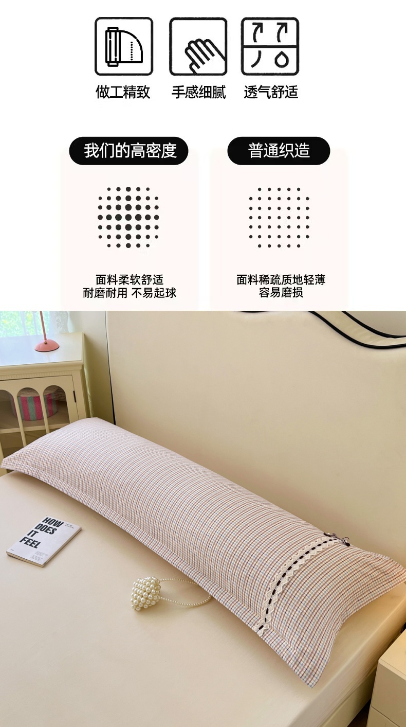 商品名称:(总)梦舒羽 2025新款双层纱蕾丝花边格子枕套宿舍双人情侣1.8m枕芯套1.5米内胆套