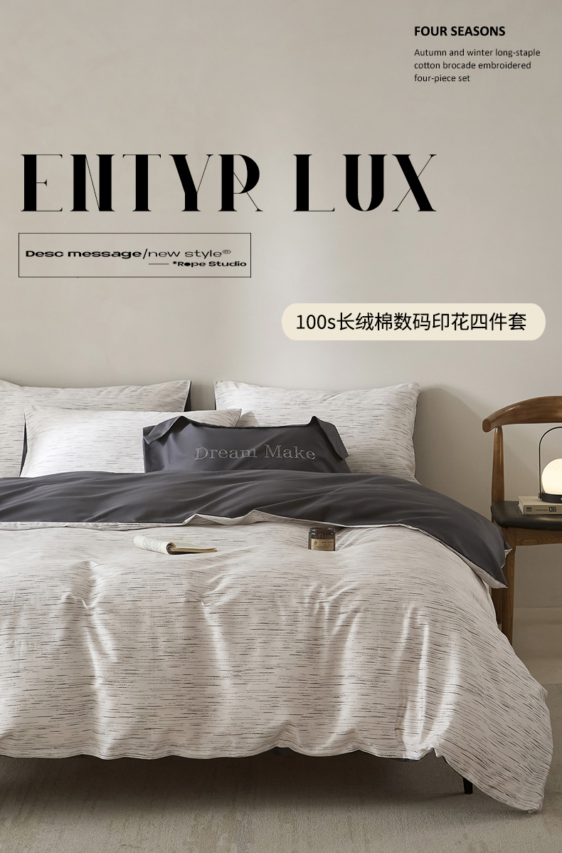 (总)ONE TWO ONE 121 【提供买家秀】【会员-20】【控价商品】【专版花型】2026新款100s长绒棉纯棉全棉床上用品数码印花四件套,罗曼格纹-灰,罗曼格纹-金