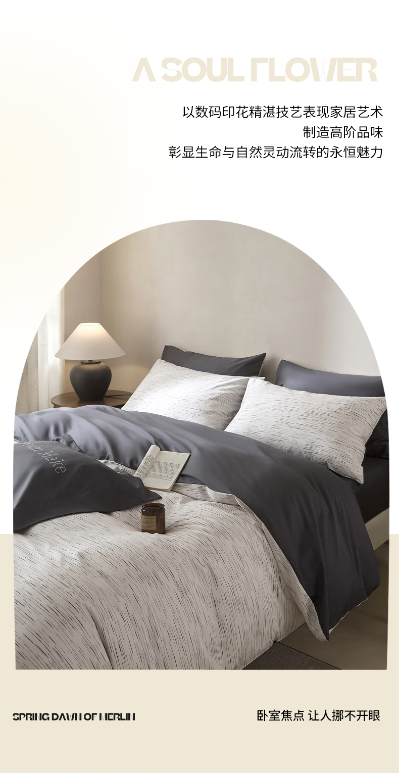 ONE TWO ONE 121 2025新款高端贡缎高支高密数码印花四件套-星河(平台控价券后不得低于318/338元) 星河-清茶灰