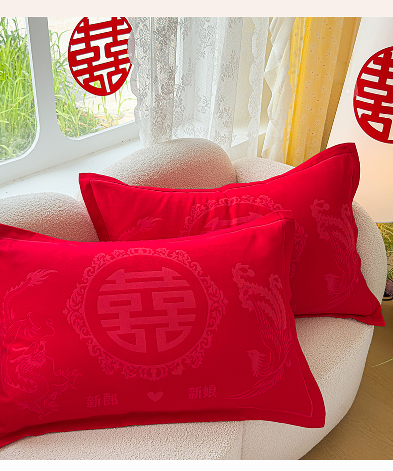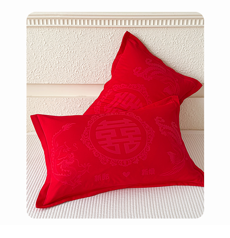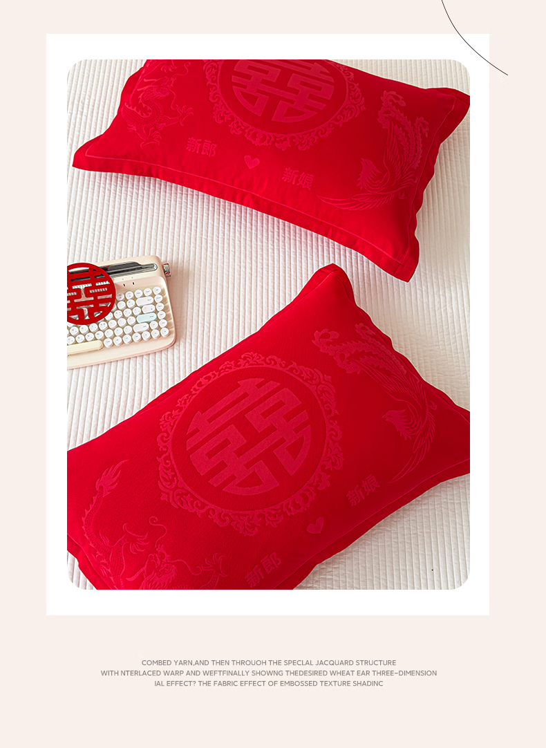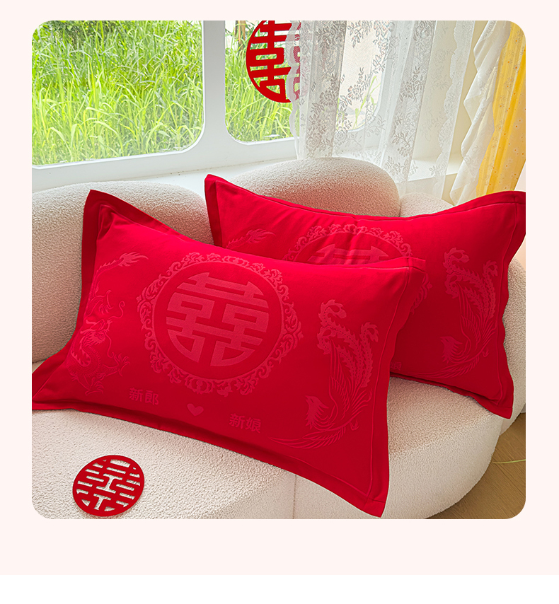 悦然毛巾被 2025新款婚庆大红三层全棉纱布枕套 良缘似锦