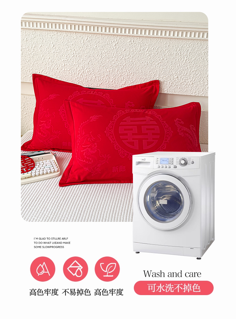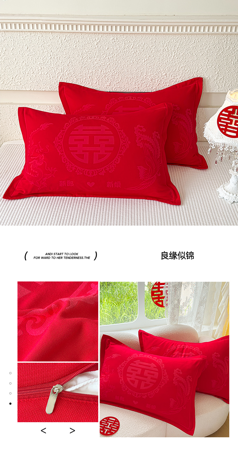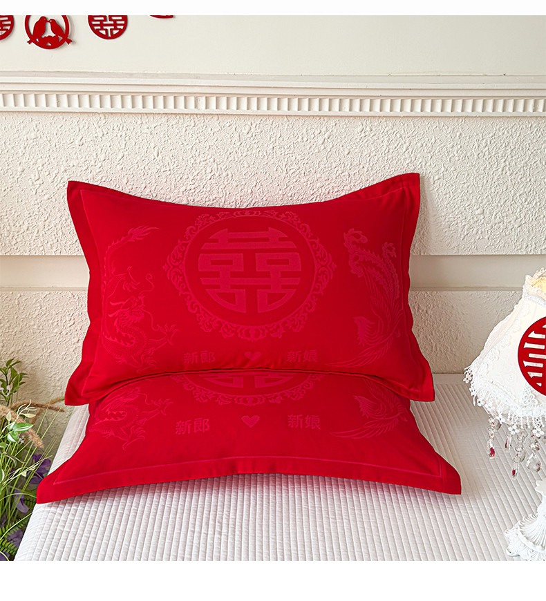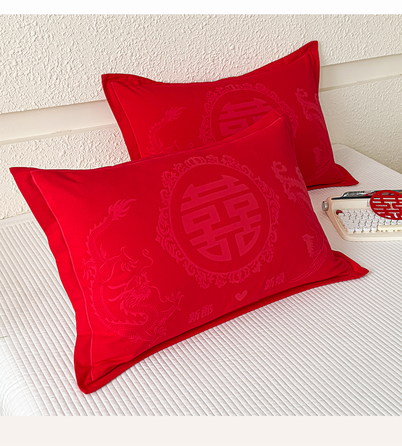 悦然毛巾被 2025新款婚庆大红三层全棉纱布枕套 良缘似锦