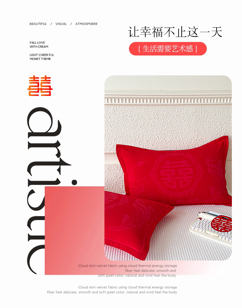 商品名称:悦然毛巾被 2025新款婚庆大红三层全棉纱布枕套 良缘似锦