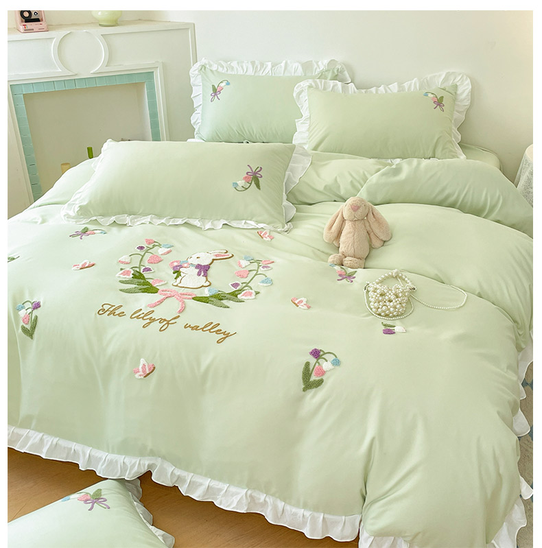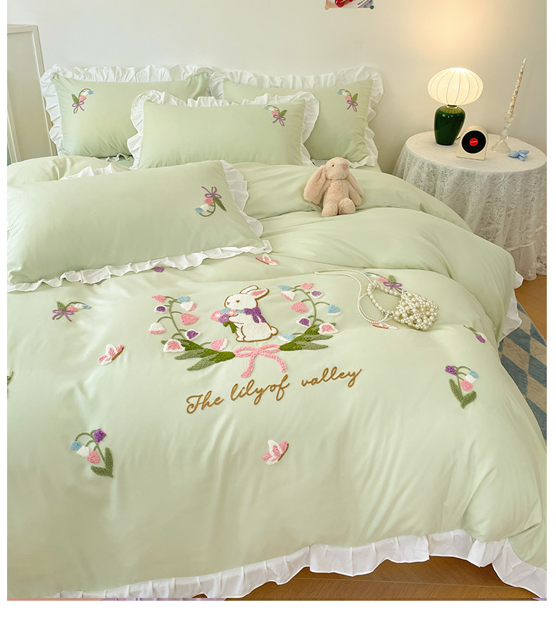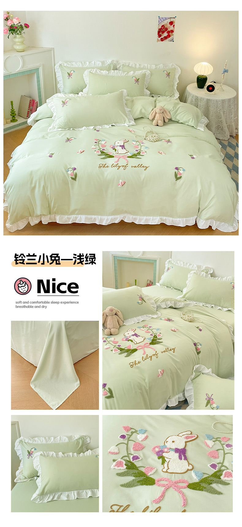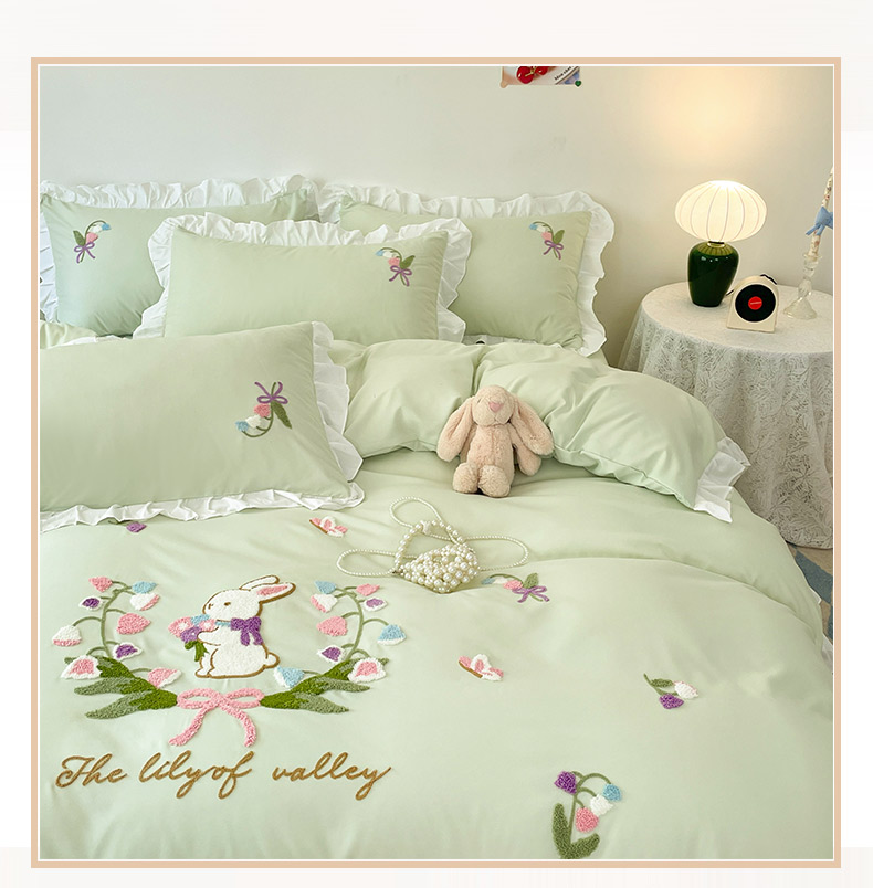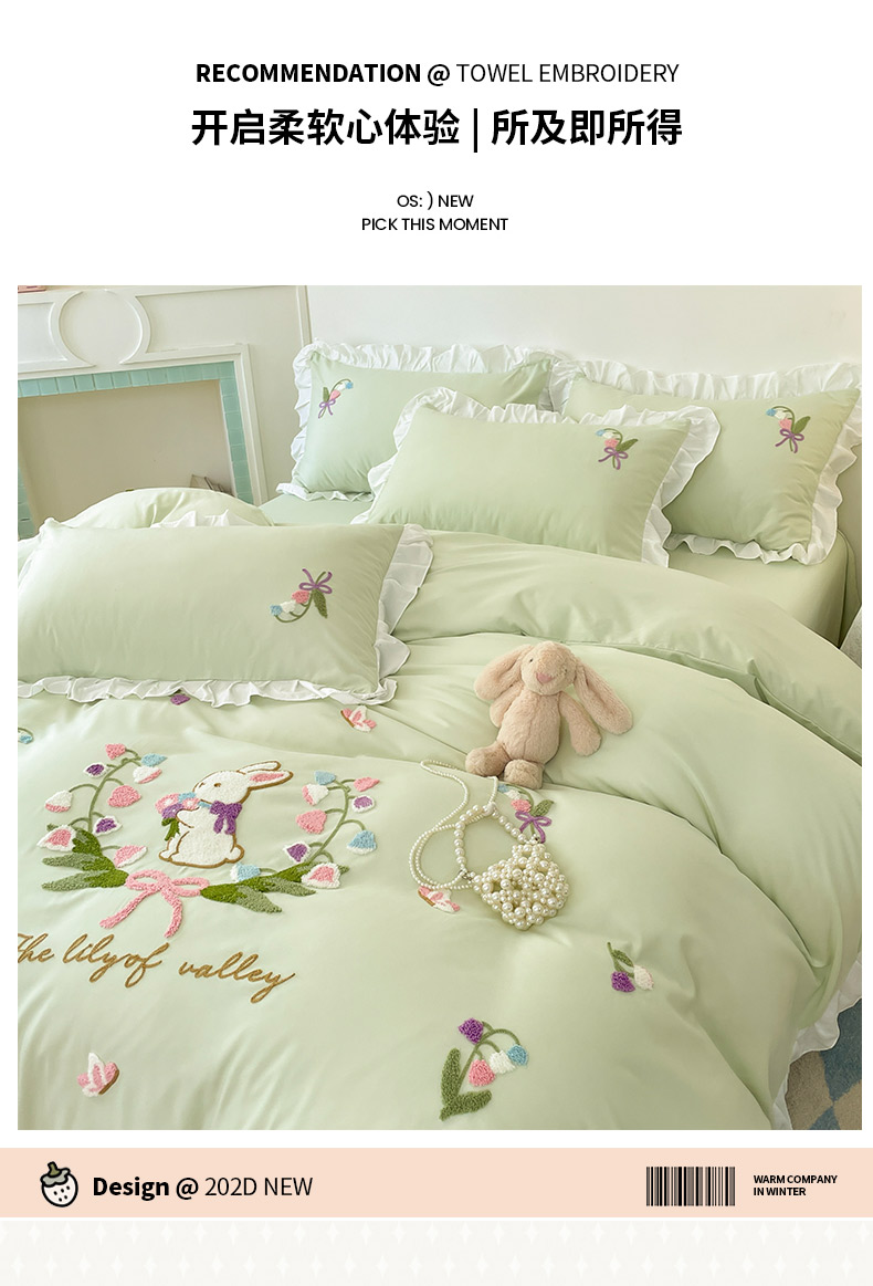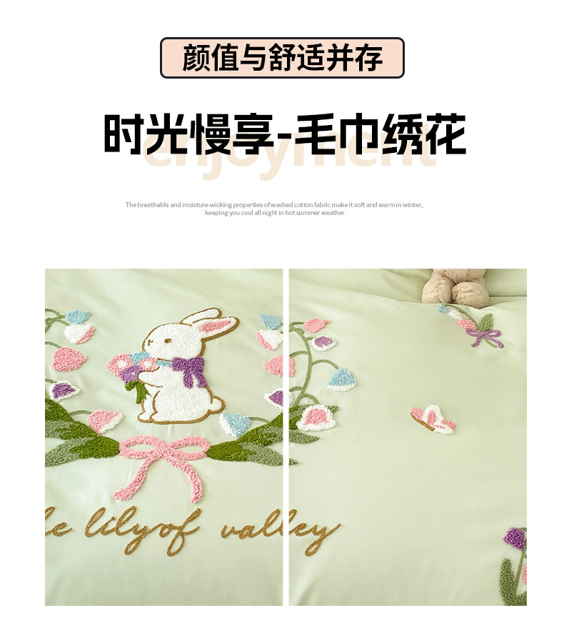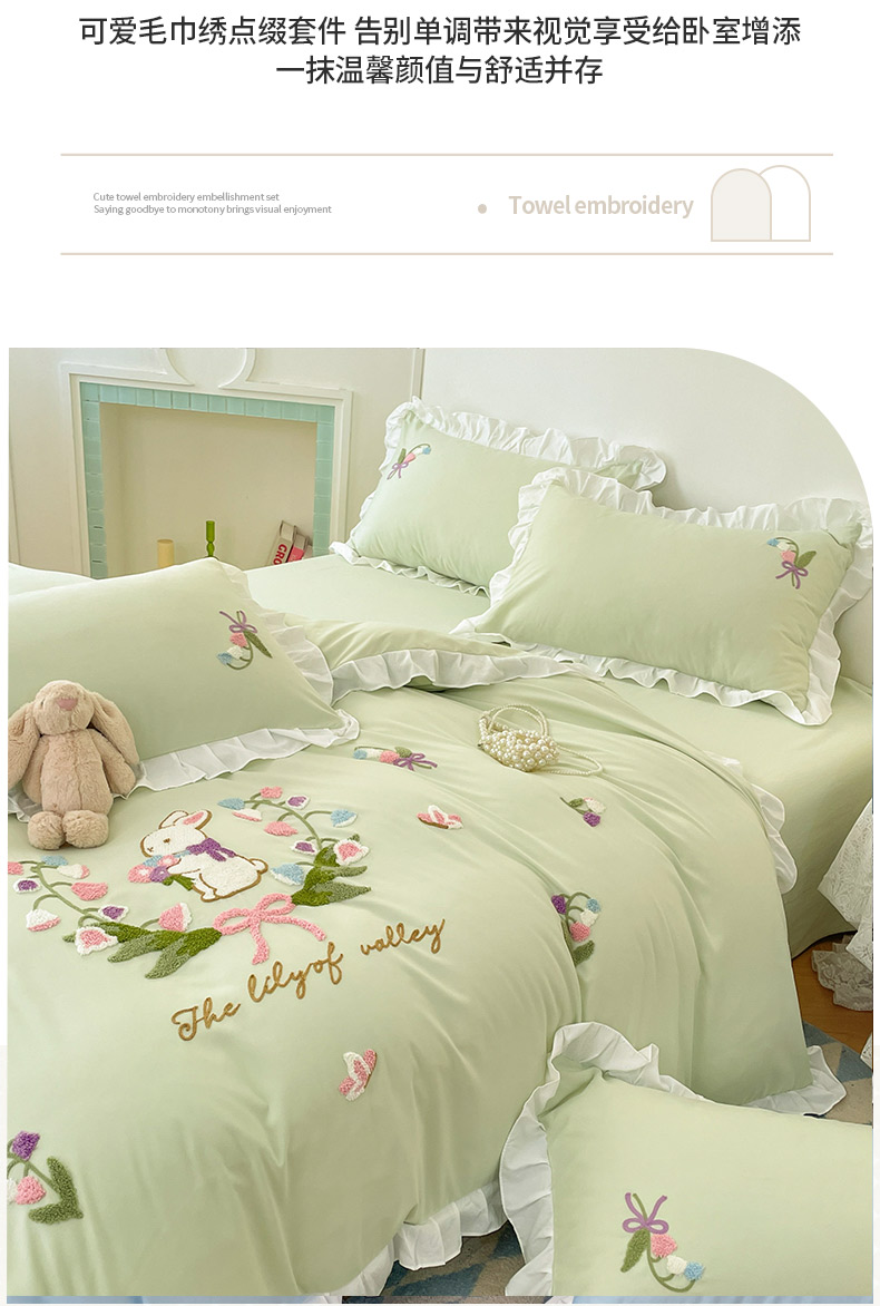 当前位置: 91家纺网 > 商品网购 > 床品套件 > 四件套 > 水洗棉四件套 > 易禾家纺 2025新款韩版小清新毛巾绣水洗棉四件套学生宿舍三件套铃兰小兔系列(专板花型) 铃兰小兔-浅绿