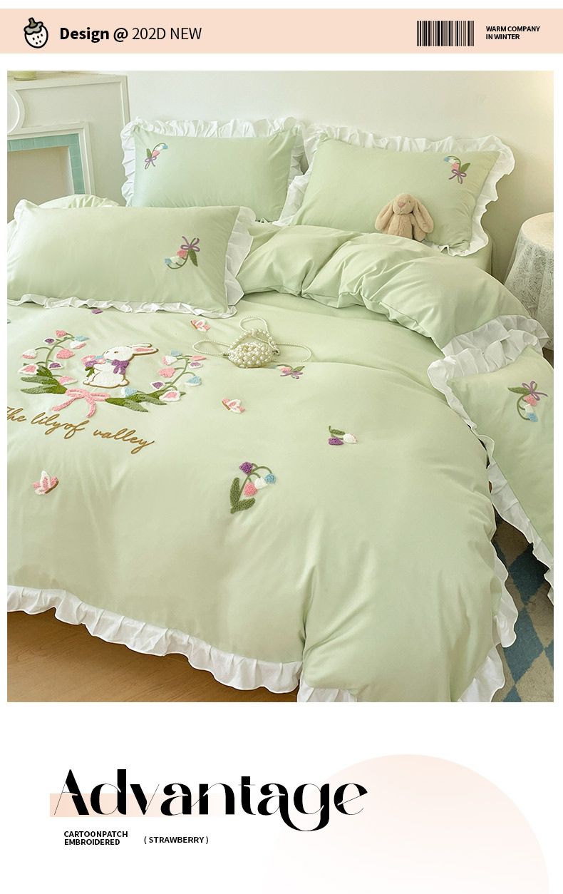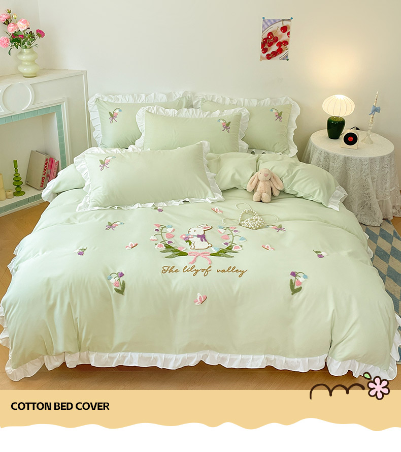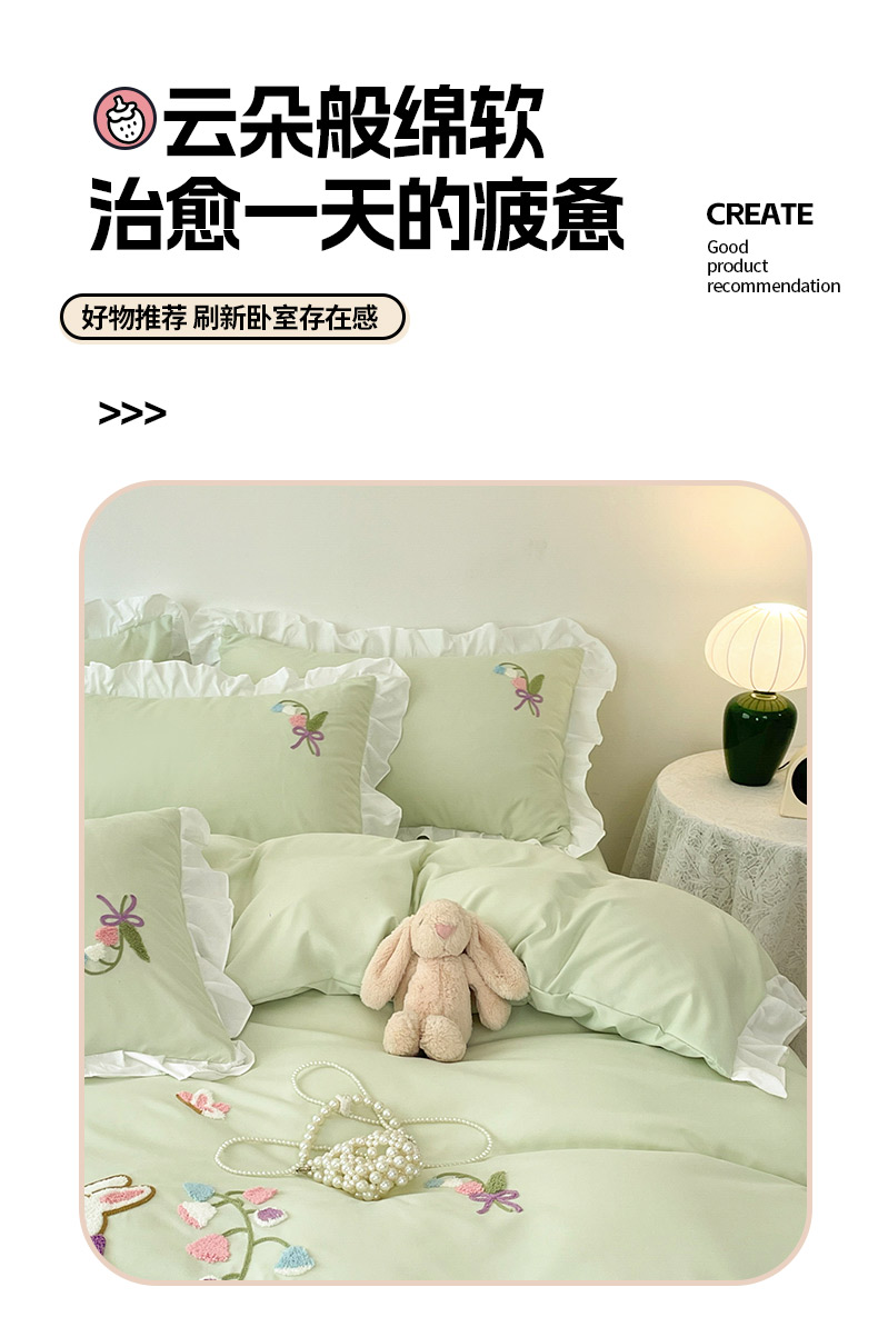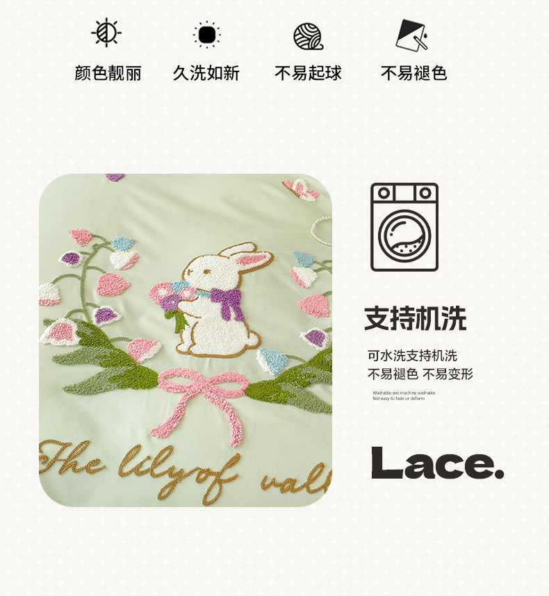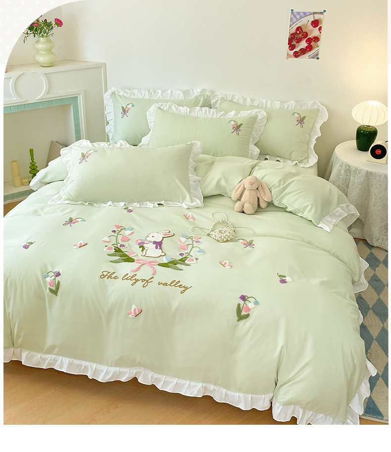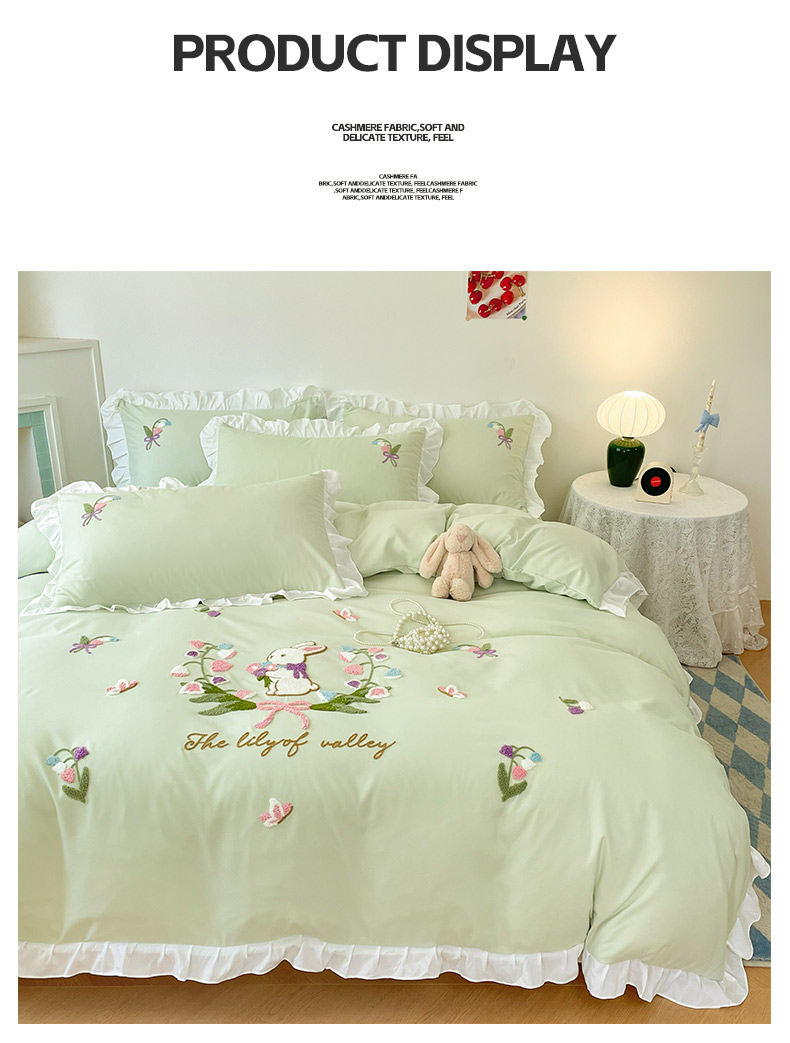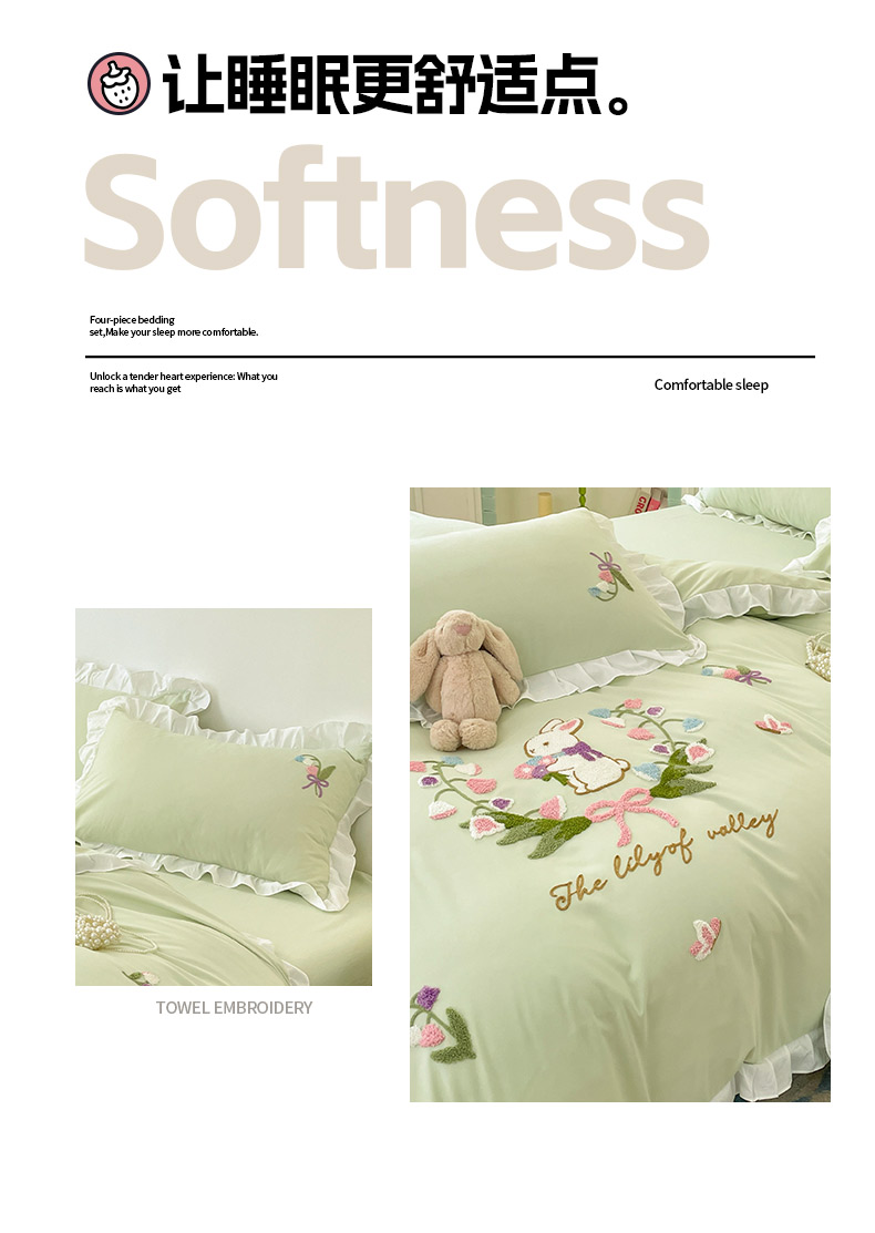 当前位置: 91家纺网 > 商品网购 > 床品套件 > 四件套 > 水洗棉四件套 > 易禾家纺 2025新款韩版小清新毛巾绣水洗棉四件套学生宿舍三件套铃兰小兔系列(专板花型) 铃兰小兔-浅绿