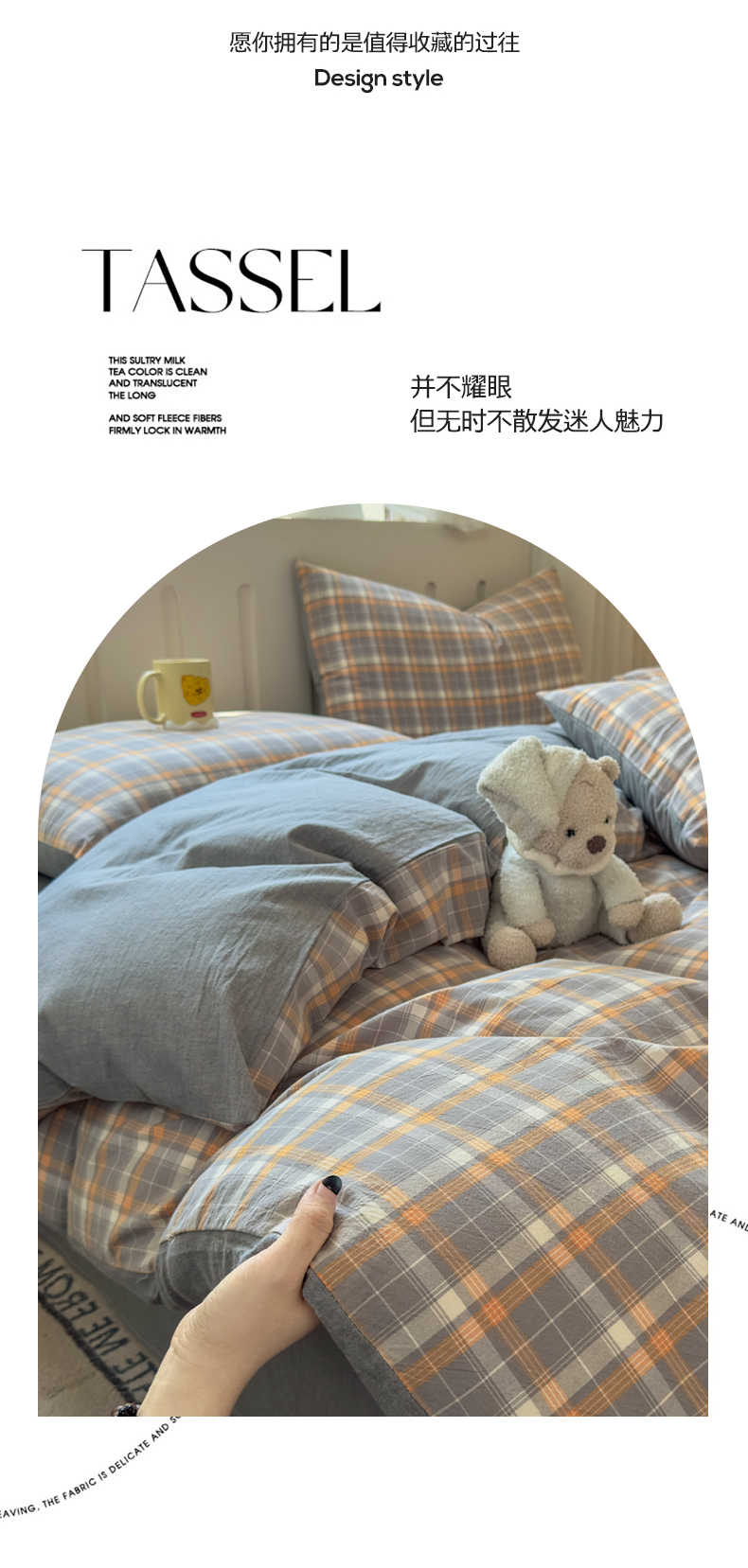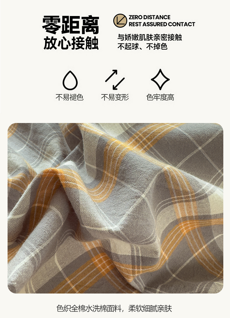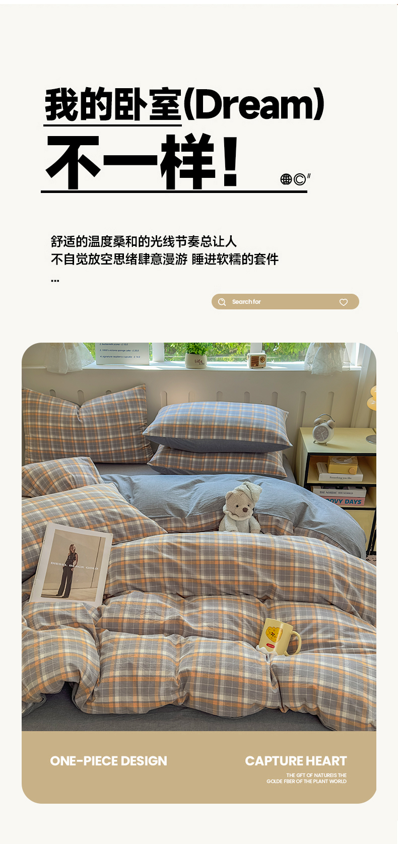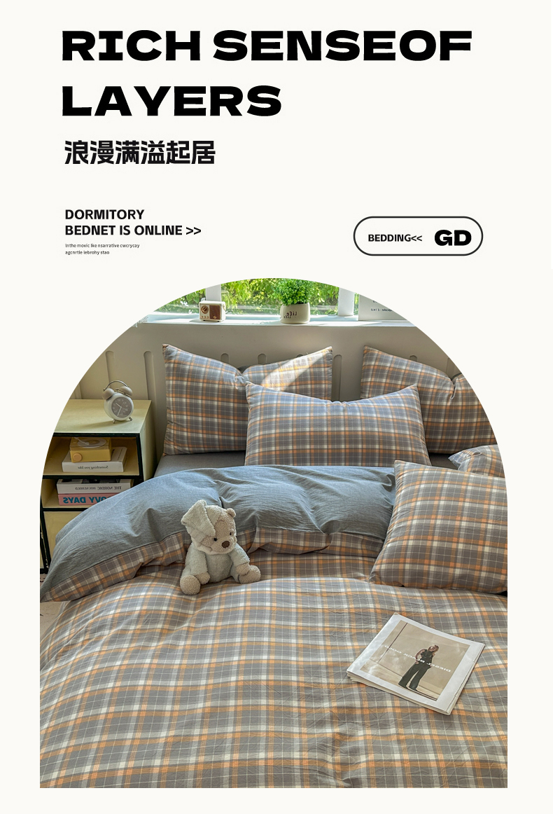 当前位置: 91家纺网 > 商品网购 > 床品套件 > 四件套 > 水洗棉四件套 > 晚依家纺 2025新款A类全棉色织水洗棉四件套纯棉格子纯色被套学生宿舍三件套定制定做 映像格-橙灰