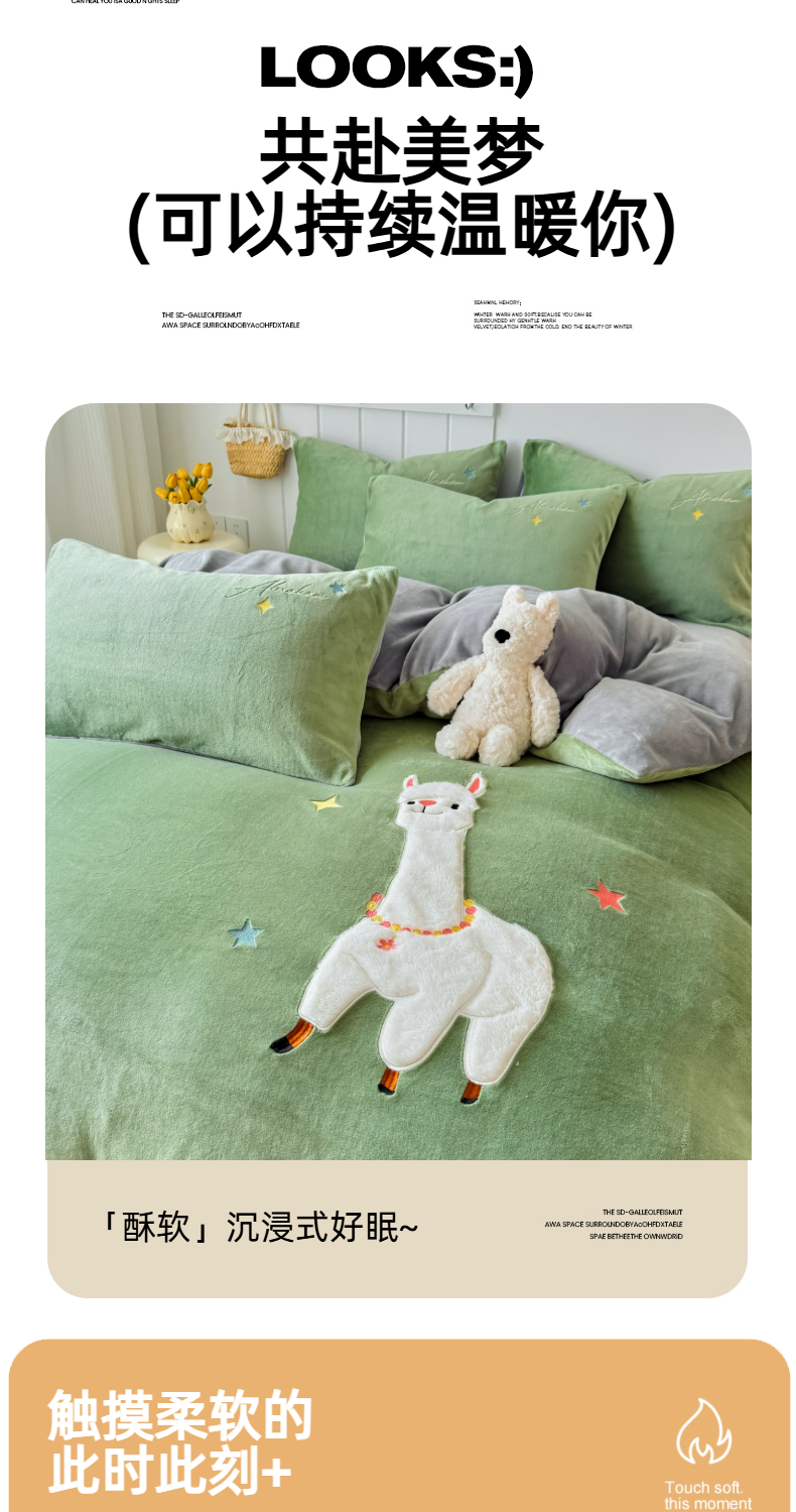 (总)莱凯家纺 2025新款贴布绣牛奶绒四件套,开心狗(白+橘),开心狗(卡其+绿),猫咪乐园(粉),猫咪乐园(灰),晚安羊驼(橘+卡其),晚安羊驼(绿+灰)