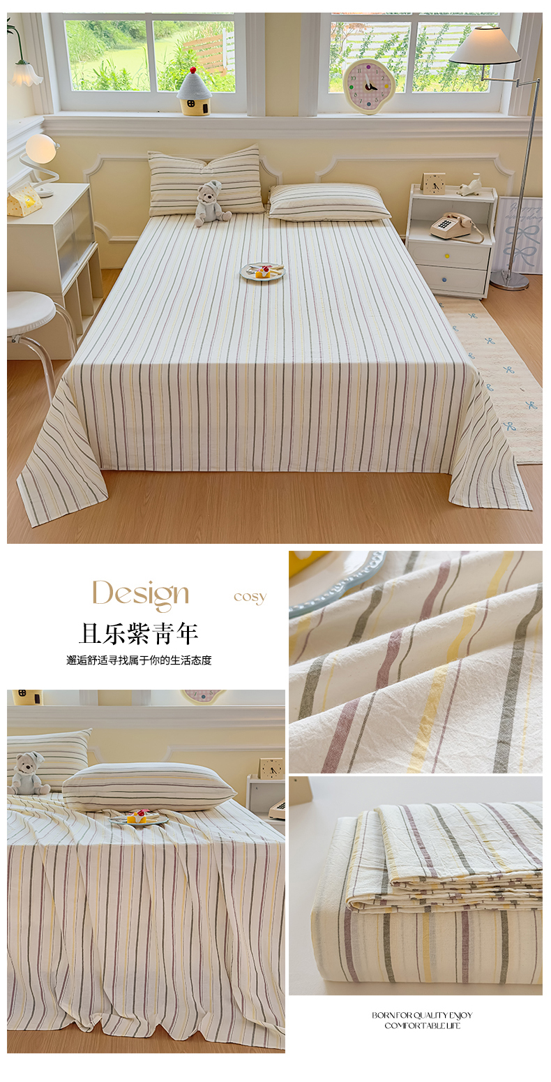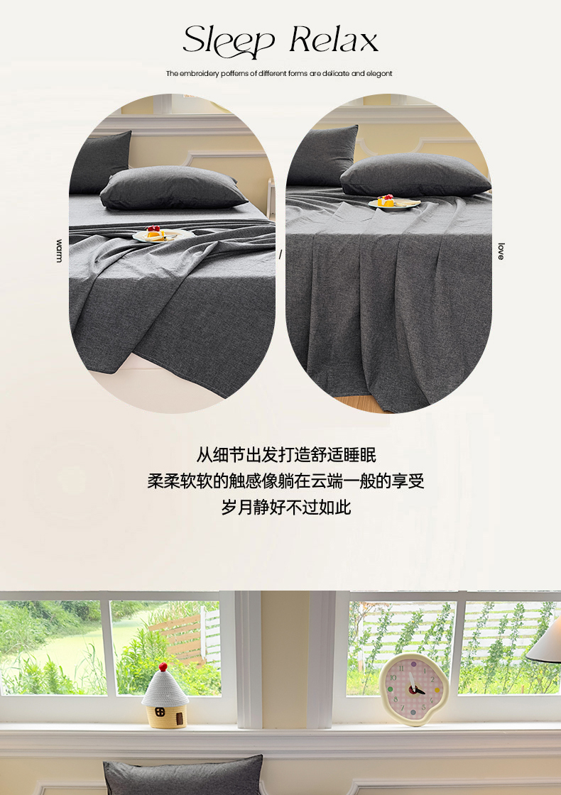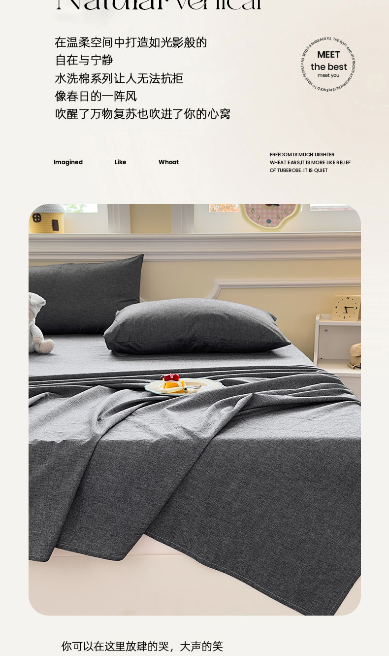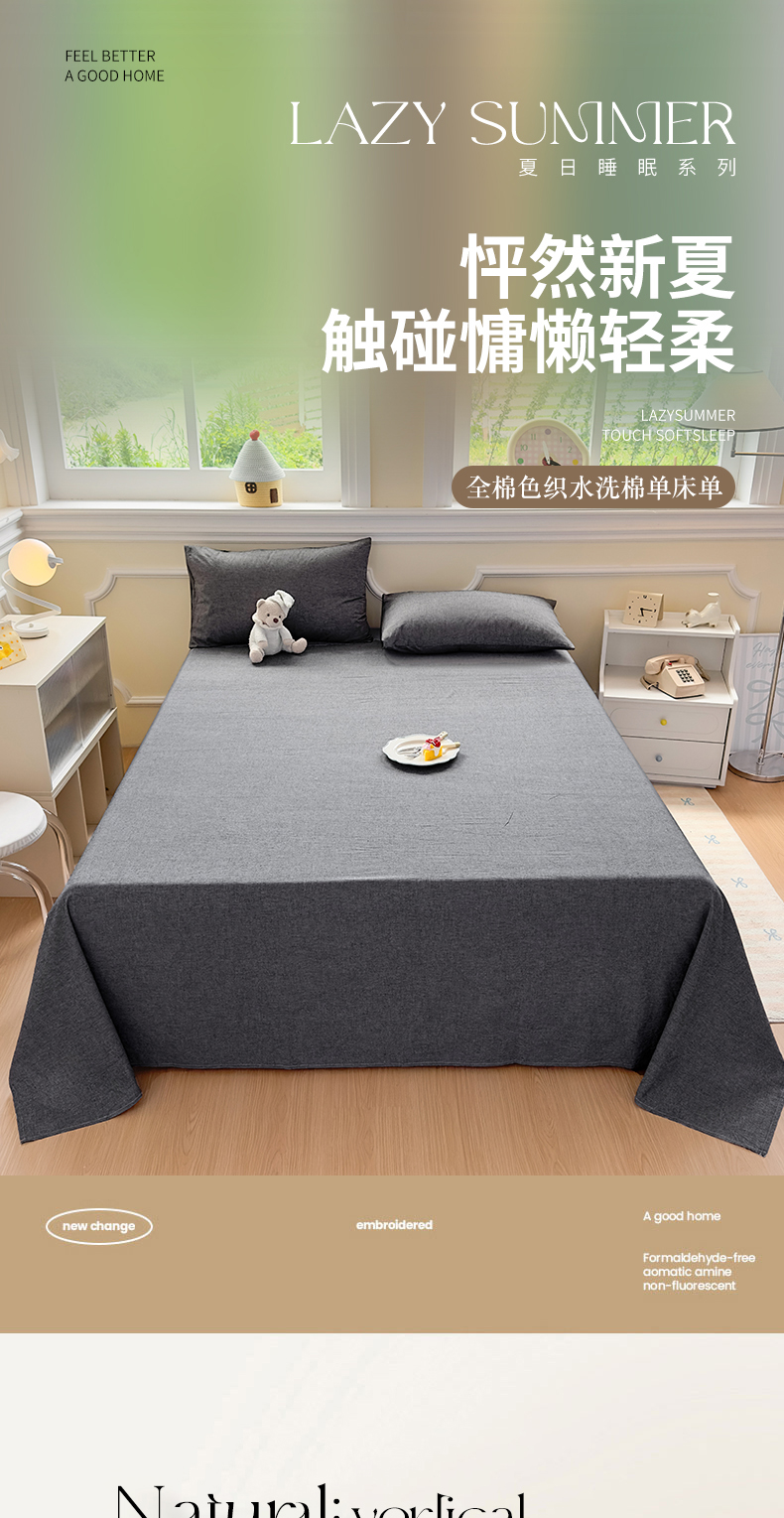 商品名称:菡宝 2025新款全棉纯棉色织水洗棉单床单 黑色青年