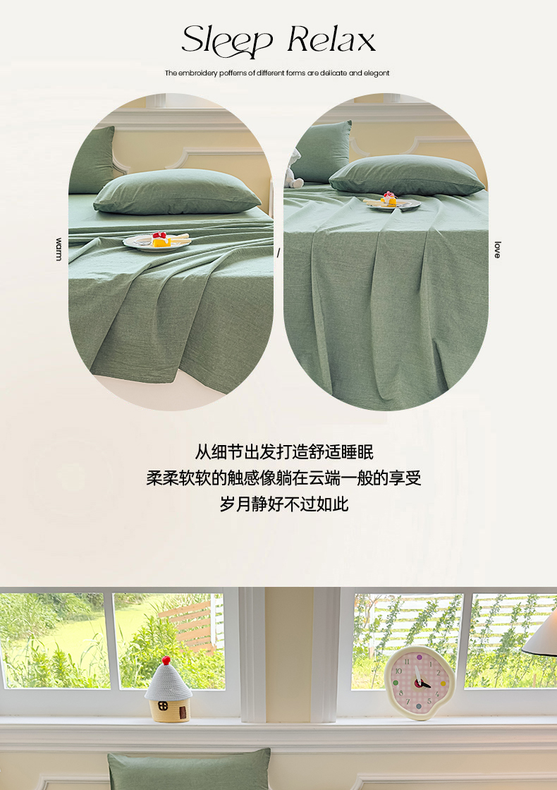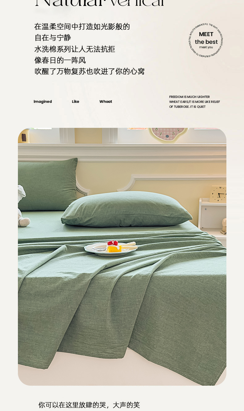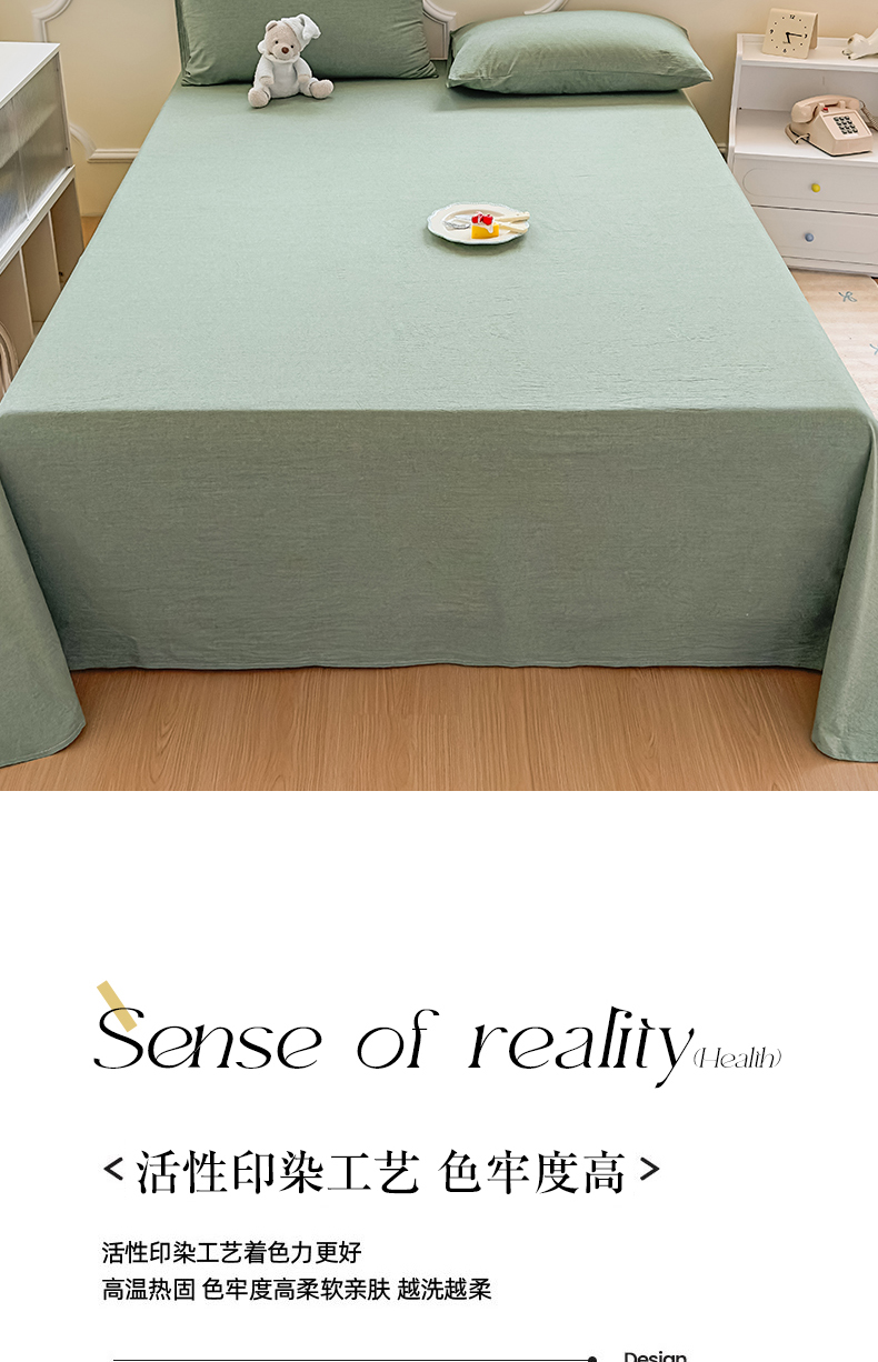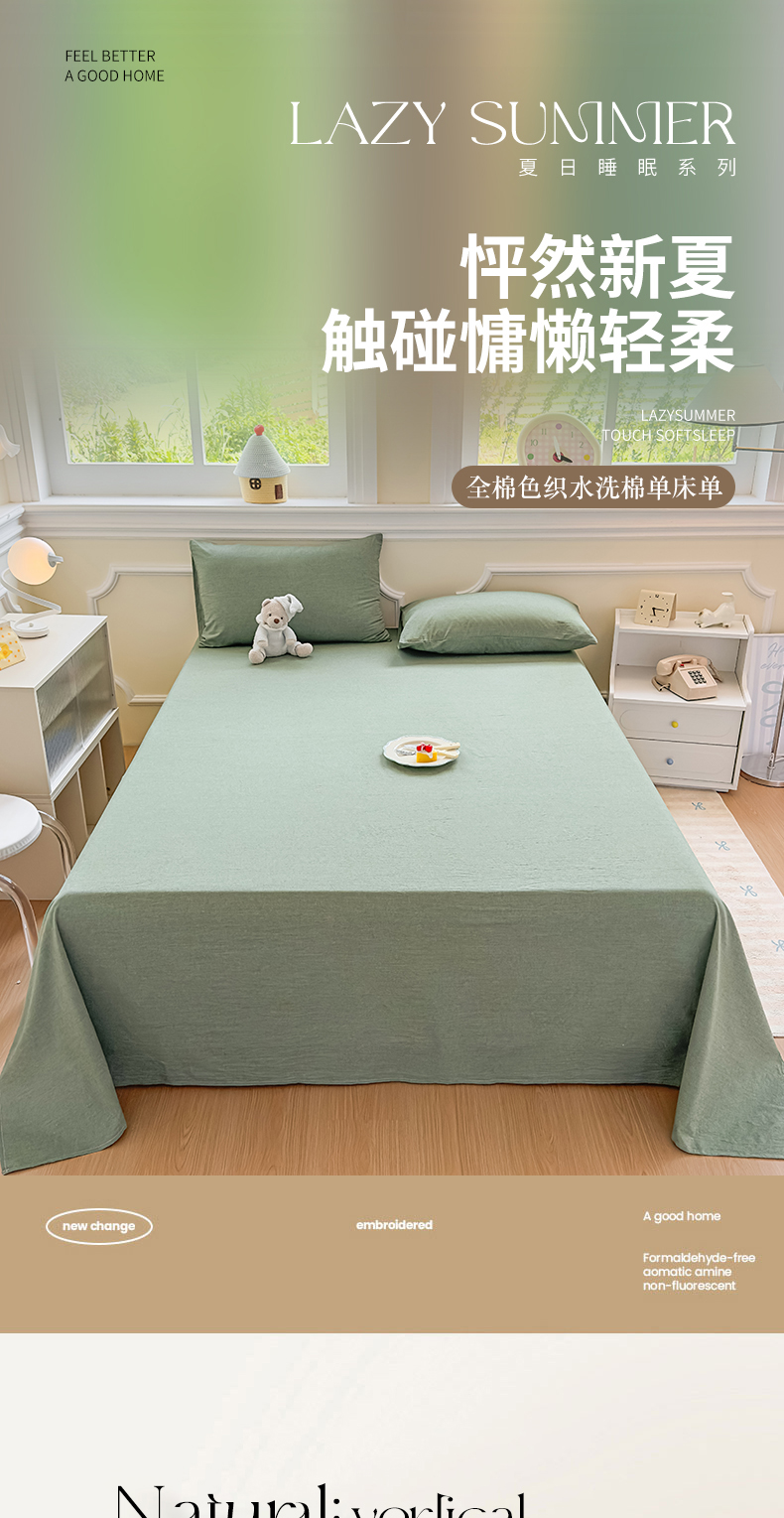 商品名称:菡宝 2025新款全棉纯棉色织水洗棉单床单 绿色青年
