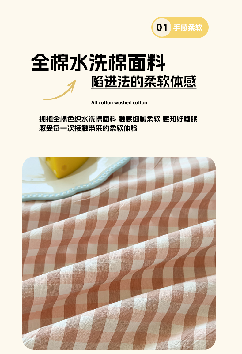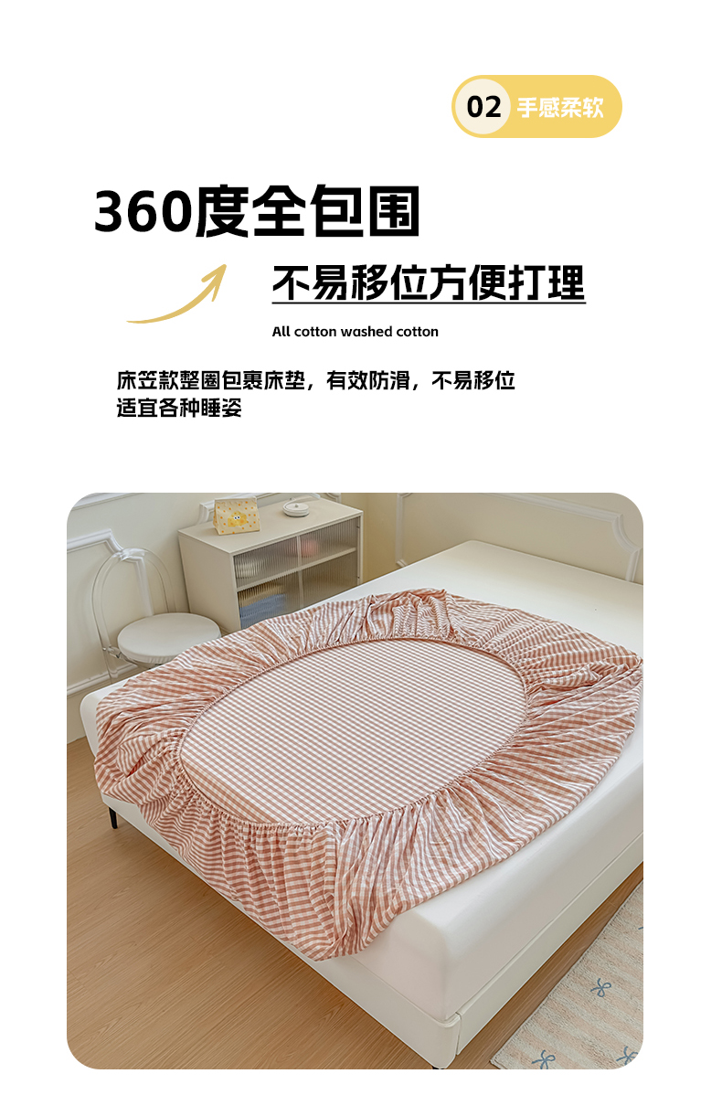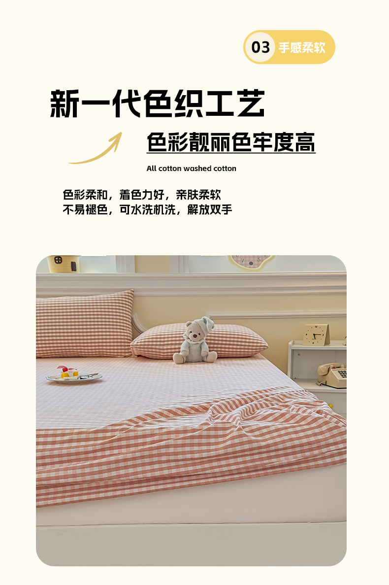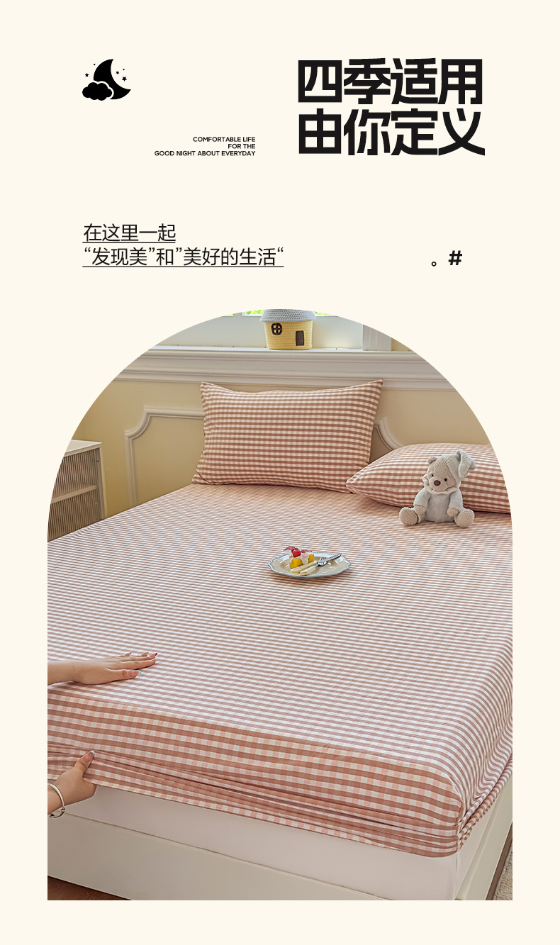 • 91家纺网 家纺一手货源 找家纺 菡宝 2025新款全棉纯棉色织水洗棉单单床笠 粉小格