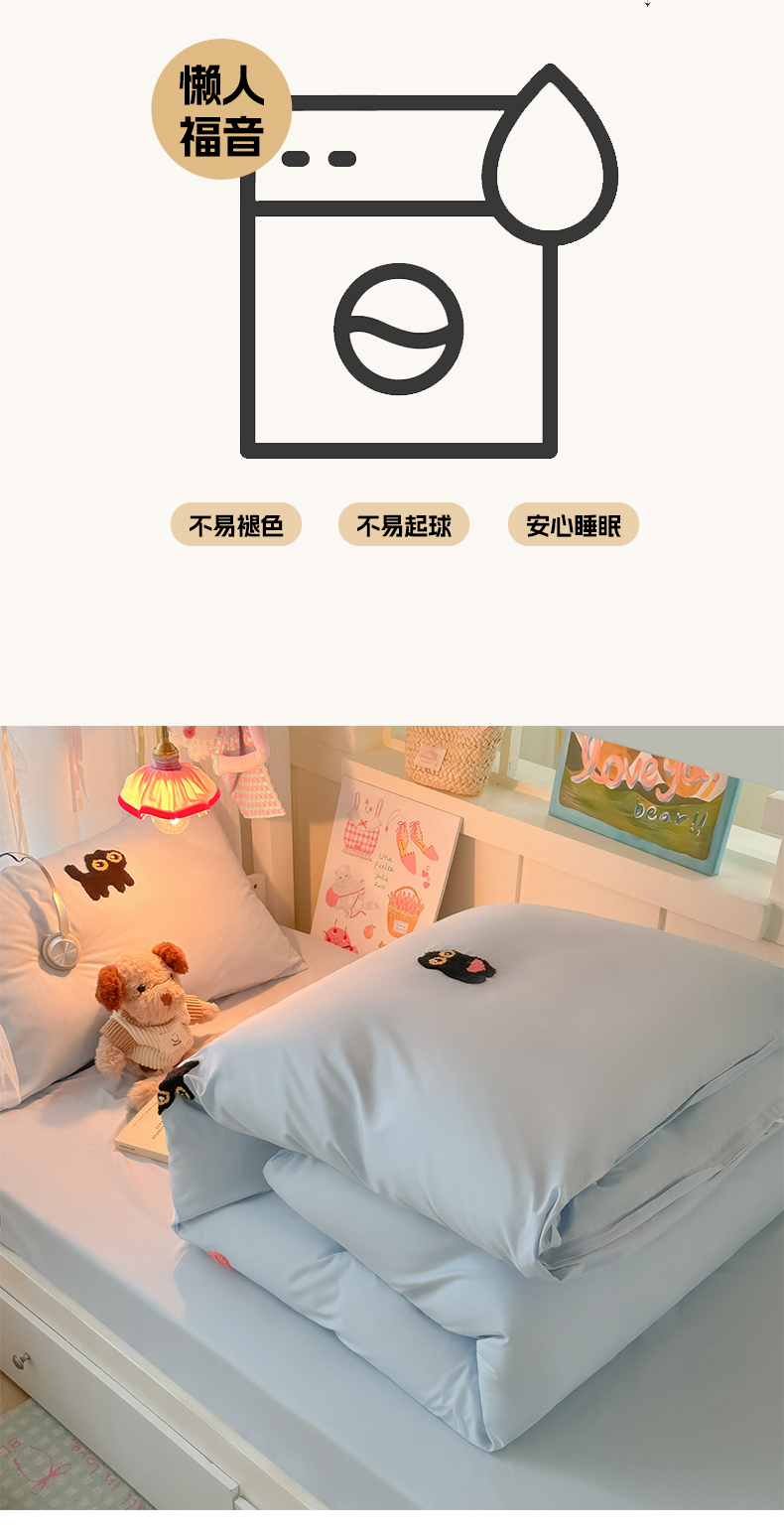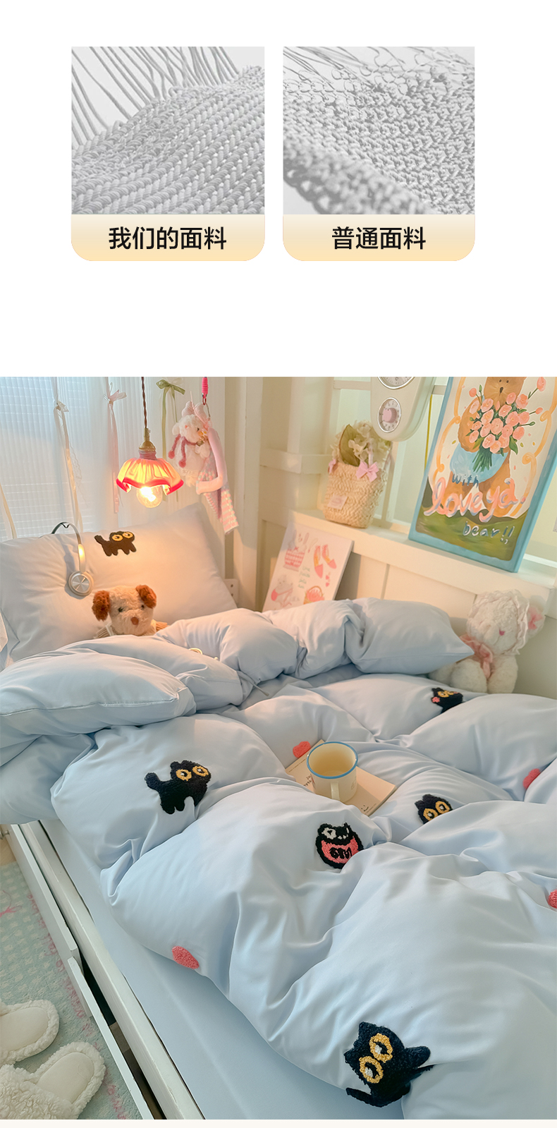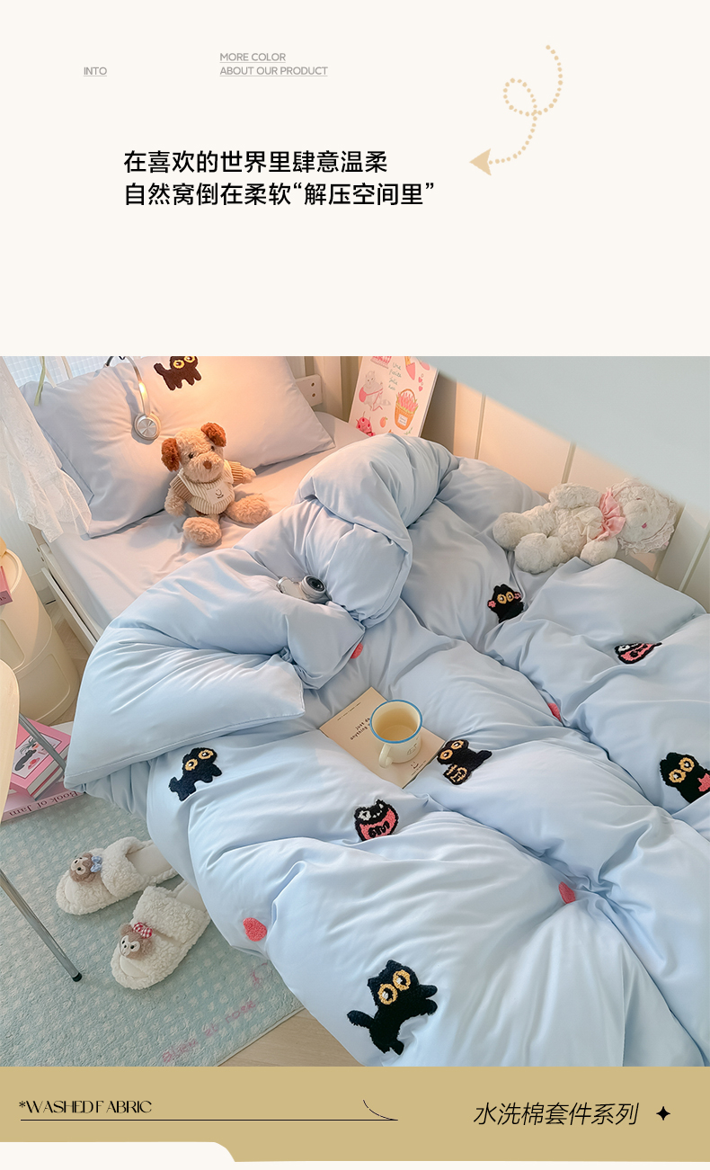 当前位置: 91家纺网 > 商品网购 > 床品套件 > 四件套 > 水洗棉四件套 > 韩巢家纺 2025新款学生宿舍寝室上下铺水洗棉毛巾绣被套床单三四件套-幸运猫 幸运猫浅蓝