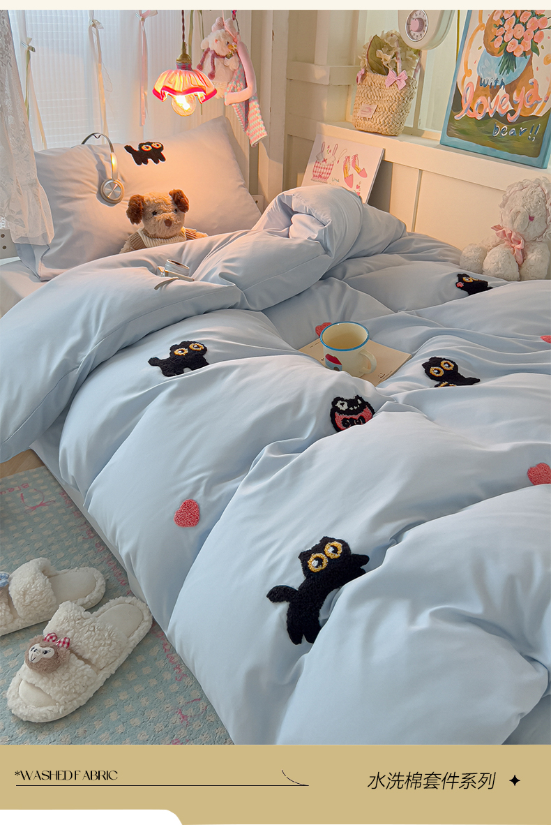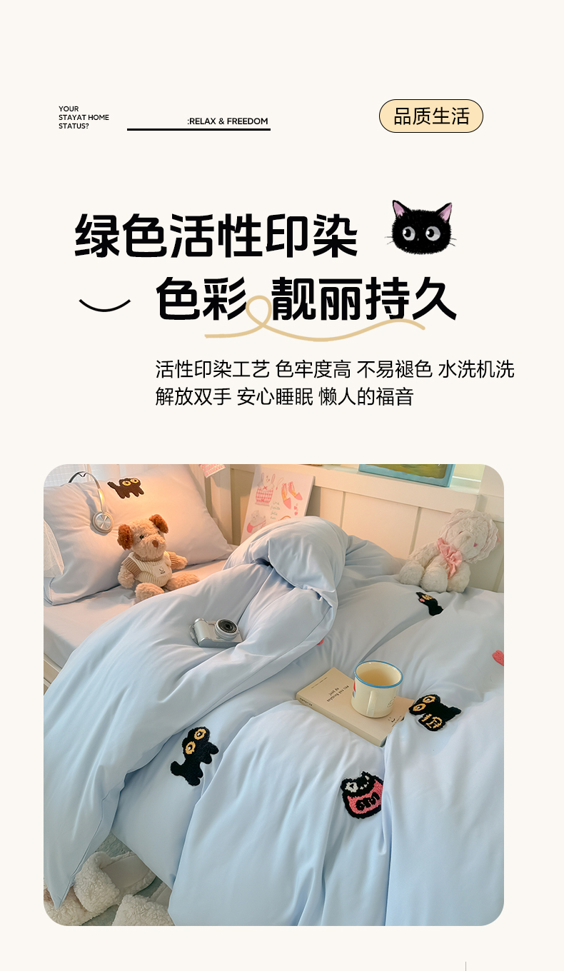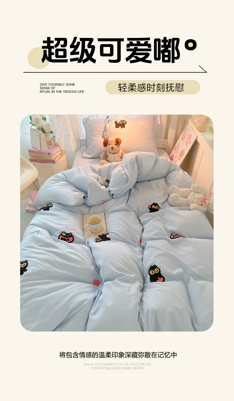 当前位置: 91家纺网 > 商品网购 > 床品套件 > 四件套 > 水洗棉四件套 > 韩巢家纺 2025新款学生宿舍寝室上下铺水洗棉毛巾绣被套床单三四件套-幸运猫 幸运猫浅蓝