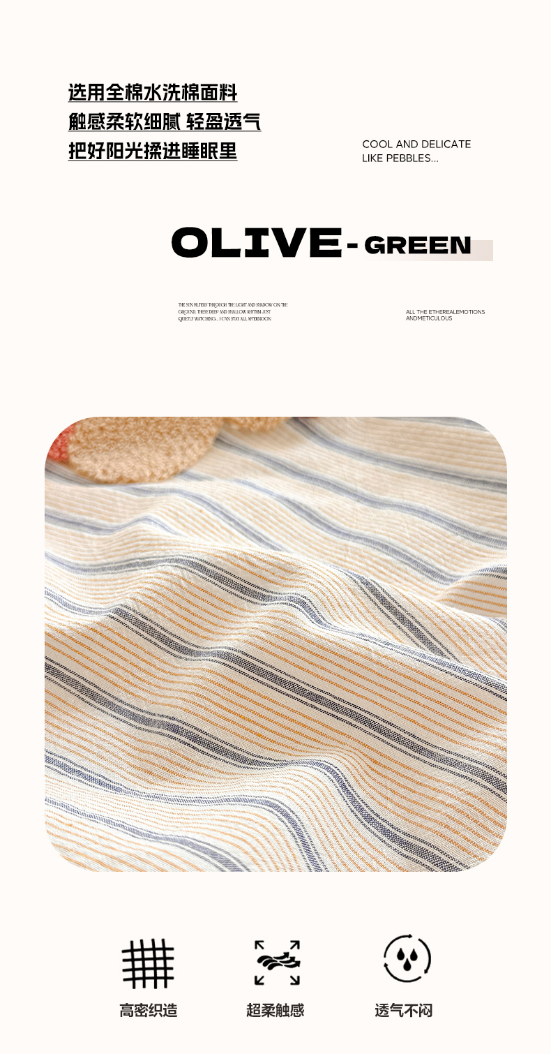 (总)佳汐蓝家纺 2026春夏新款棉麻皱皱双层纱四件套-栀子茉莉 控价:卷后不低于398,栀子茉莉-绿色床单,栀子茉莉-麻色床单