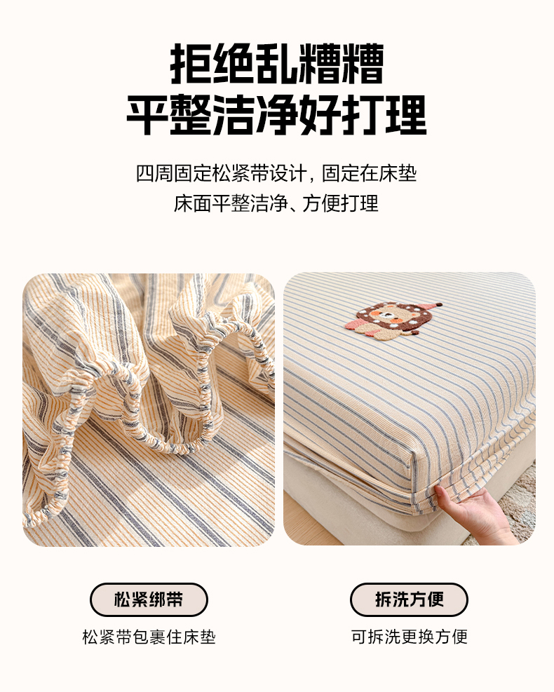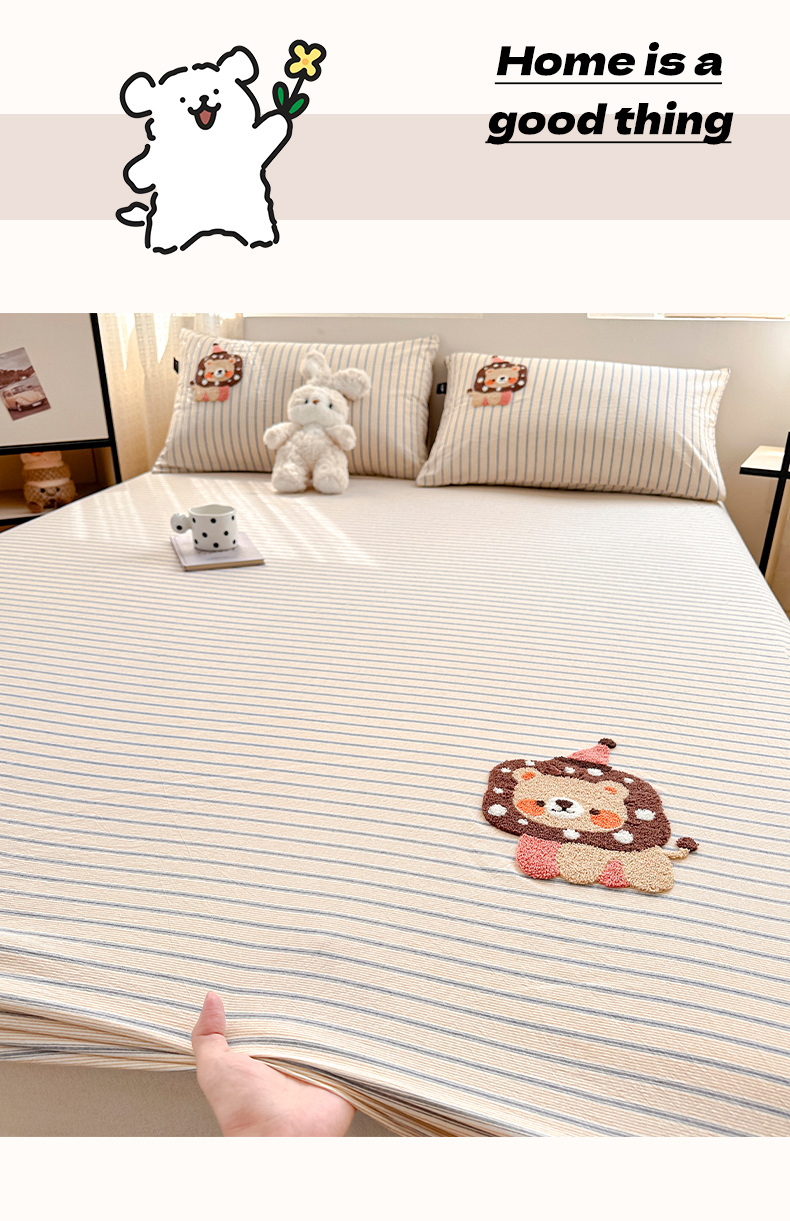 佳汐蓝家纺 2025新款秋冬水洗棉单床笠单品床笠单件床笠 奶萌狮