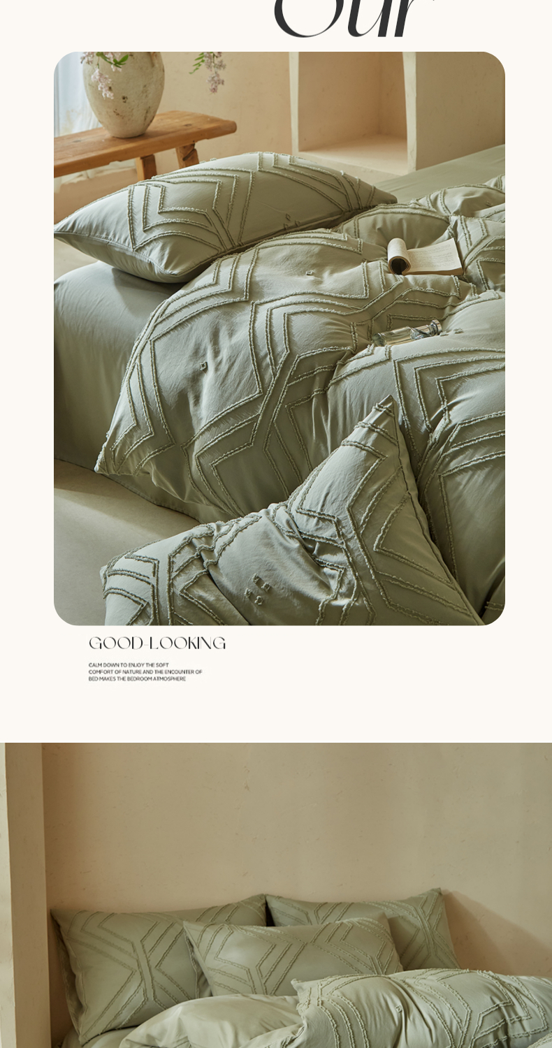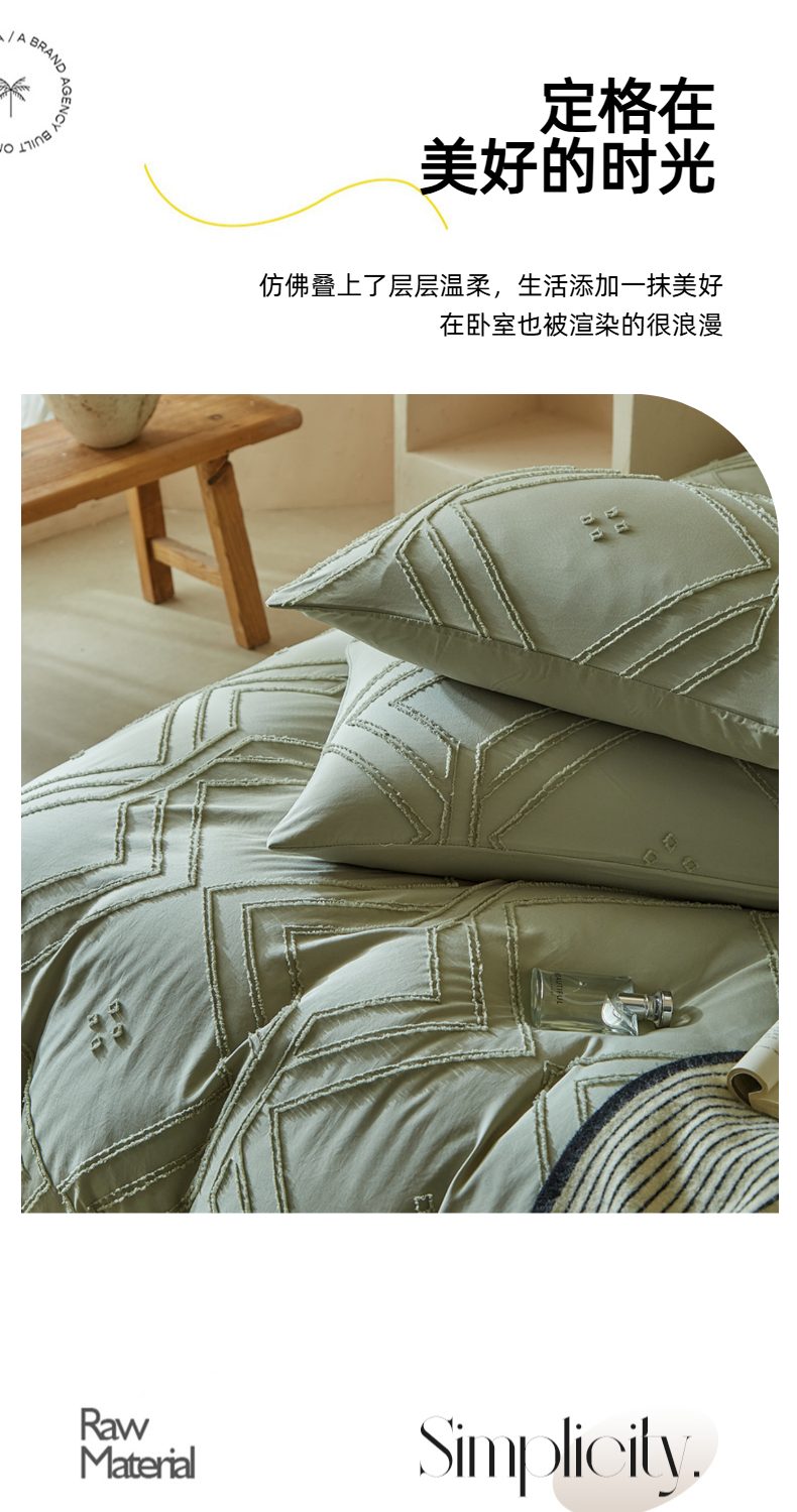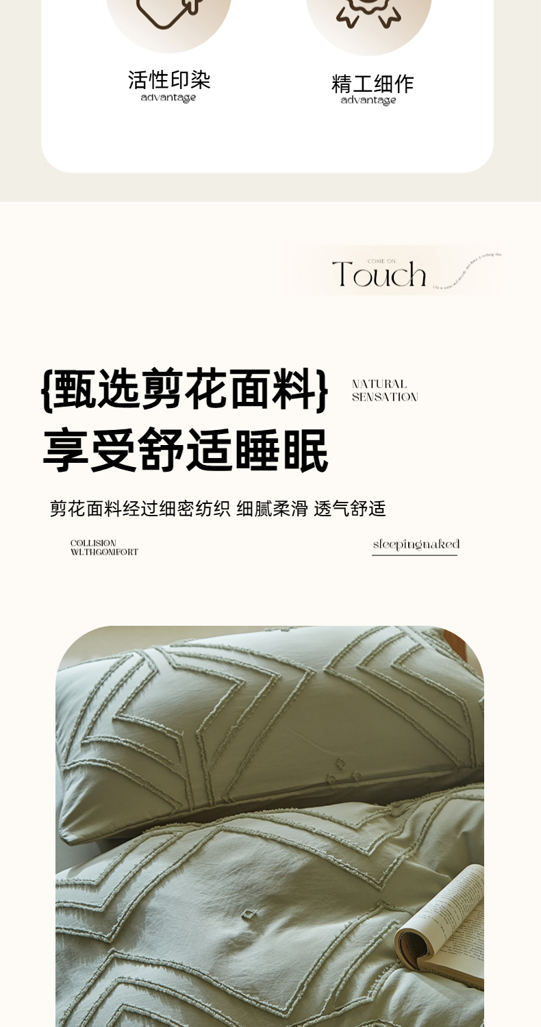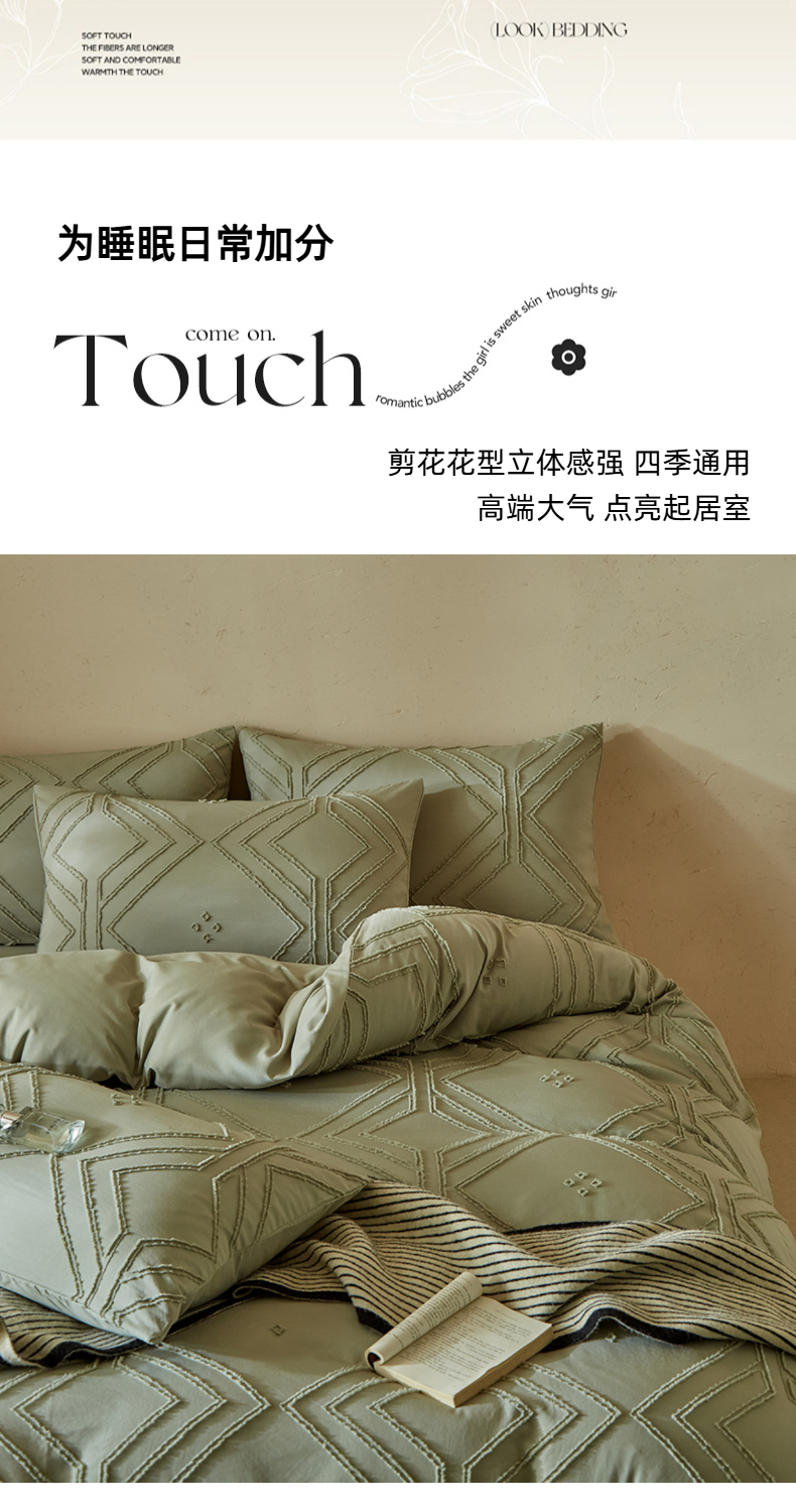 当前位置: 91家纺网 > 商品网购 > 床品套件 > 四件套 > 其它四件套 > 缘生活 2025新款立体剪花A面剪花面料B面加厚磨毛布料四件套 剪花方格-旧绿