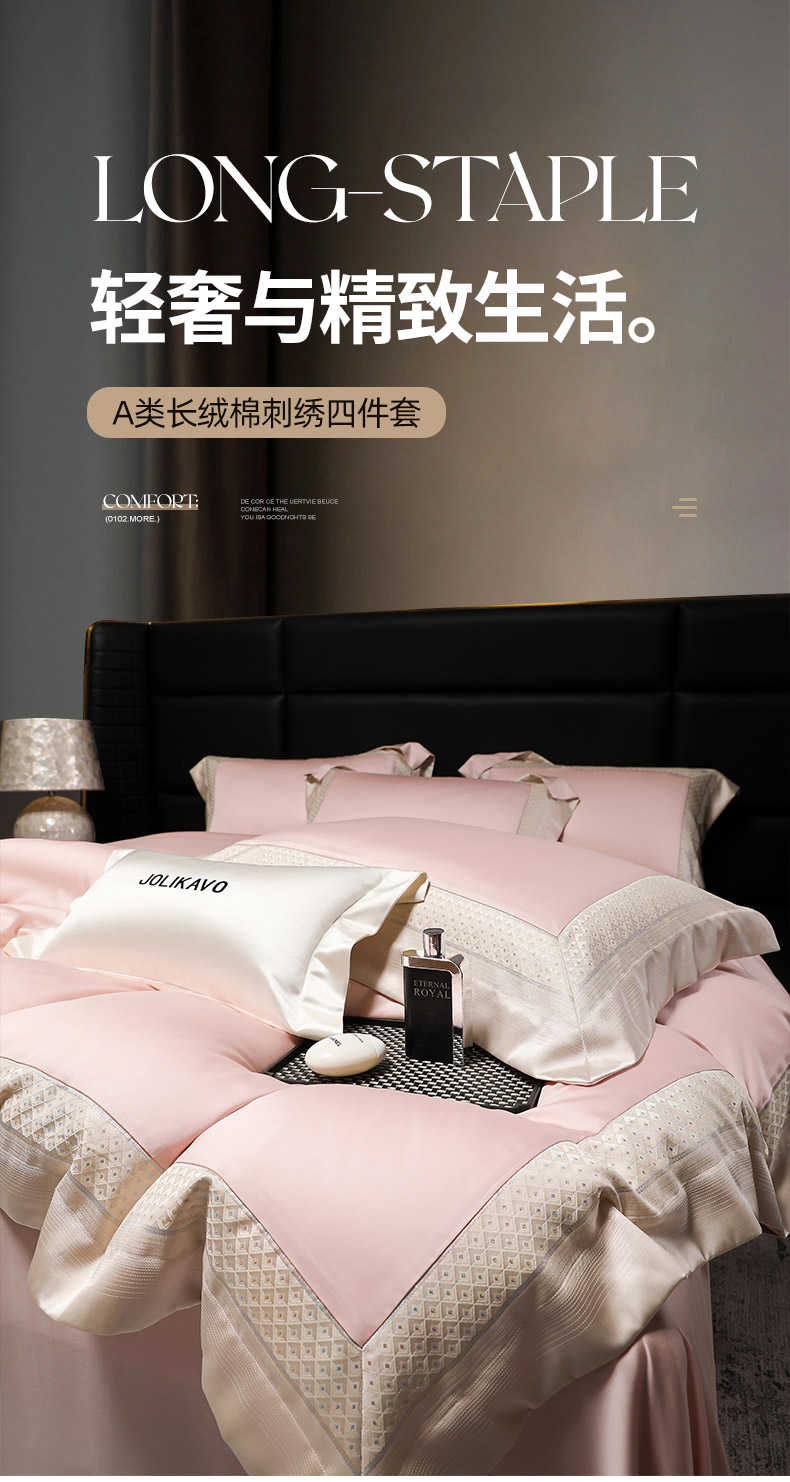 当前位置: 91家纺网 > 商品网购 > 床品套件 > 四件套 > 长绒棉四件套 > (总)2025新款轻奢风A类贡缎长绒棉四件套全棉纯棉重工刺绣拼接被套纯色床单床笠高端床上用品