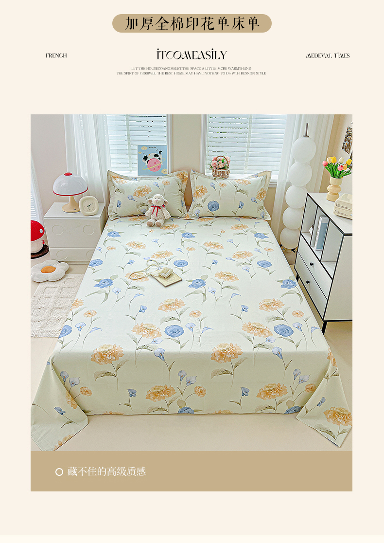 商品名称:恩泽家纺 2025新款加厚全棉纯棉印花系列床单单件-单床单 锦花缘