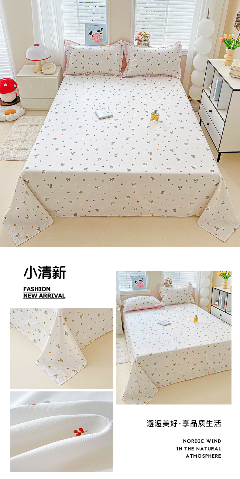 (总)恩泽家纺 2026春夏新款全棉纯棉12868印花四件套及单品系列-单床单床单单件,草莓季,多彩世界,护花使者,花丛小兔子,花季少女,花梦间,极简主义,凯蒂宝贝,可爱喵,拉菲特,洛琳粉,绿格小熊,帽子小狗,喵喵,魔法帽,奶油阿布,派对小狗,苹果小猫咪,时尚猫咪粉,田园小花,碎花兔兔,甜小桔,甜心汪·咖,甜心汪·蓝,晚樱,小狗乐乐,小精灵,小萌物,小淘气,小甜心,小熊布丁,小熊猫,星动情节,星梦童话,星愿萌犬,熊猫与牛油果,学院风,雪纳瑞,樱桃派,樱桃兔,樱桃小熊,宅宅女孩