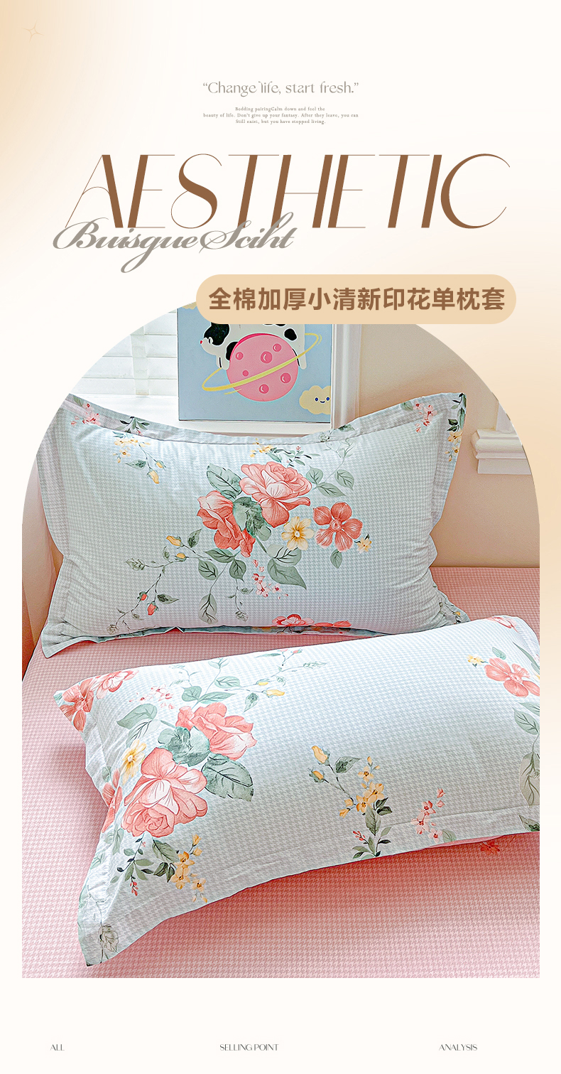 恩泽家纺 2025新款加厚全棉纯棉印花系列枕套单件-单枕套 洛川花海