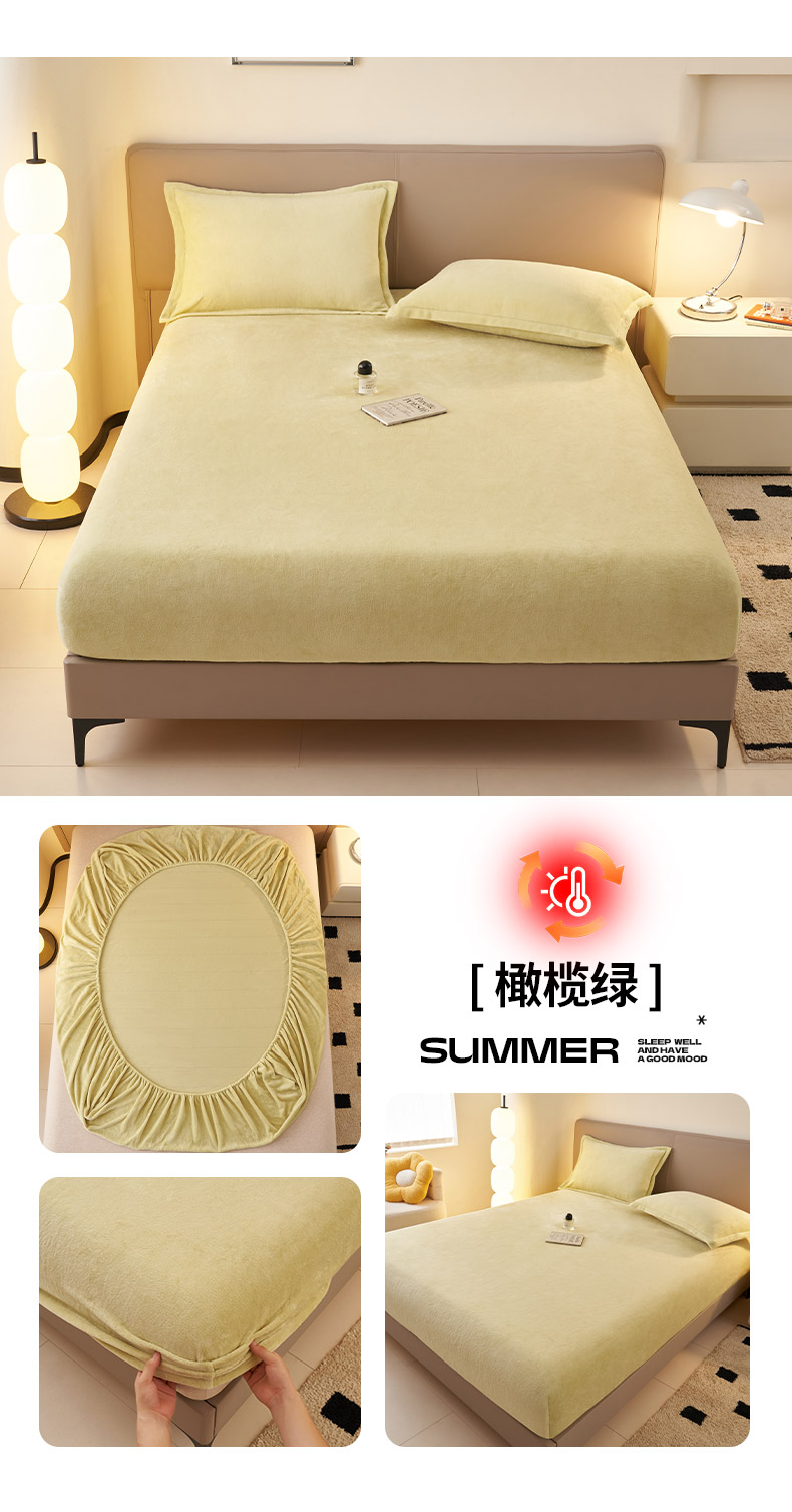 简爱 2025新款纯色牛奶绒单床笠 橄榄绿