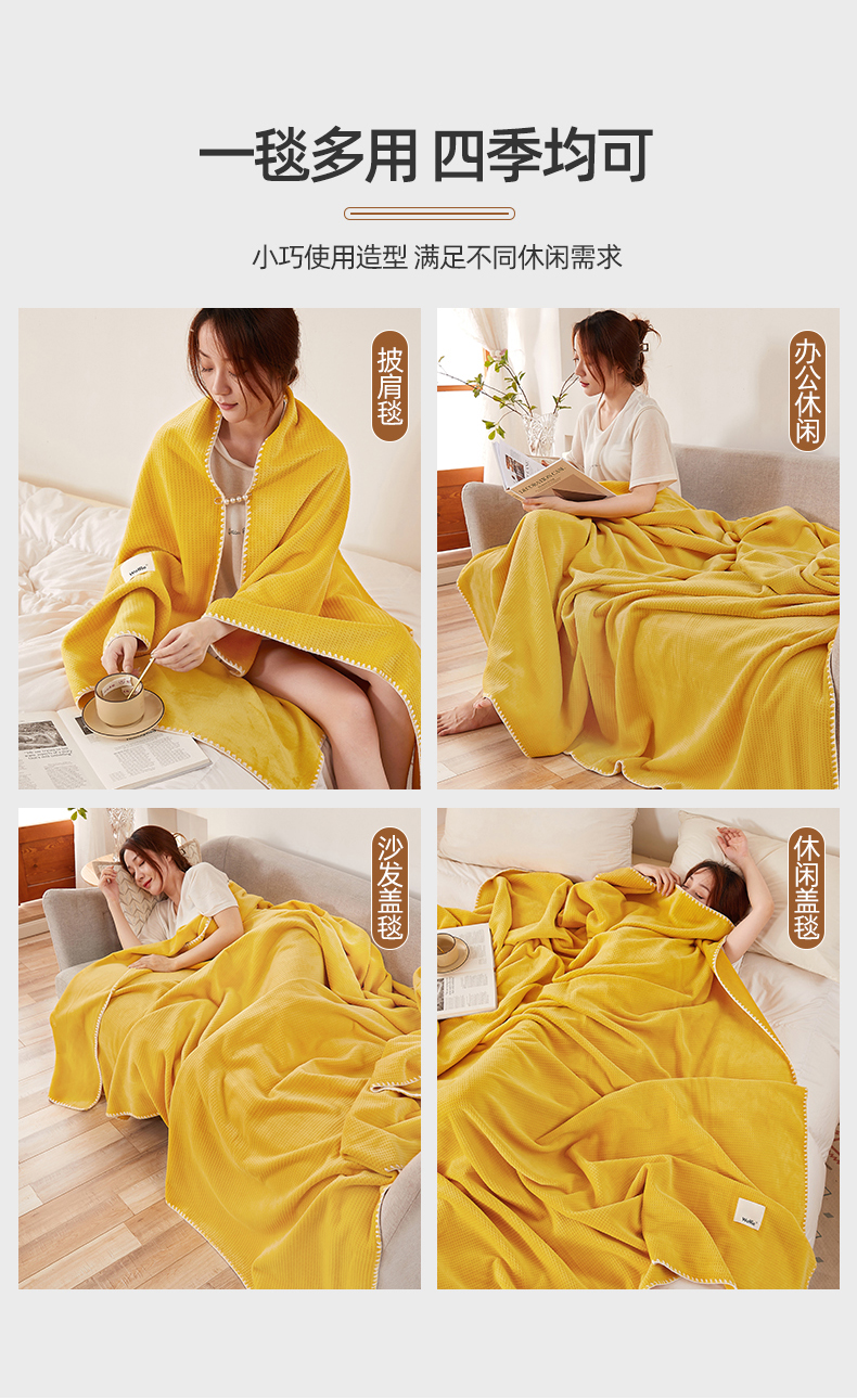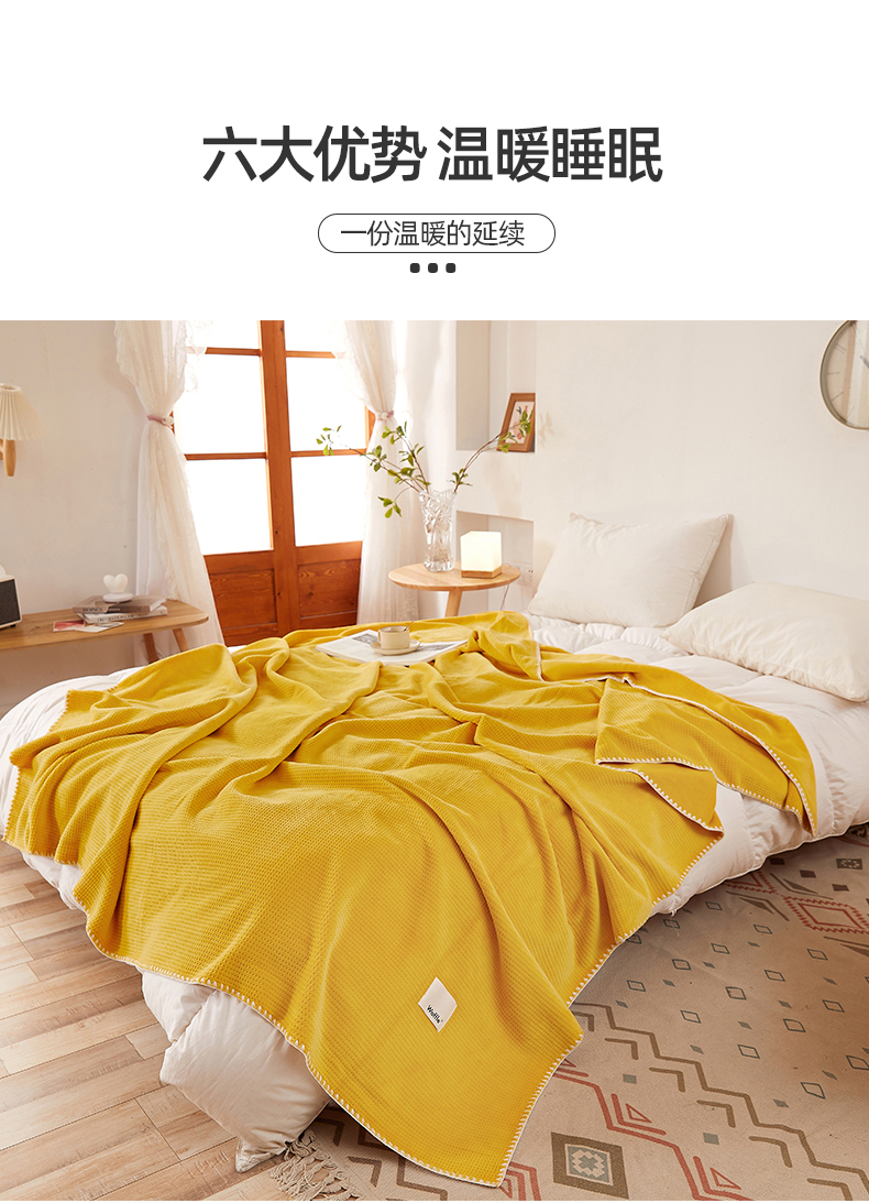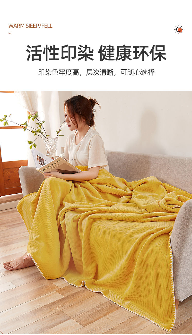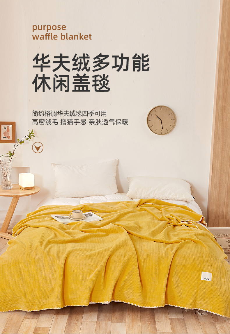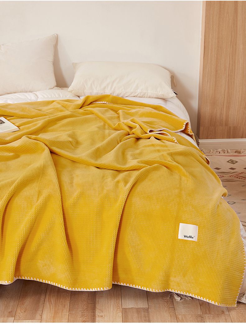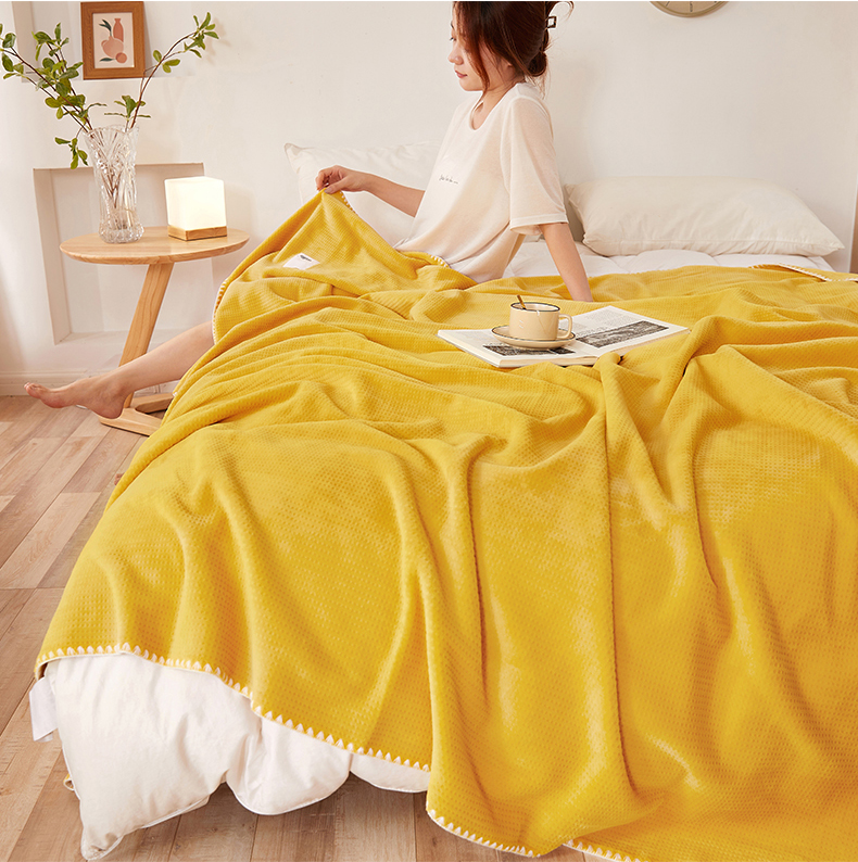 莱家富 2026新款500克加厚A类华夫格牛奶绒双面毛毯轻奢休闲盖毯子多尺寸多功能午睡办 明黄