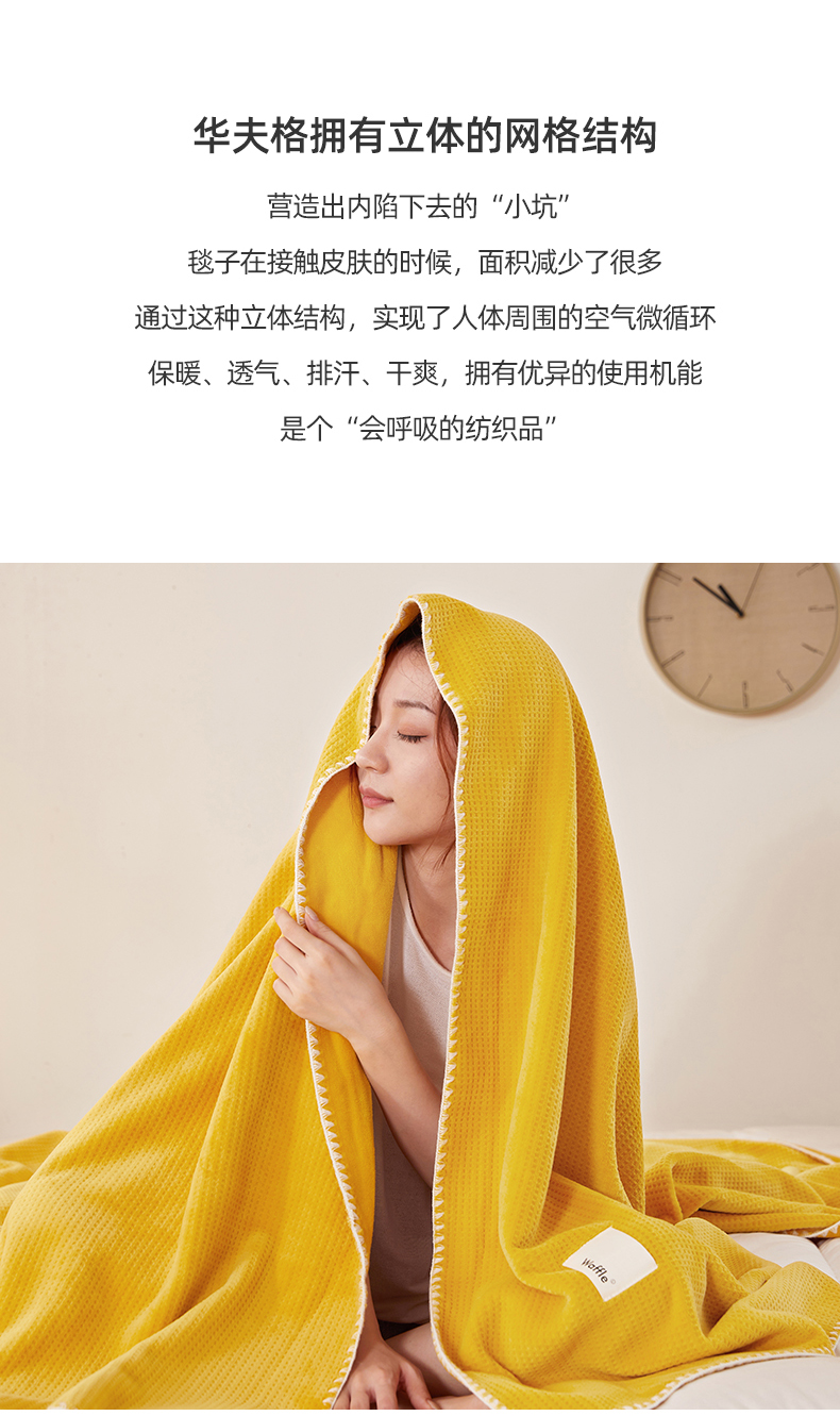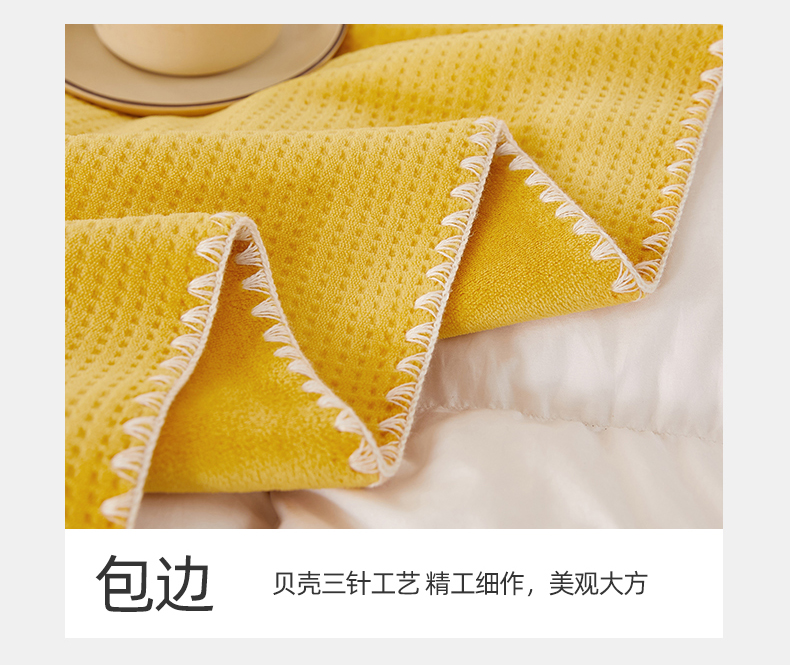 商品名称:莱家富 2026新款500克加厚A类华夫格牛奶绒双面毛毯轻奢休闲盖毯子多尺寸多功能午睡办 明黄
