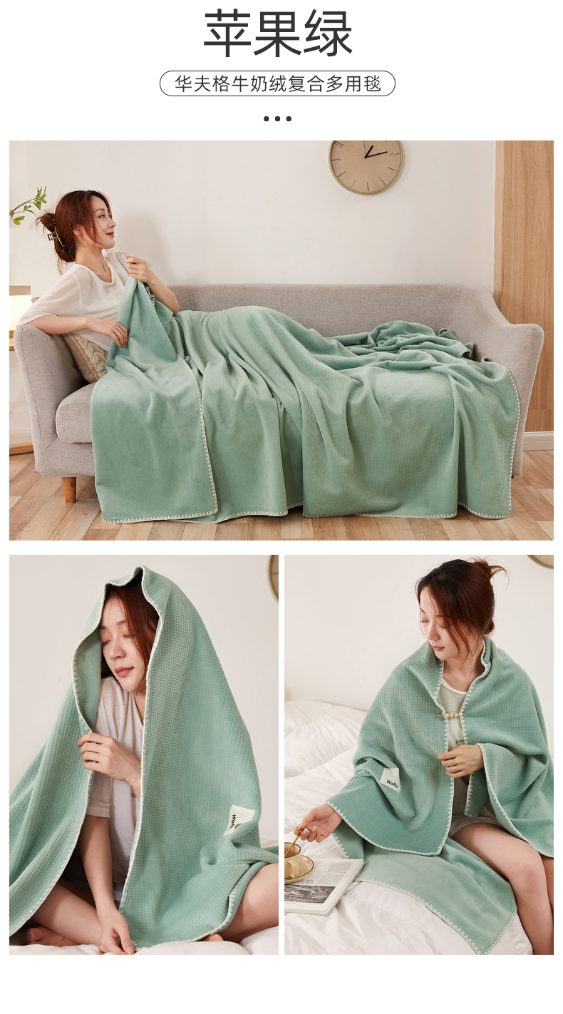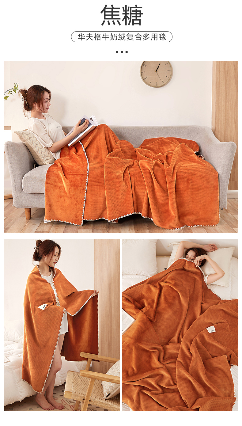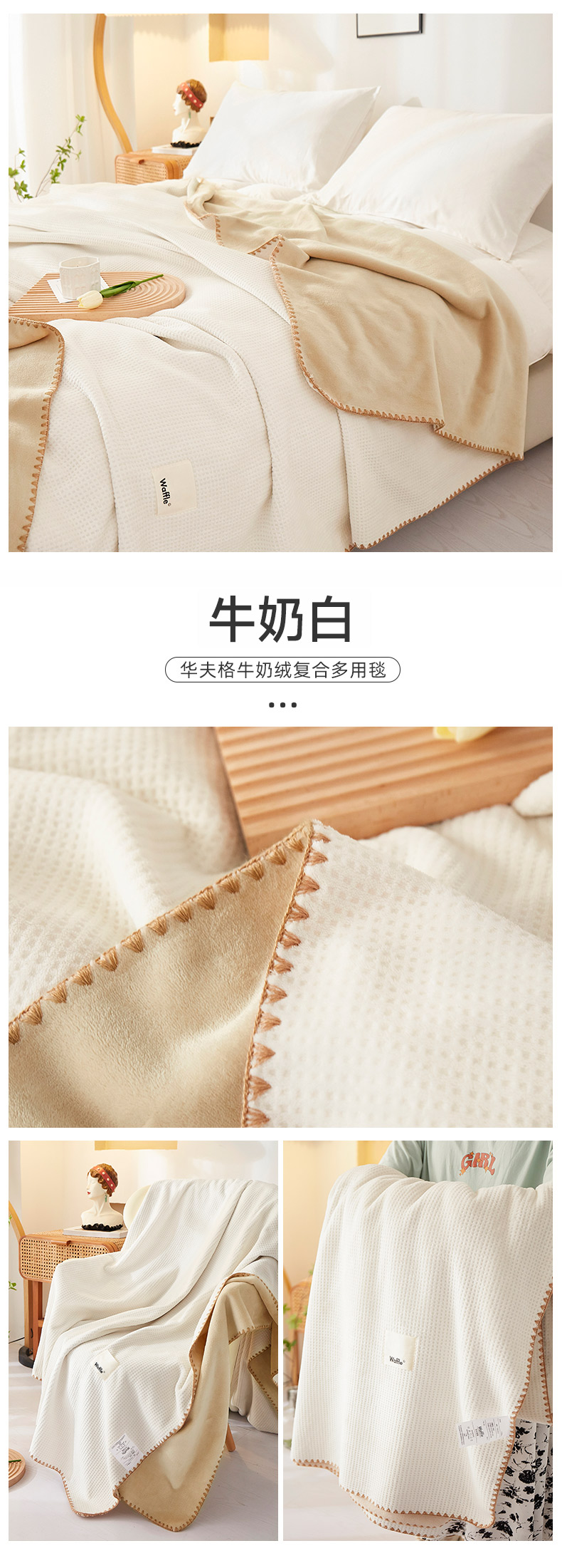 (总)莱家富 2026新款500克加厚A类华夫格牛奶绒双面毛毯轻奢休闲盖毯子多尺寸多功能午睡办,组合图仅做展示,都市灰,湖蓝,焦糖,明黄,奶白,嫩粉,苹果绿