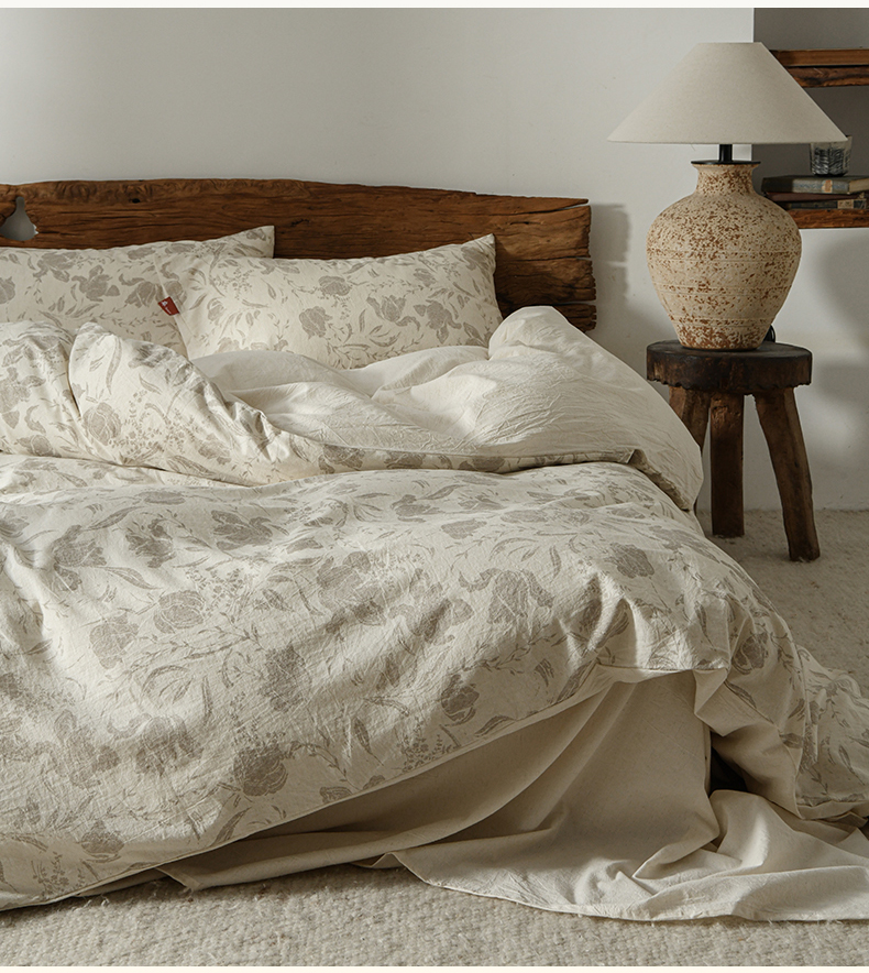 当前位置: 91家纺网 > 商品网购 > 床品套件 > 四件套 > 其它四件套 > 羚羊语家纺 2025新款A类棉麻高支密原生棉花亚麻四件套复古色织数码印花文艺风绉绉汉麻亚麻自 枕边书