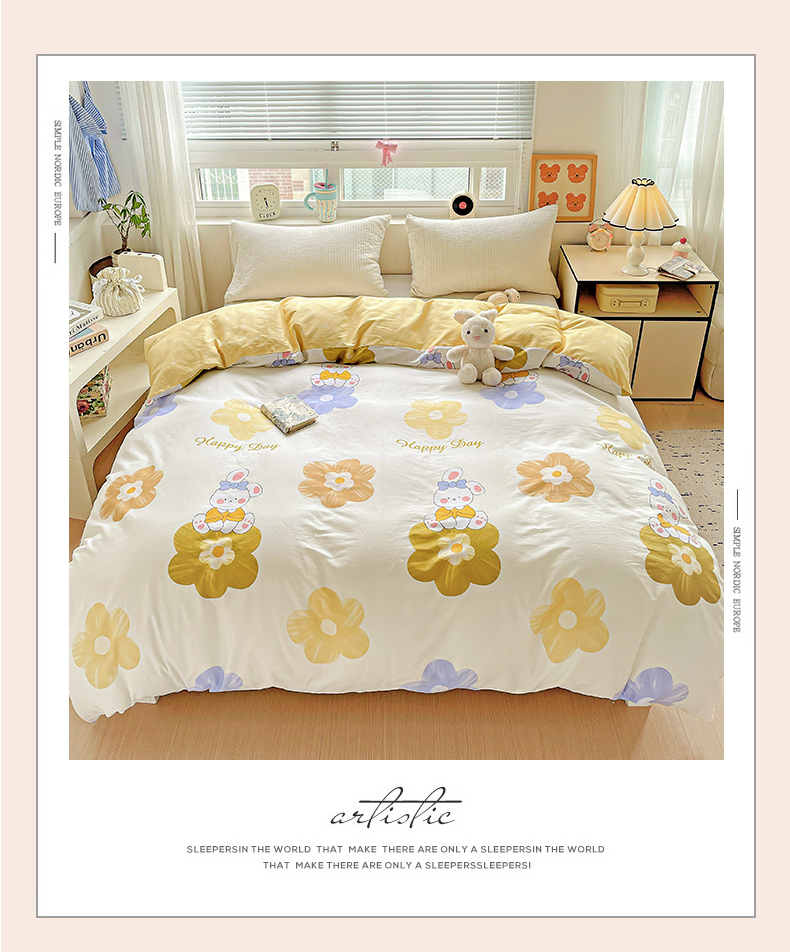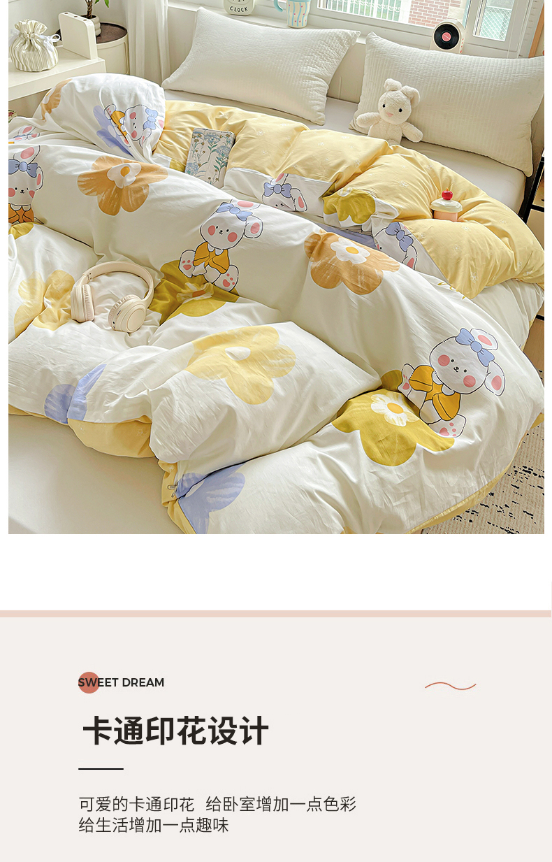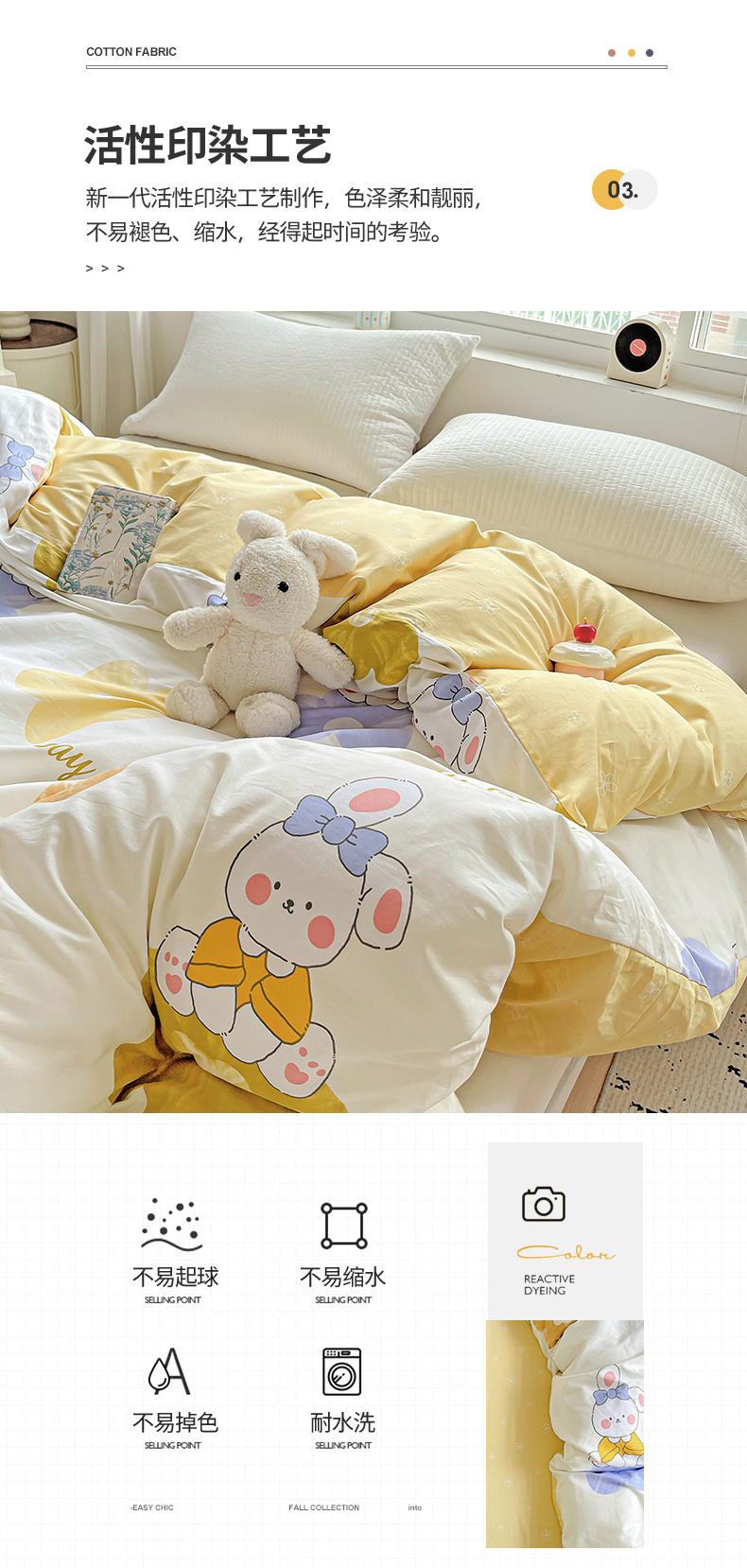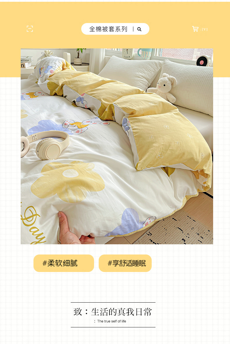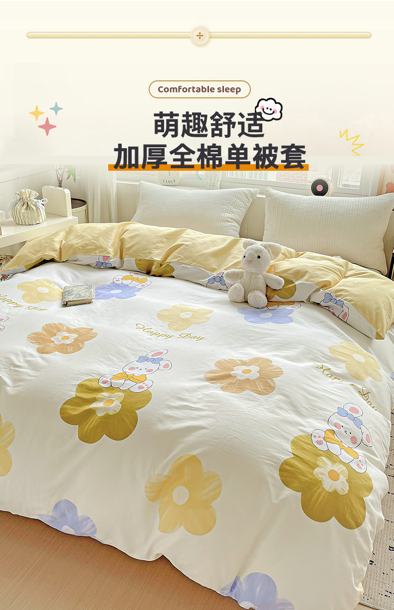 商品名称:恩泽家纺 2025新款加厚全棉纯棉印花系列被套单件-单被套 小兔花