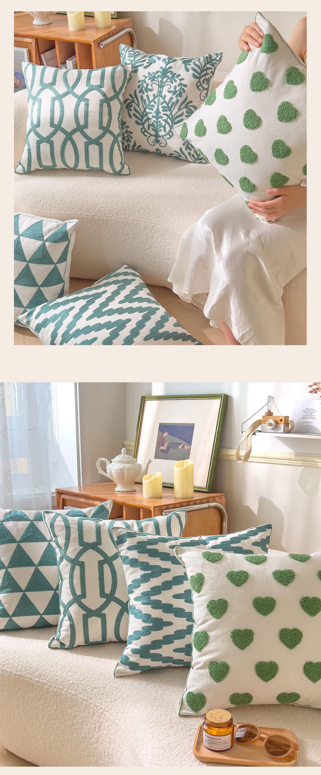 商品名称:(总)诺可 2025新款全棉毛巾绣抱枕外贸跨境电商直播纯色几何系列-绿色