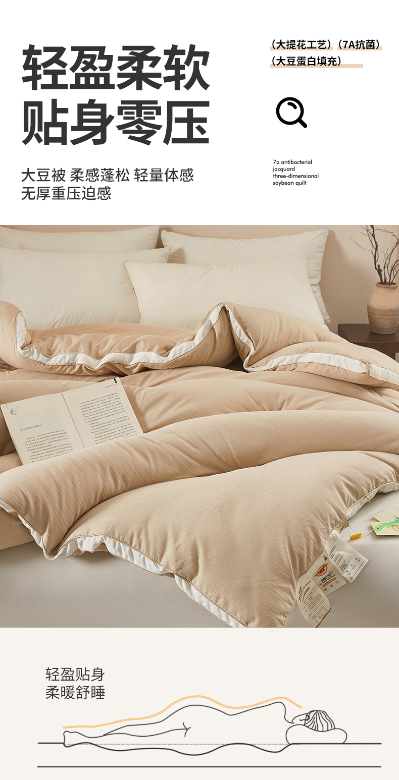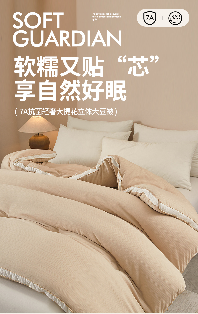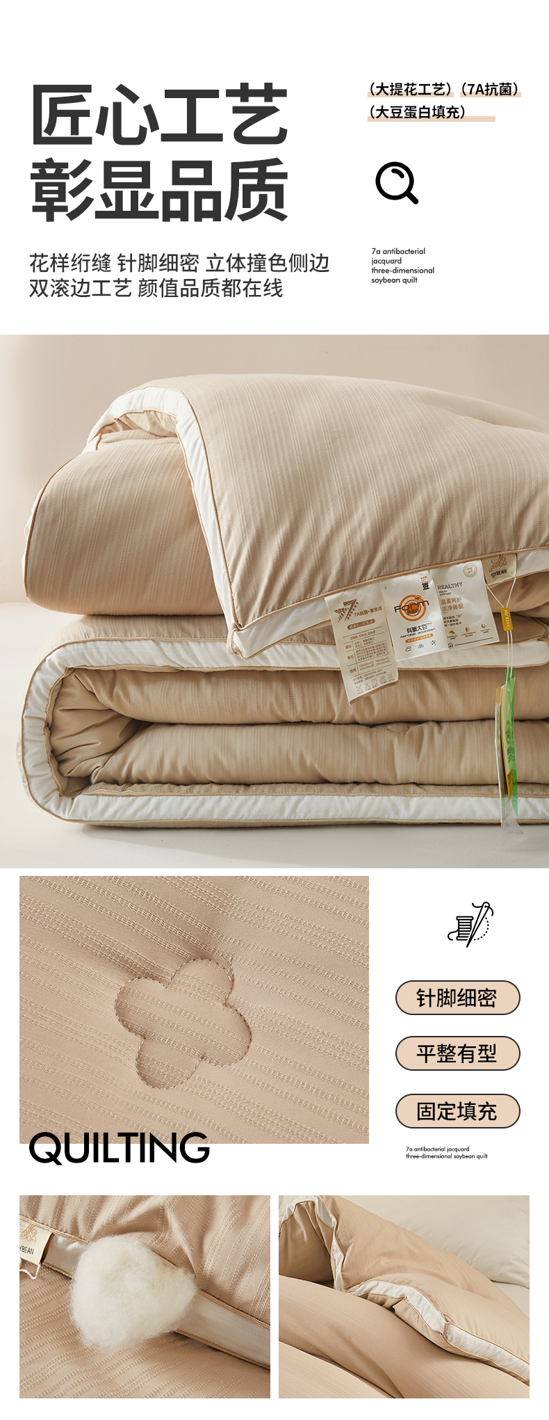 • 91家纺网 家纺一手货源 找家纺 罗布斯 2025新款A类立体提花大豆被被子被芯二合一子母被学生宿舍夏被空调被夏凉被春秋被直播冬被【含买家秀】 香槟咖