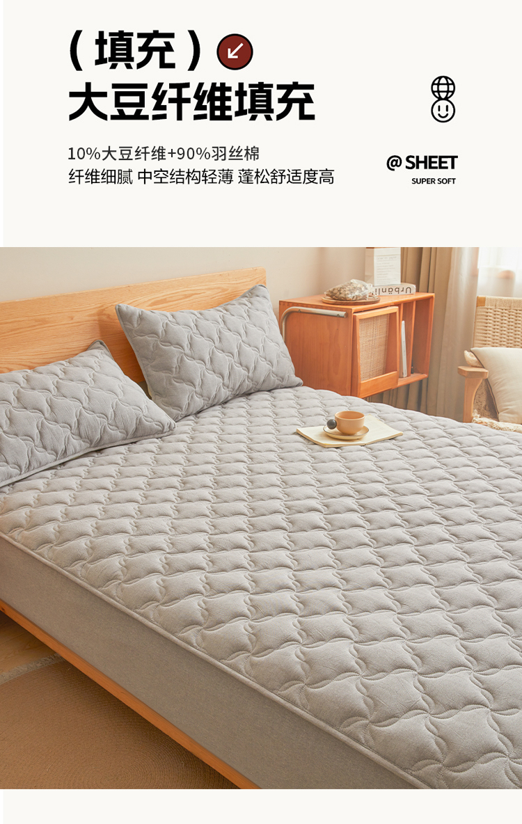 缦吉 2025款A类全棉水洗棉色织大豆床笠 白色