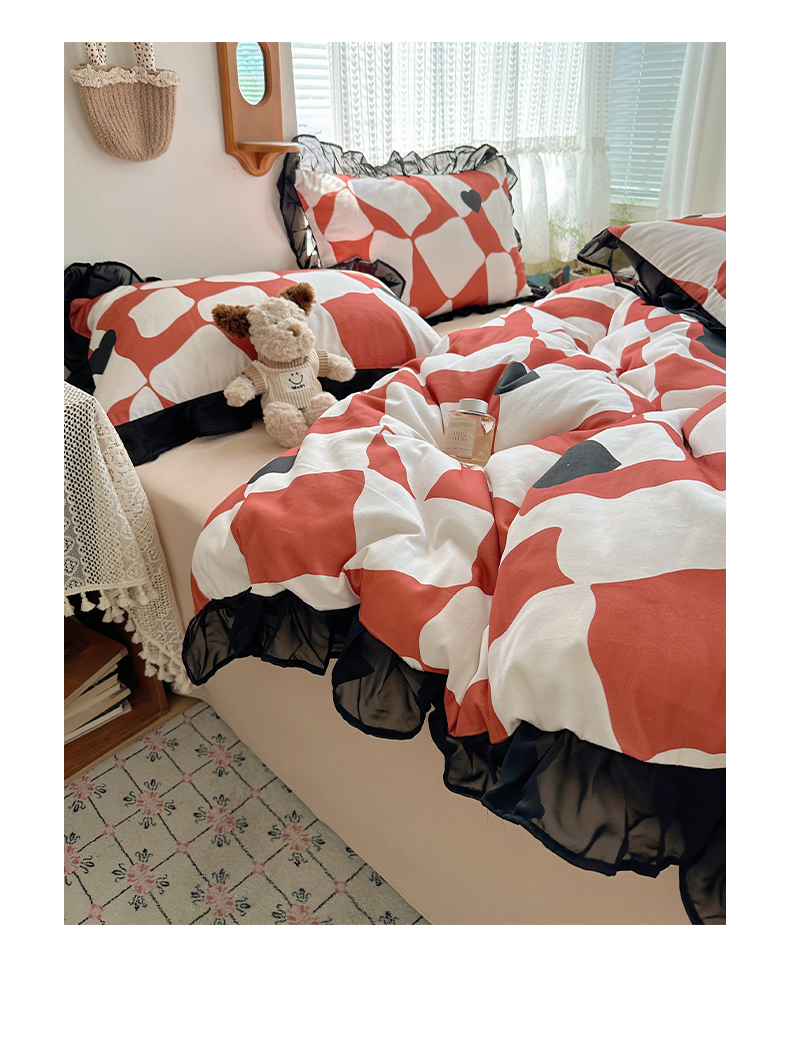 (总)雅居纺家纺 2022新款13070全棉印花四件套,草莓蝴蝶结,俄罗斯方块,黑白蝴蝶结,很嗨兔,可爱小兔,快乐花海,牛奶纹,胖胖鸭,棋盘格,日月争辉,西部恐龙,小情调,小桃桃