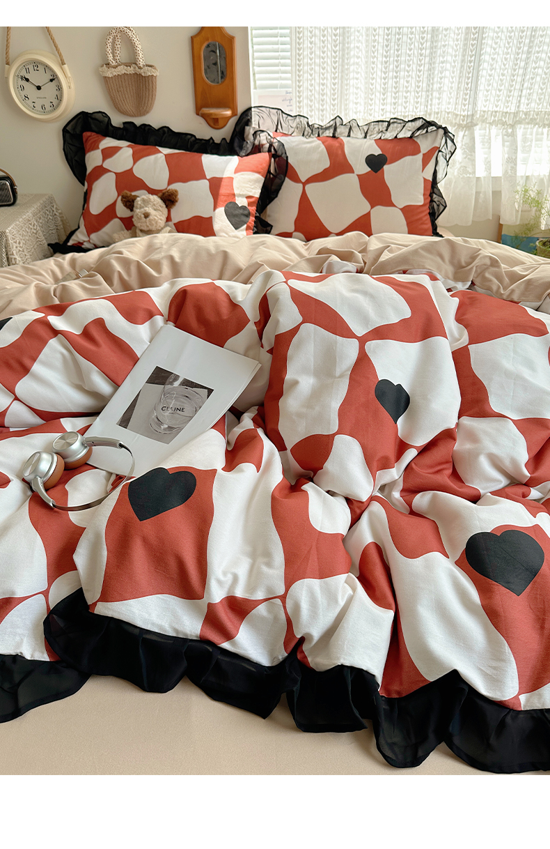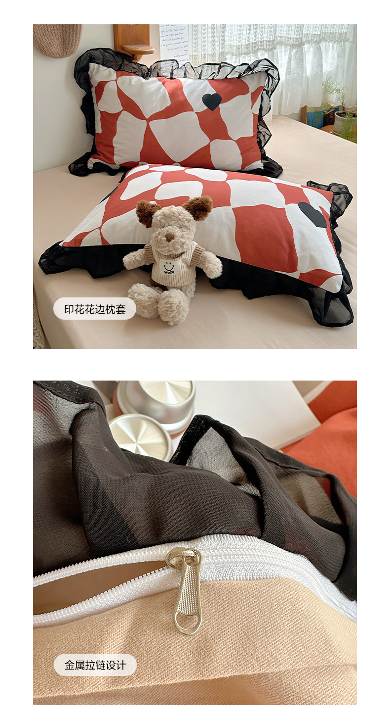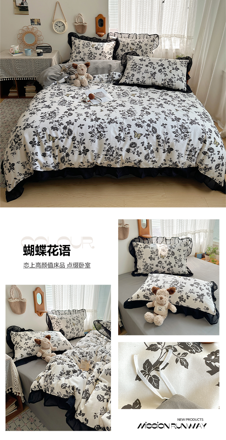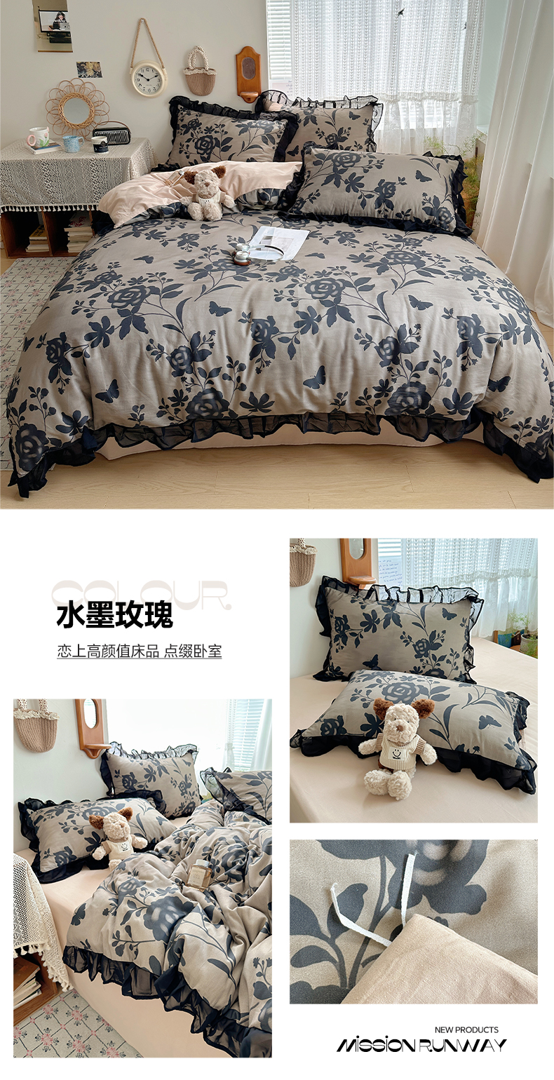 (总)雅居纺家纺 2025新款全棉纯棉赫本风磨毛蕾丝花边四件套-风格一