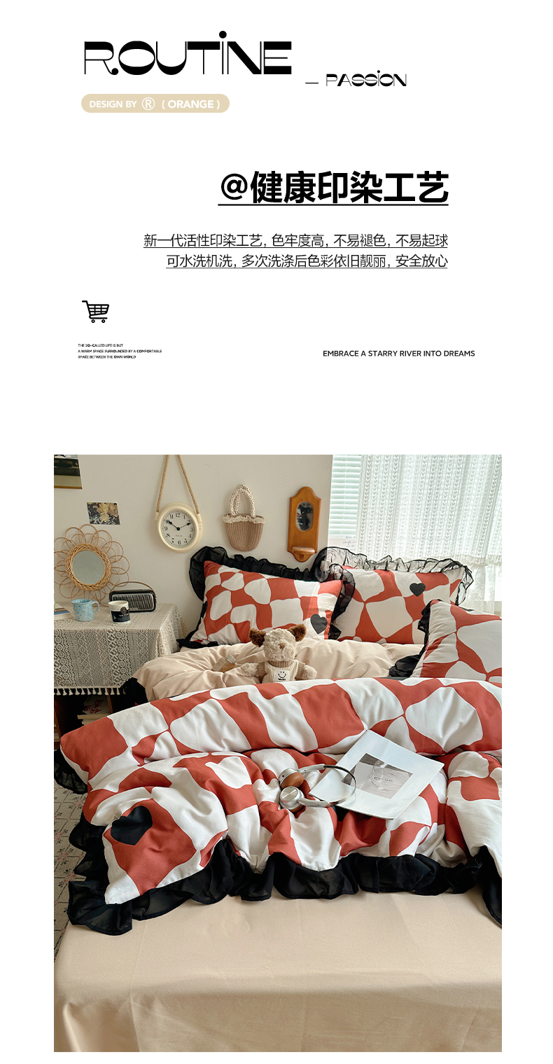 (总)雅居纺家纺 2022新款13070全棉印花四件套,波纹,多彩,简笔画,莓关系,奶油绿豹纹,倾心,数字