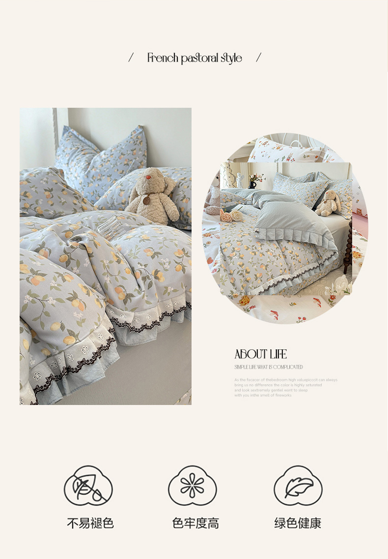 (总)韩约家纺 2026新款韩式花边古法棉感床盖四件套,知否,午后时光,漫花蝶舞,莓莓果,花影,甜心狗,初遇,萝莉,雨沫