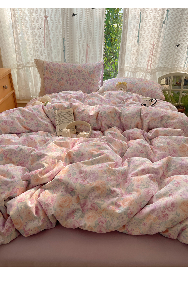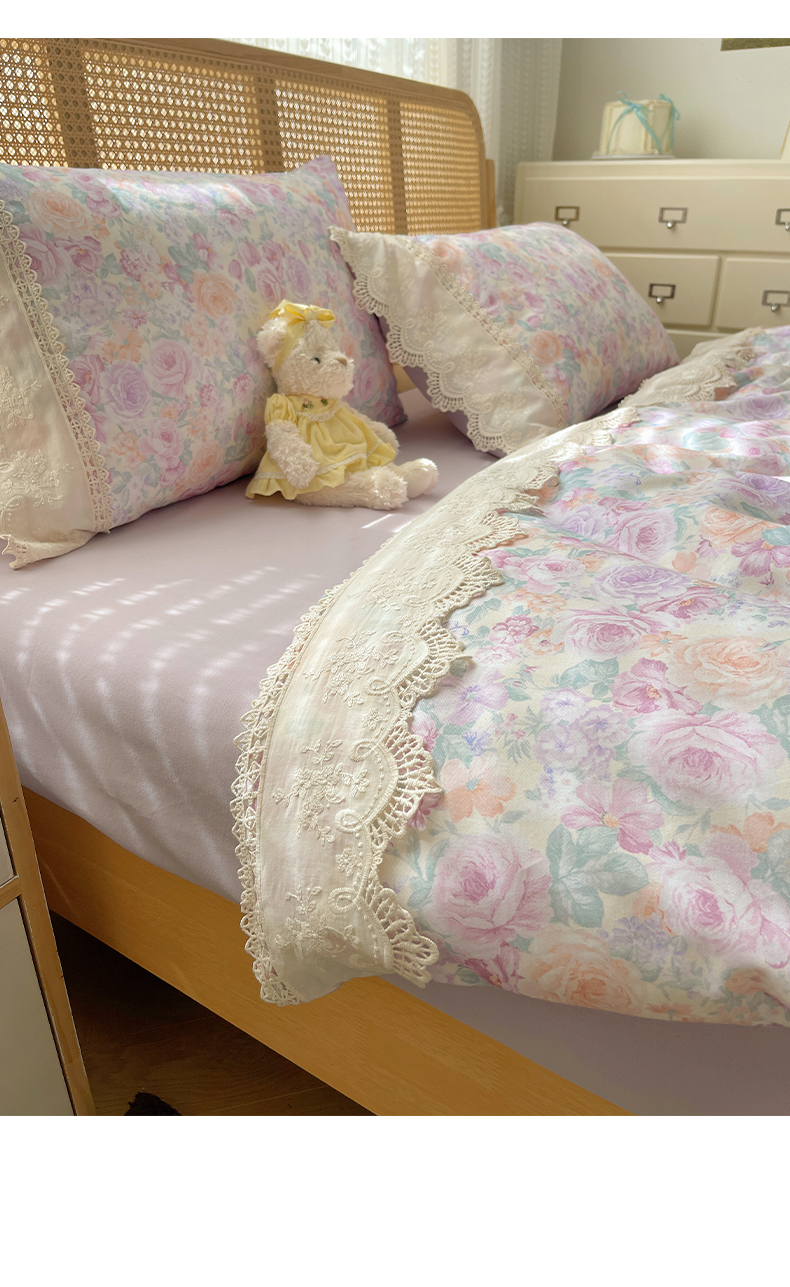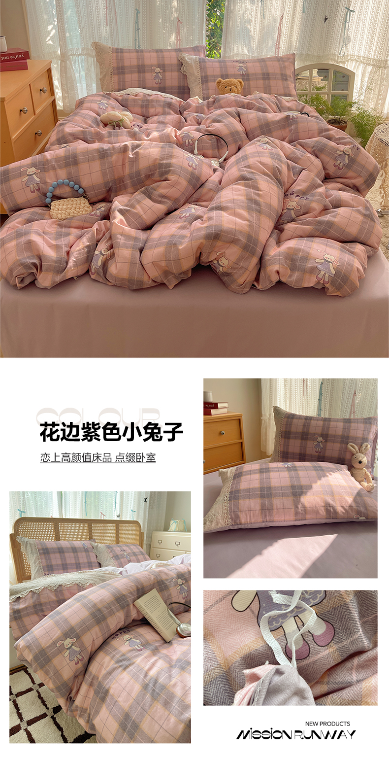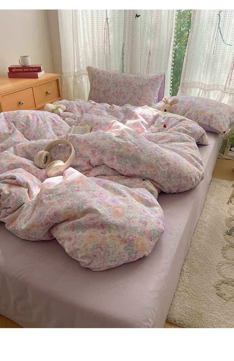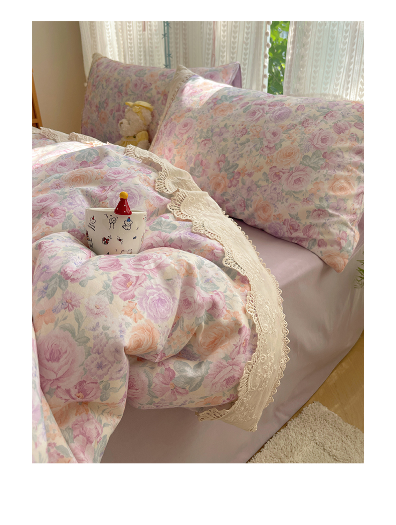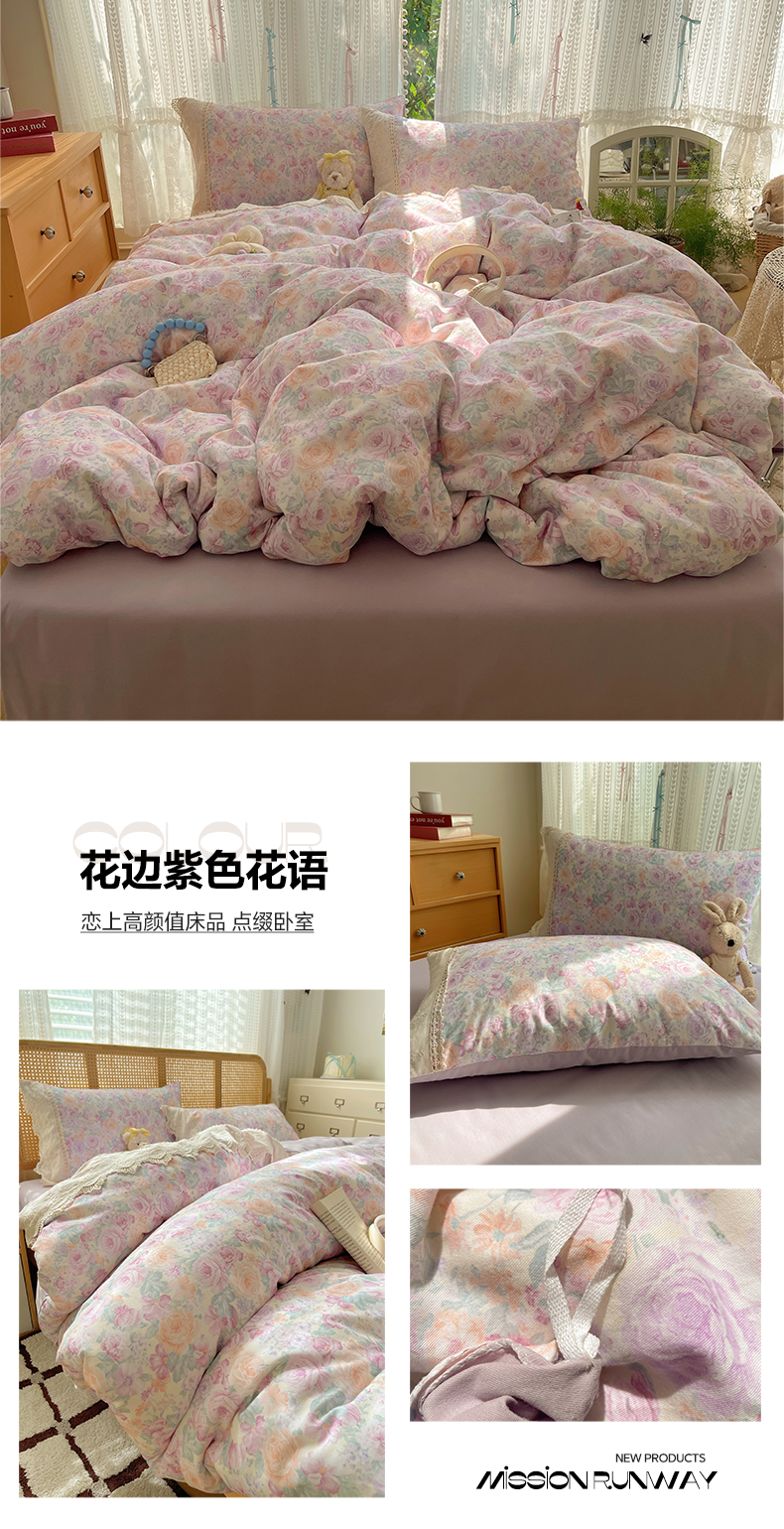 当前位置: 91家纺网 > 商品网购 > 床品套件 > 四件套 > 全棉普通四件套 > 雅居纺家纺 2025新款全棉纯棉韩版花边磨毛四件套 花边紫色花语