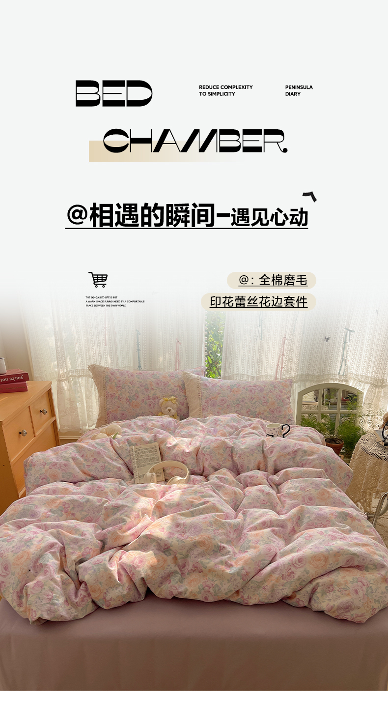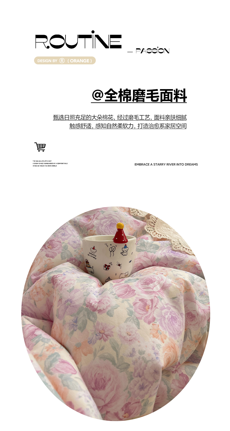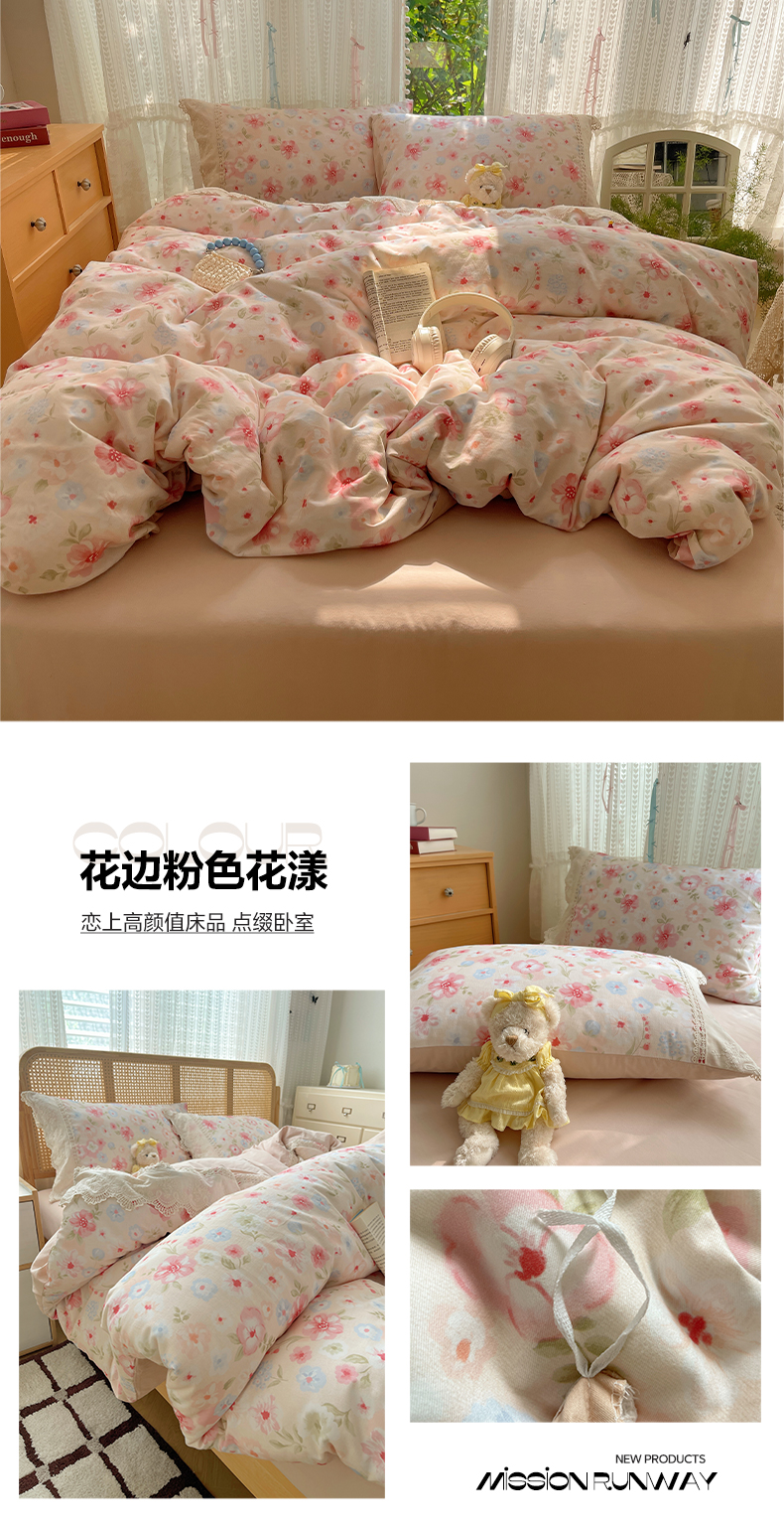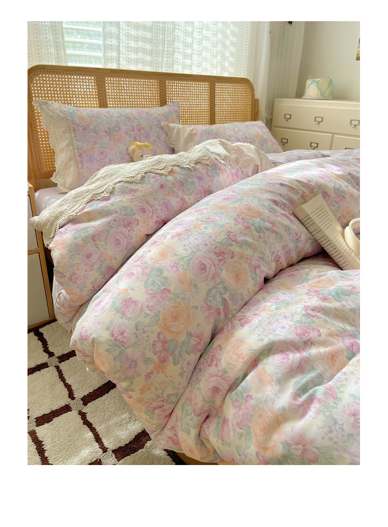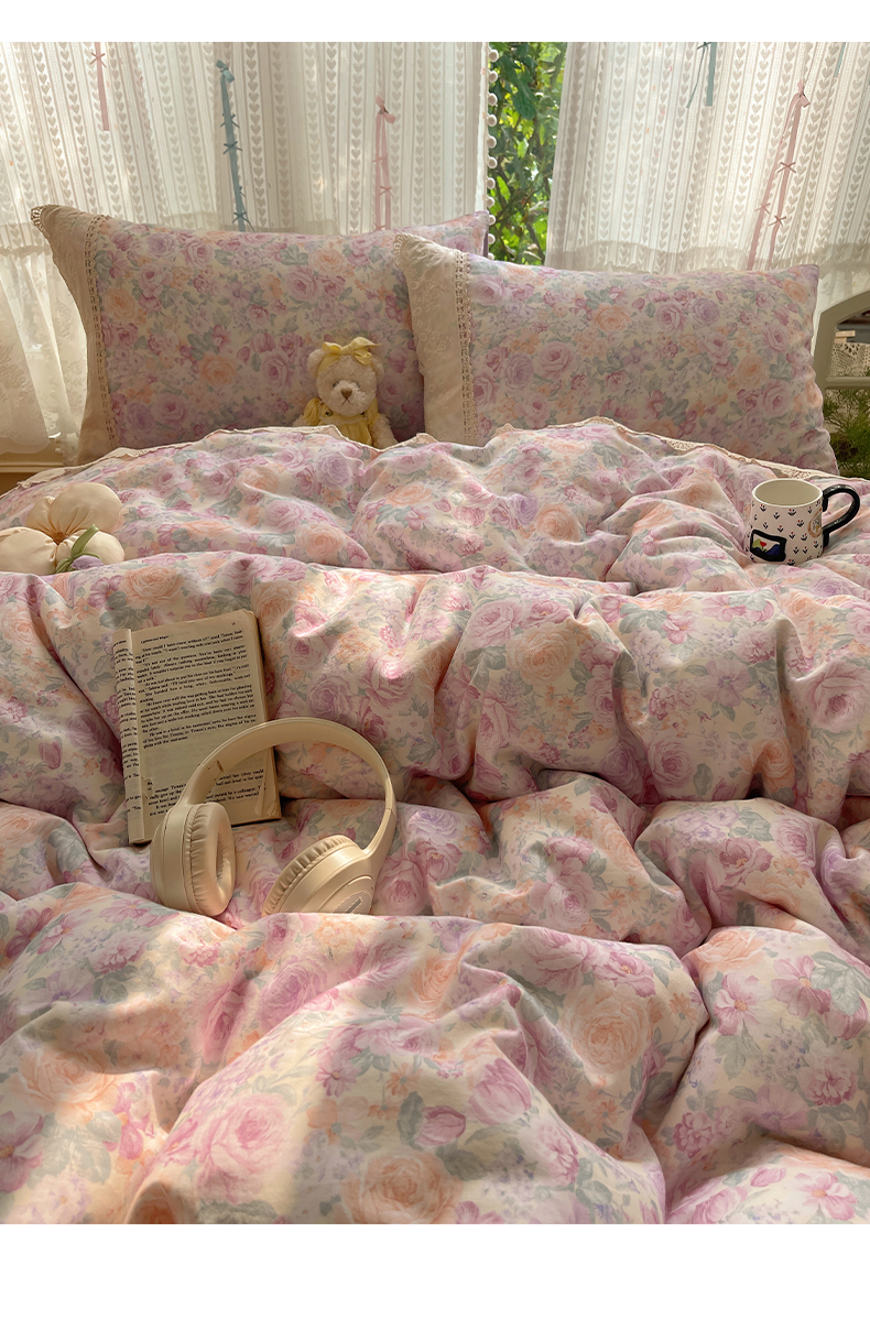 当前位置: 91家纺网 > 商品网购 > 床品套件 > 四件套 > 全棉普通四件套 > 雅居纺家纺 2025新款全棉纯棉韩版花边磨毛四件套 花边紫色花语