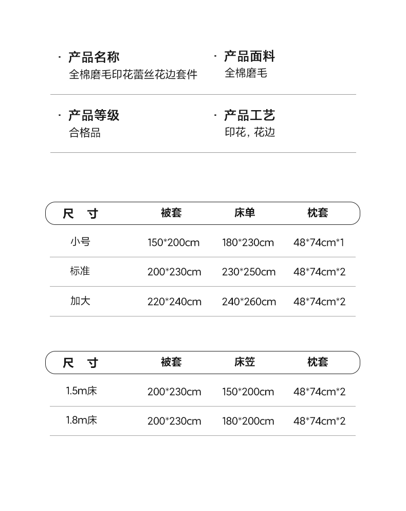 【床笠款】1.5四件套-被套200x230 | ¥145.00 |