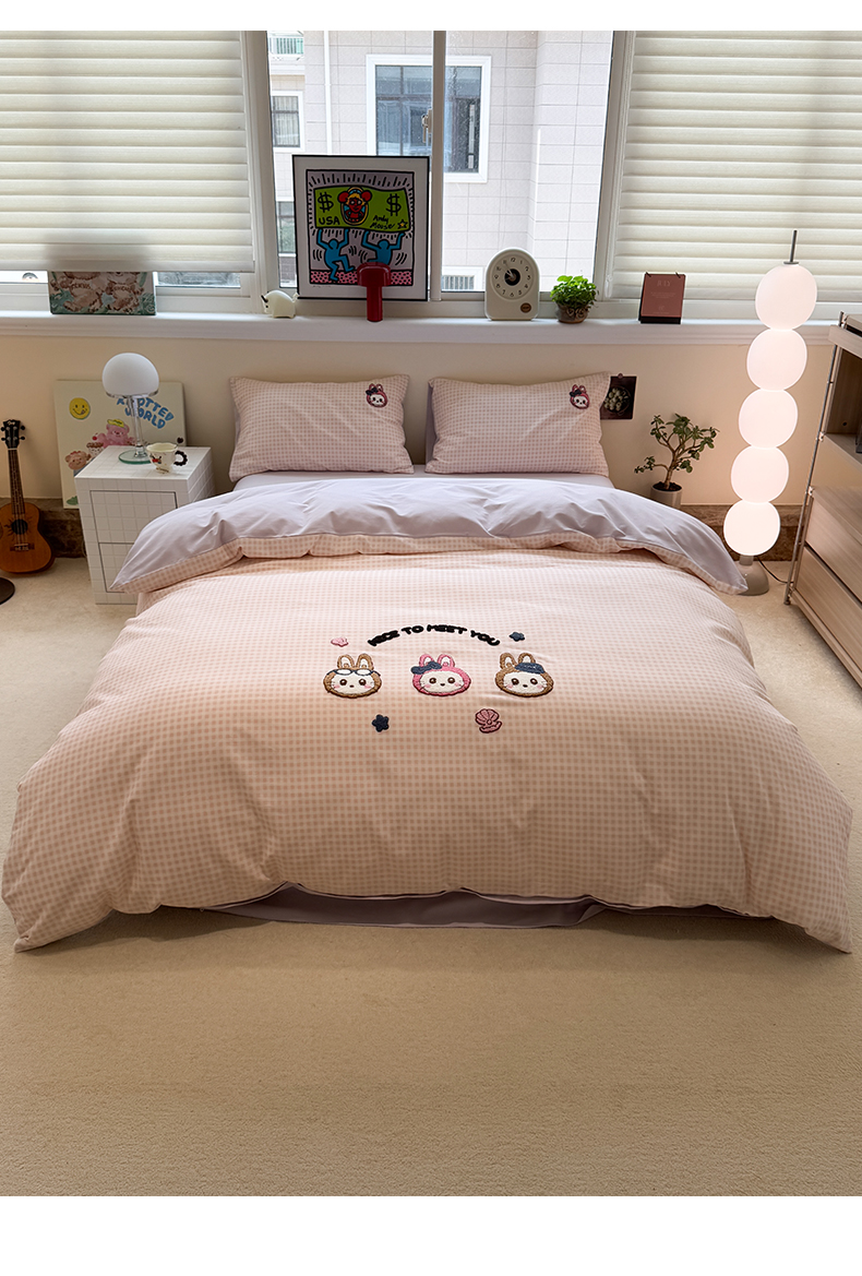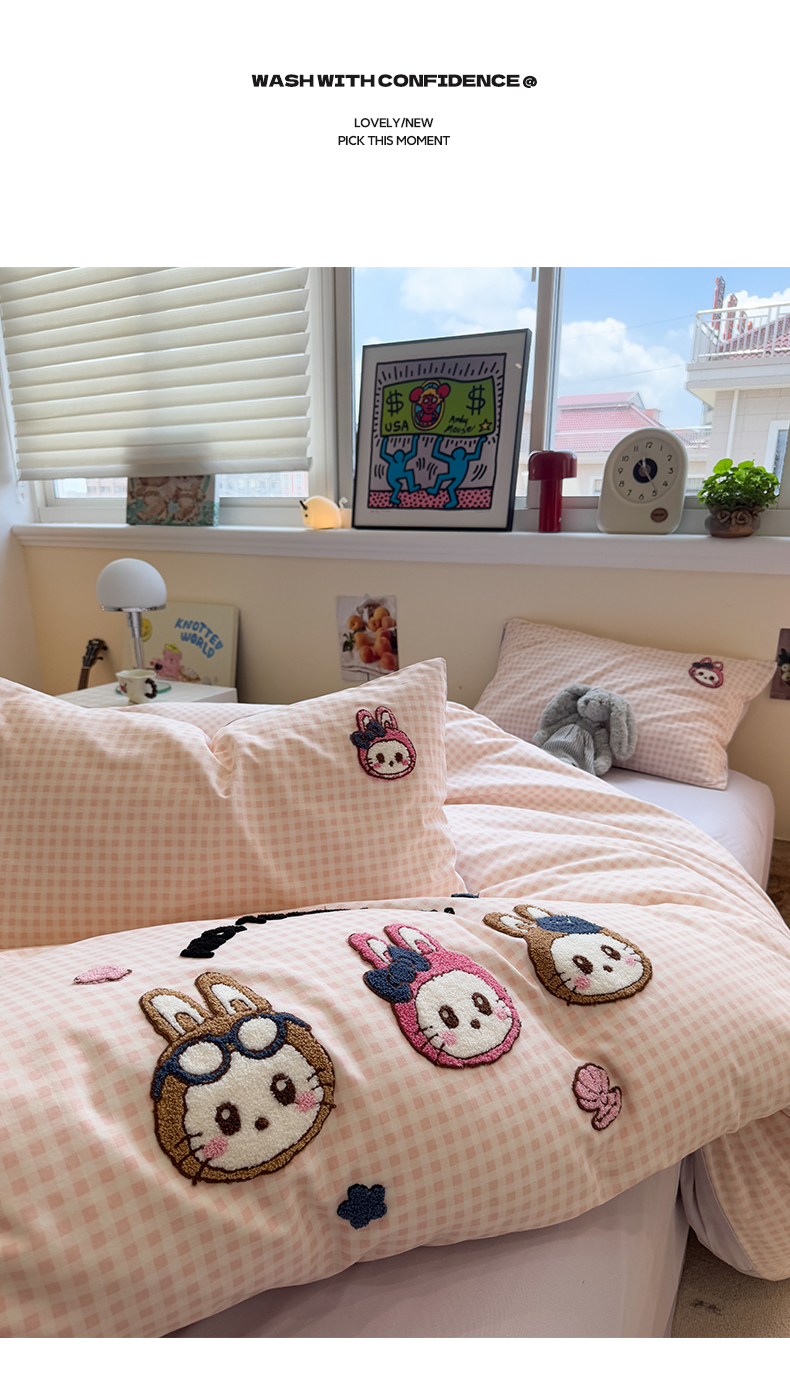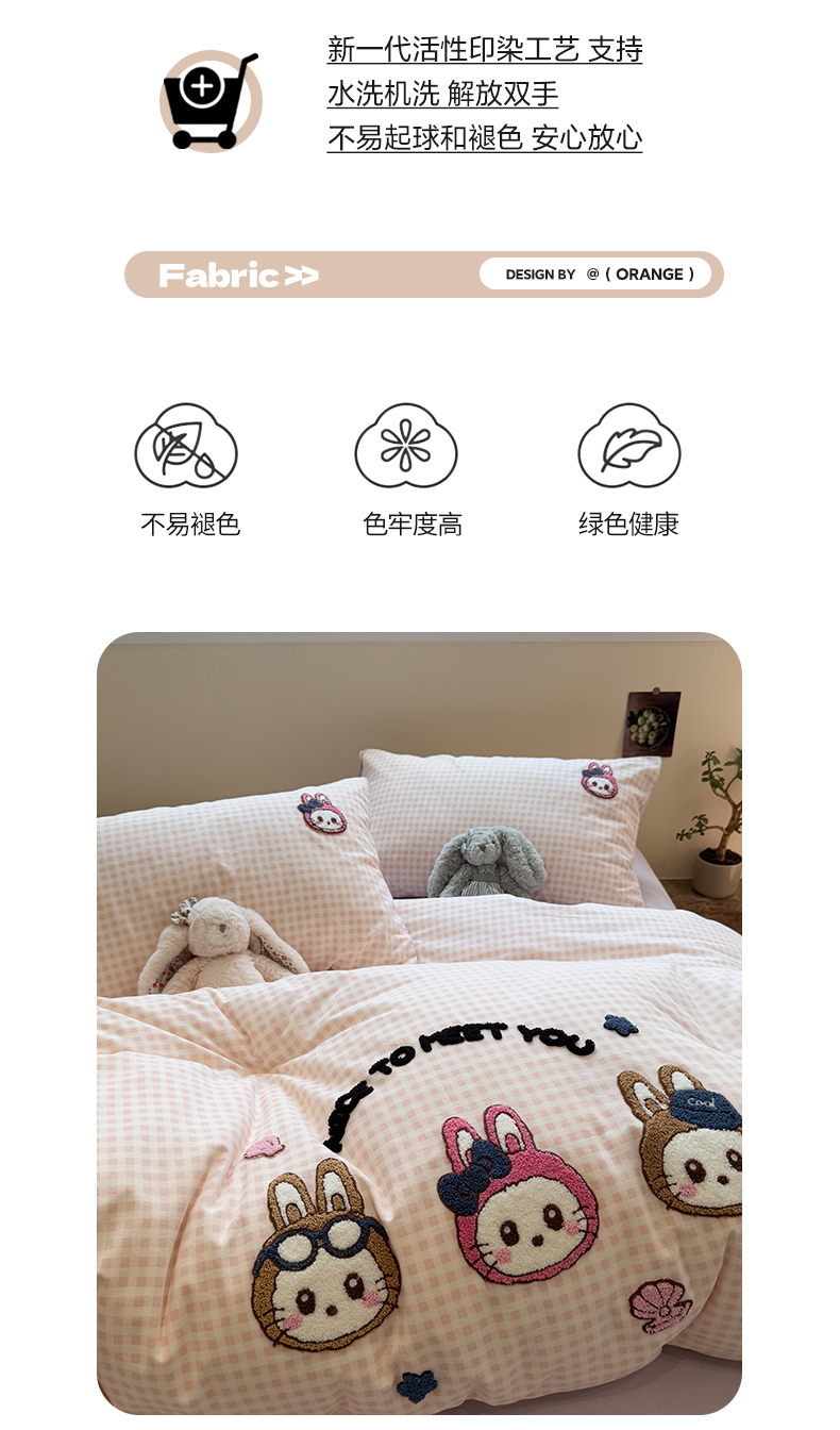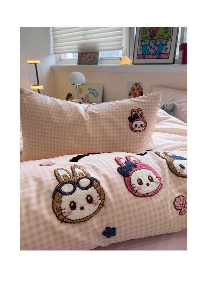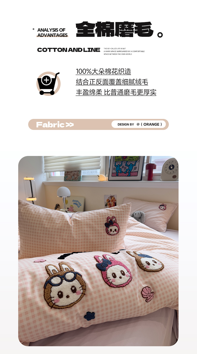 当前位置: 91家纺网 > 商品网购 > 床品套件 > 四件套 > 全棉普通四件套 > 雅居纺家纺 2025新款全棉纯棉磨毛毛巾绣四件套 奶萌兔兔