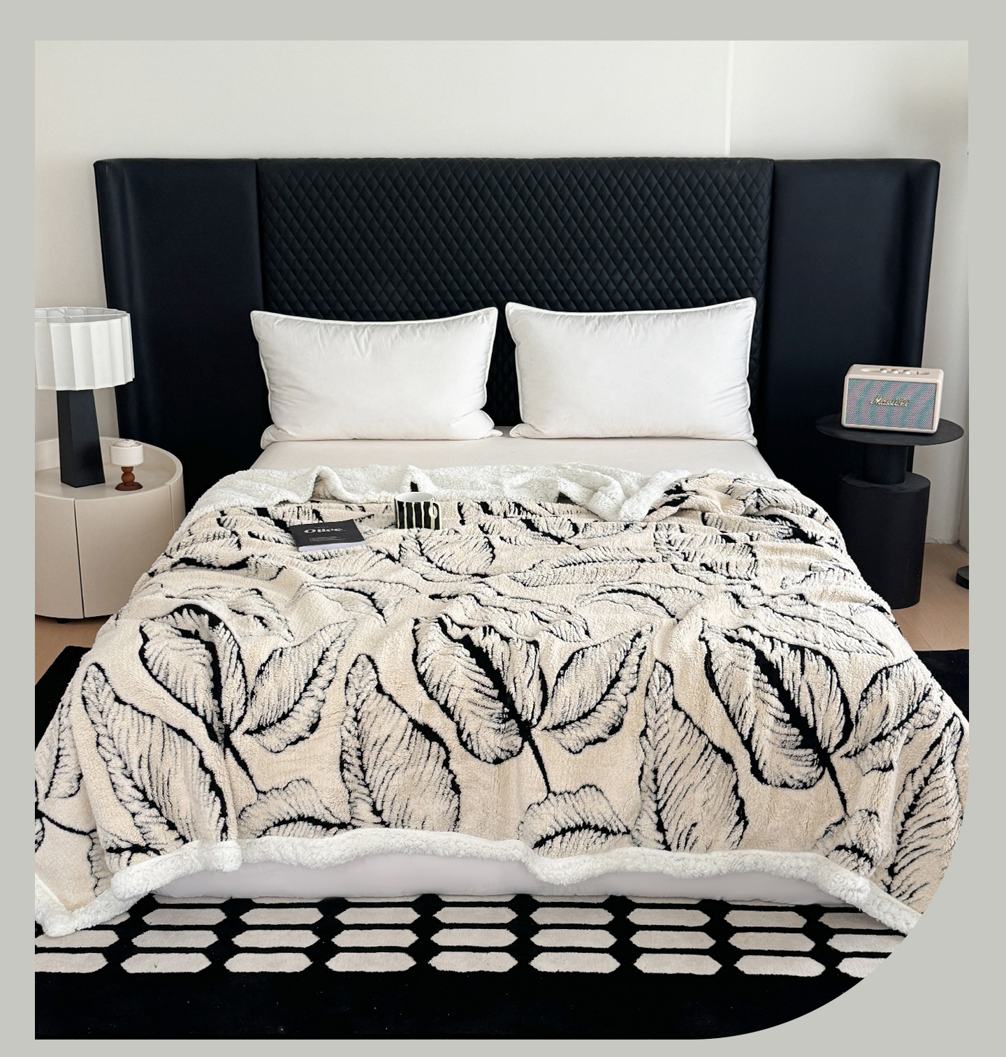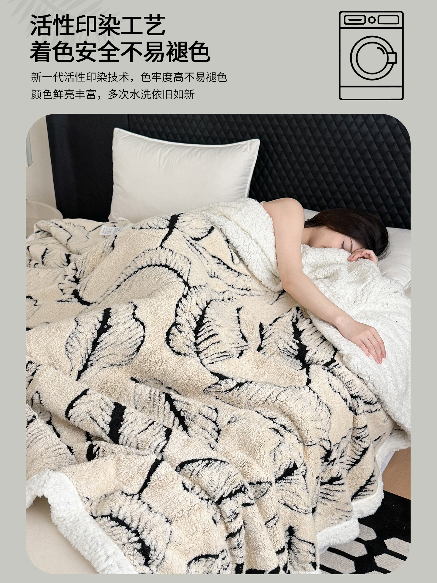 丹本家纺 2025新款双层阳离子叶子提花塔芙绒羊羔绒跨境双层毛毯盖毯毯子 叶子白色