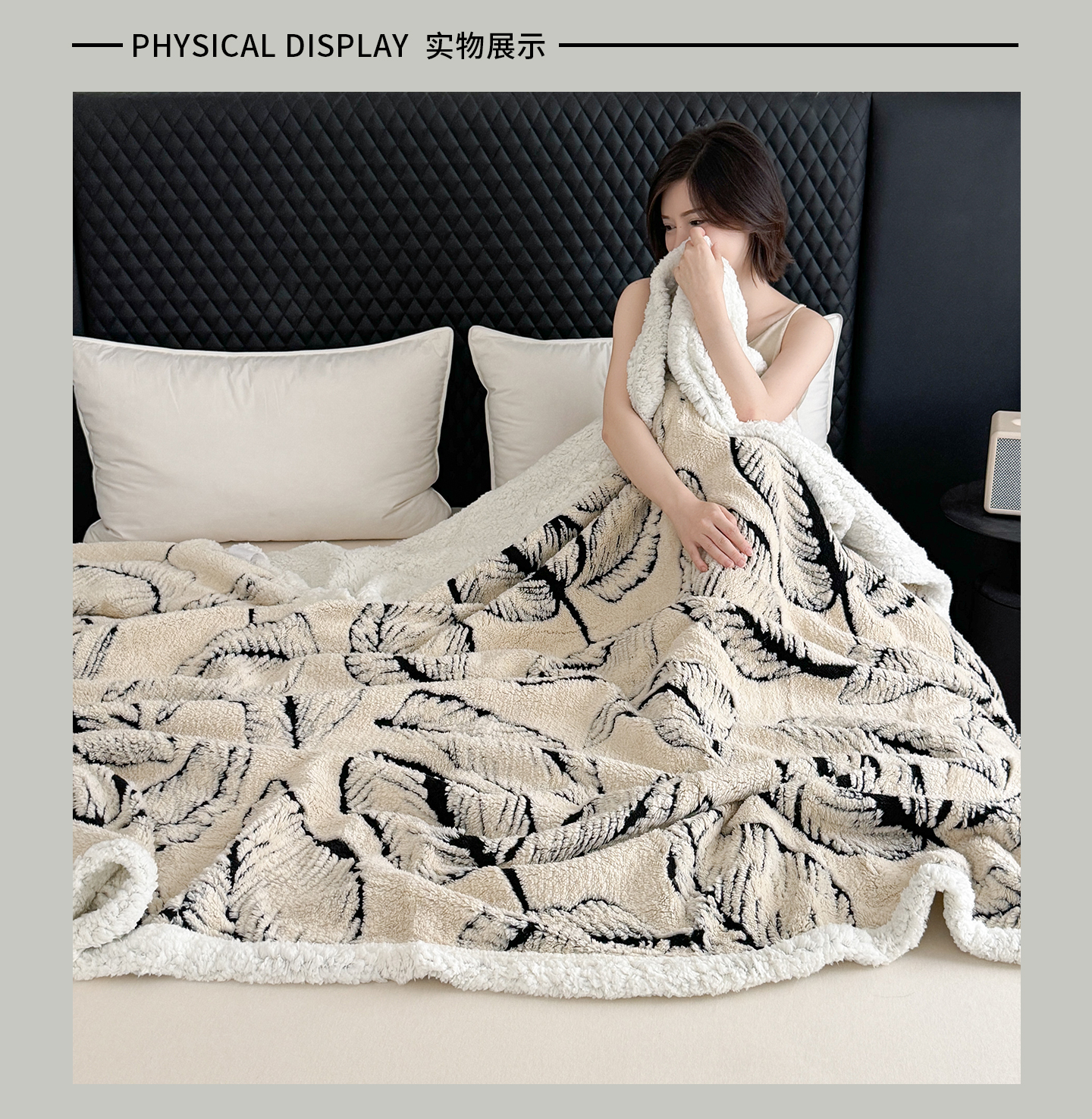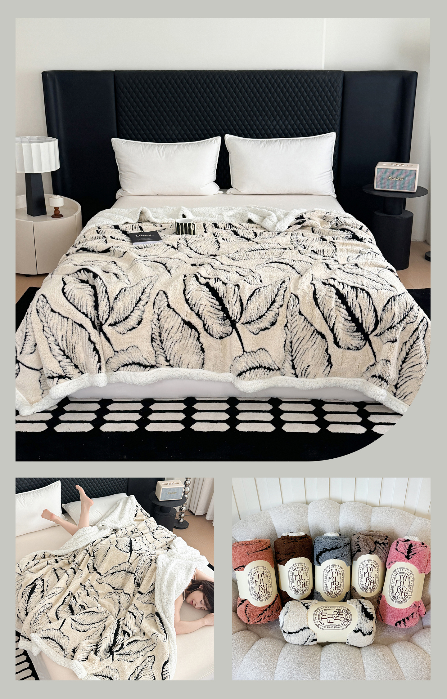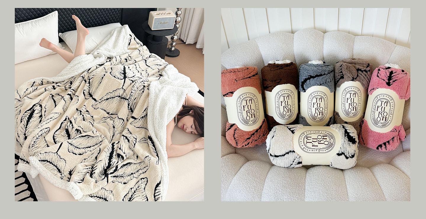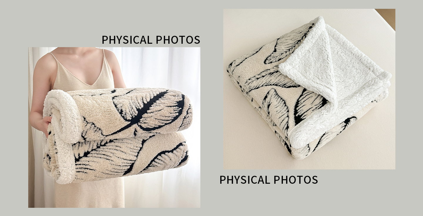 (总)丹本家纺 2025新款双层阳离子叶子提花塔芙绒羊羔绒跨境双层毛毯盖毯毯子,叶子白色,叶子粉色,叶子灰色,叶子橘色,叶子咖色,叶子驼色