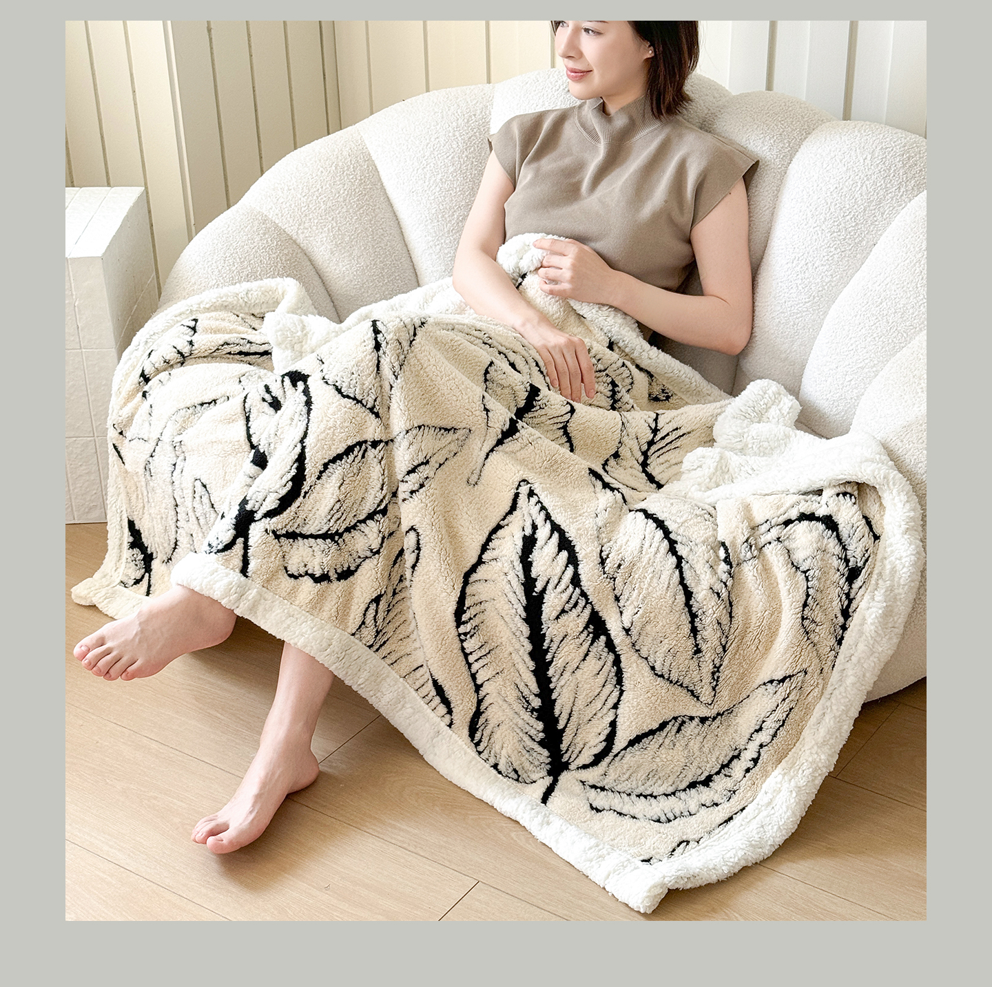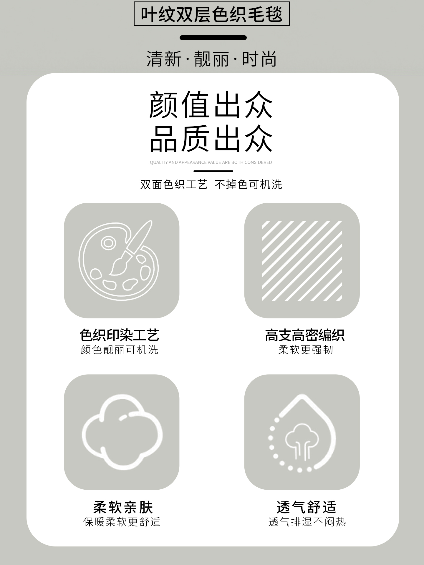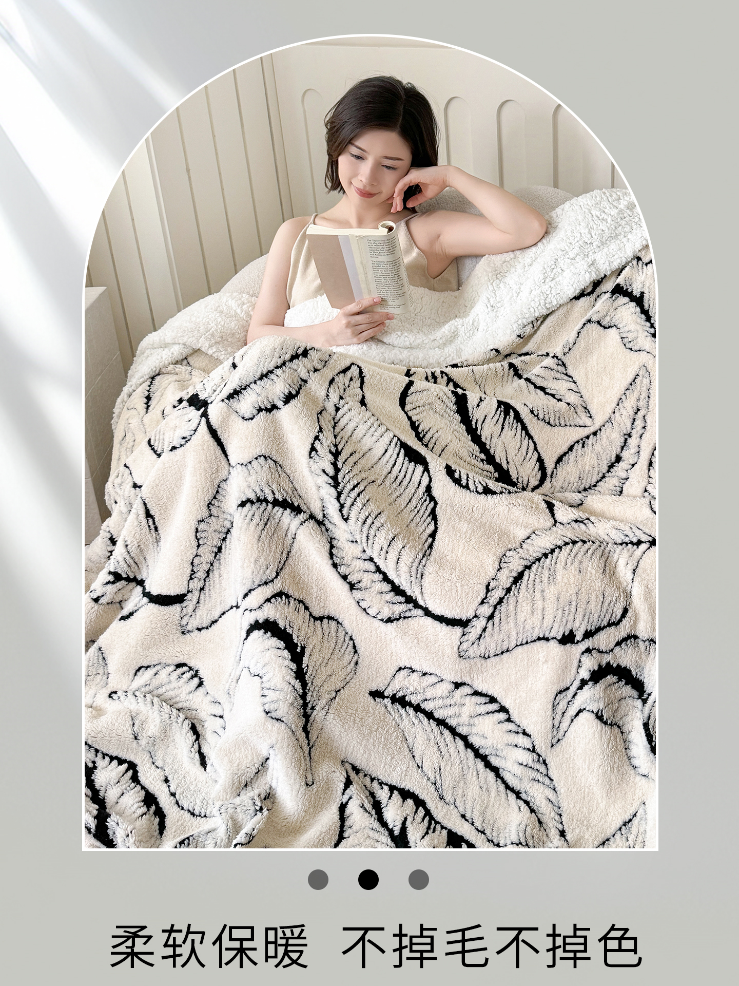 商品名称:丹本家纺 2025新款双层阳离子叶子提花塔芙绒羊羔绒跨境双层毛毯盖毯毯子 叶子白色
