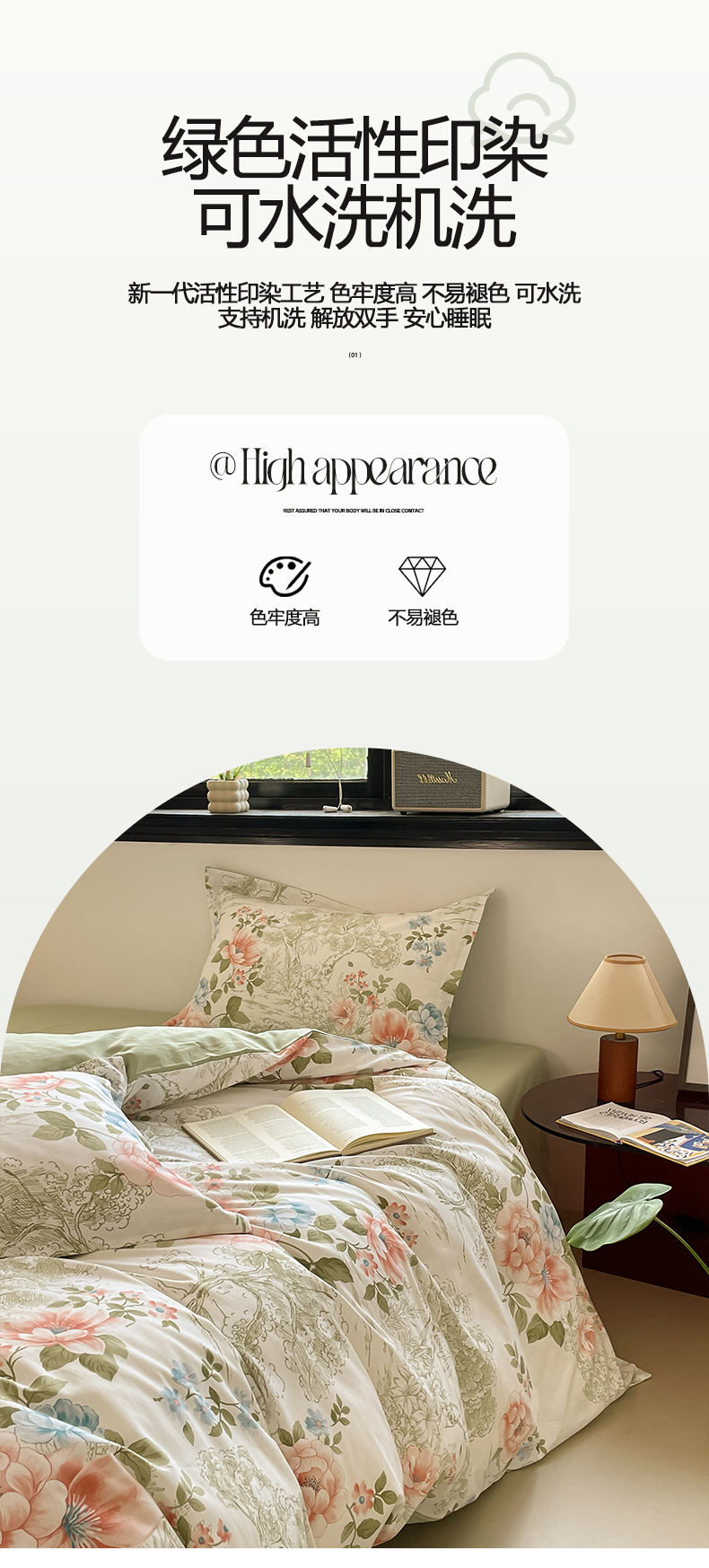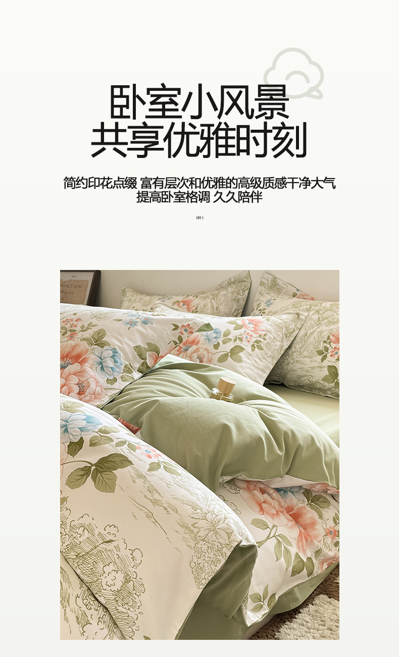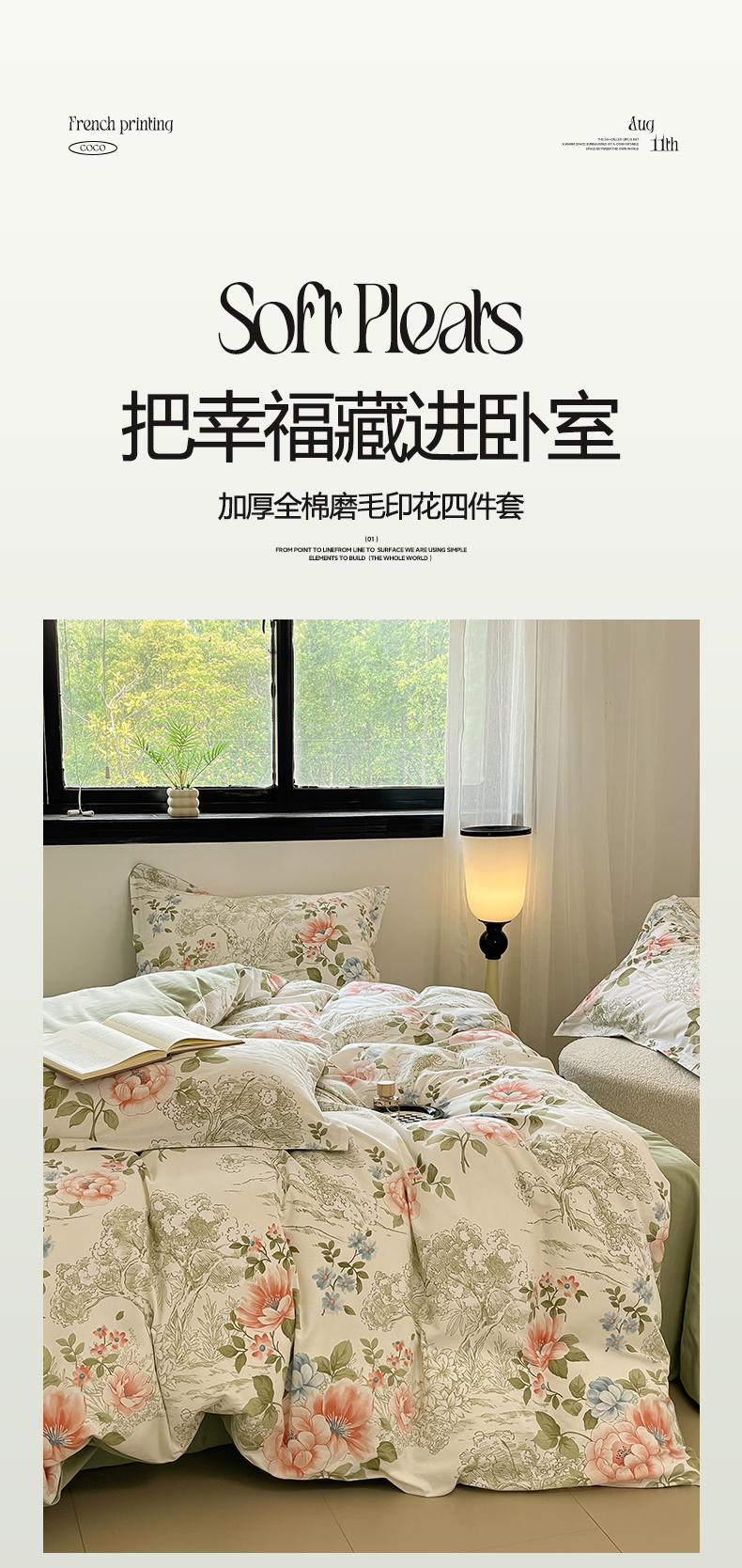 当前位置: 91家纺网 > 商品网购 > 床品套件 > 四件套 > 磨毛活性四件套 > 涵宸家纺 2025新款加厚全棉磨毛印花四件套--罗马系列 场景二 F怡然