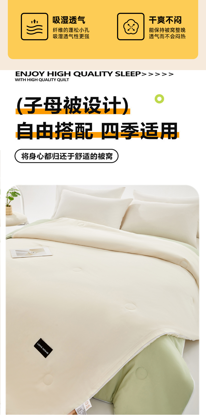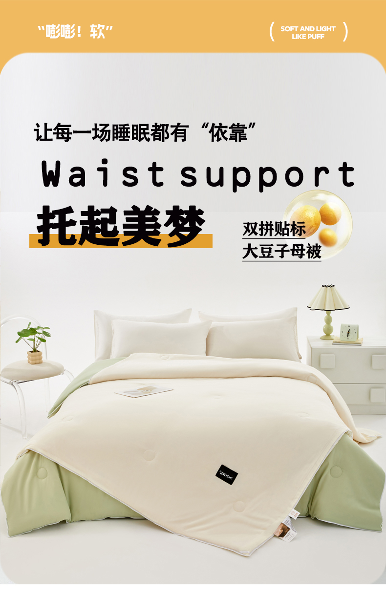 当前位置: 91家纺网 > 商品网购 > 被子 > 子母被 > VIP被业 2025新款双拼贴标大豆子母被冬被被子被芯 米拼绿