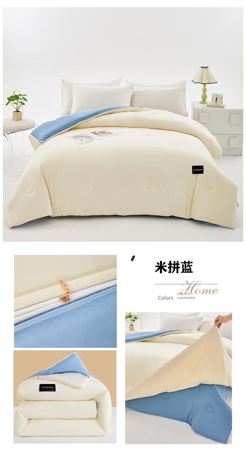 • 91家纺网 家纺一手货源 找家纺 (总)VIP被业 2025新款高克重加绒加厚牛奶绒冬被拼接设计被子被芯,白灰,灰色,蓝灰,米蓝,米粉