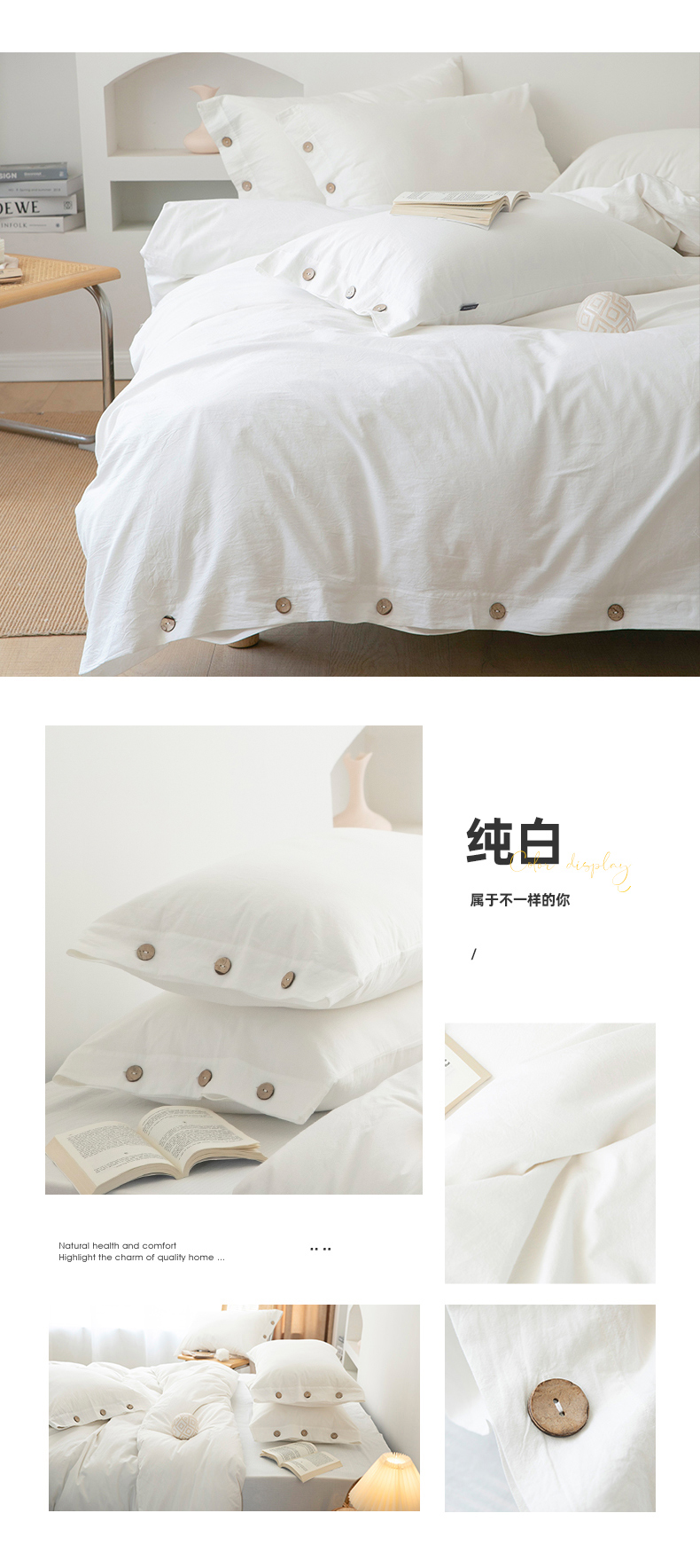 商品名称:(总)贝尔 PELLHOME 全棉水洗棉纽扣款四件套(春节不打烊)(可抖音代发)