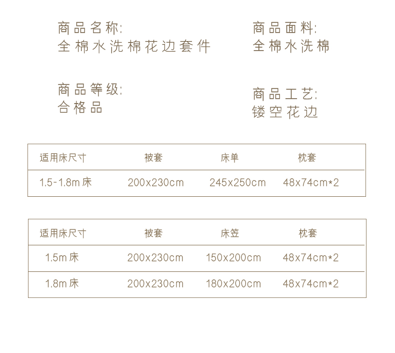 商品名称:(总)贝尔 PELLHOME 全棉水洗棉宽花边镂空刺绣四件套床单床笠场景一春节不打烊(可抖音代发)