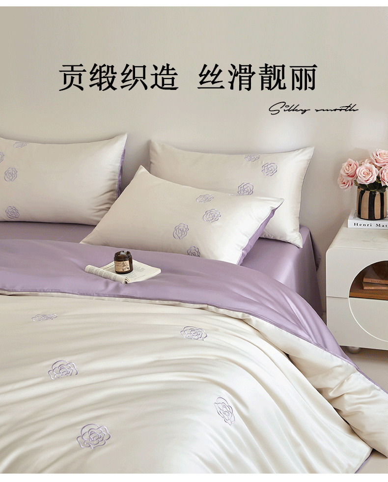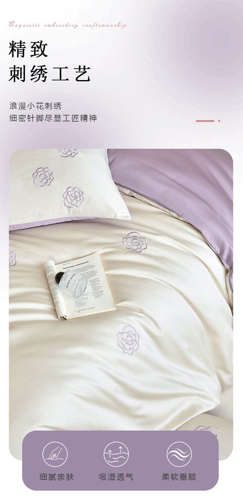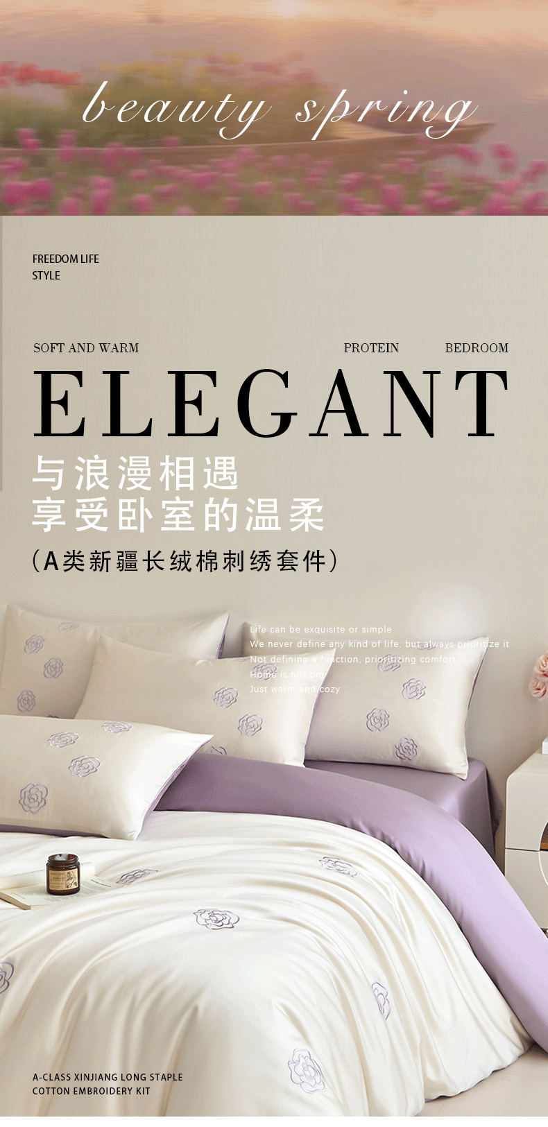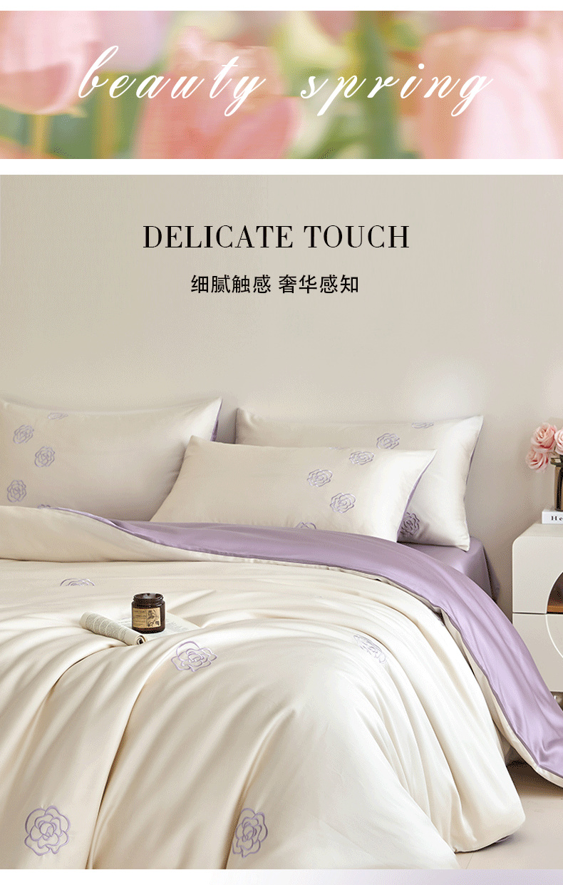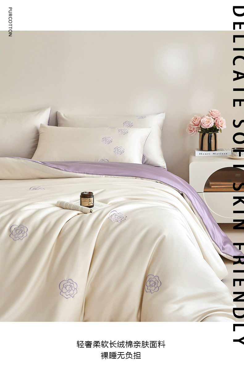 当前位置: 91家纺网 > 商品网购 > 床品套件 > 四件套 > 长绒棉四件套 > 618家纺 2025新款A类新疆长绒棉四件套--邂逅山茶 邂逅山茶紫