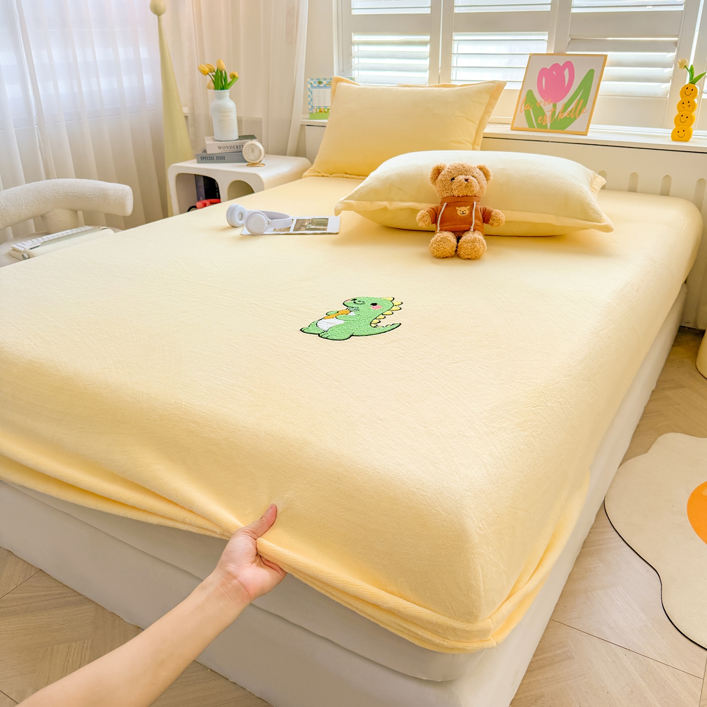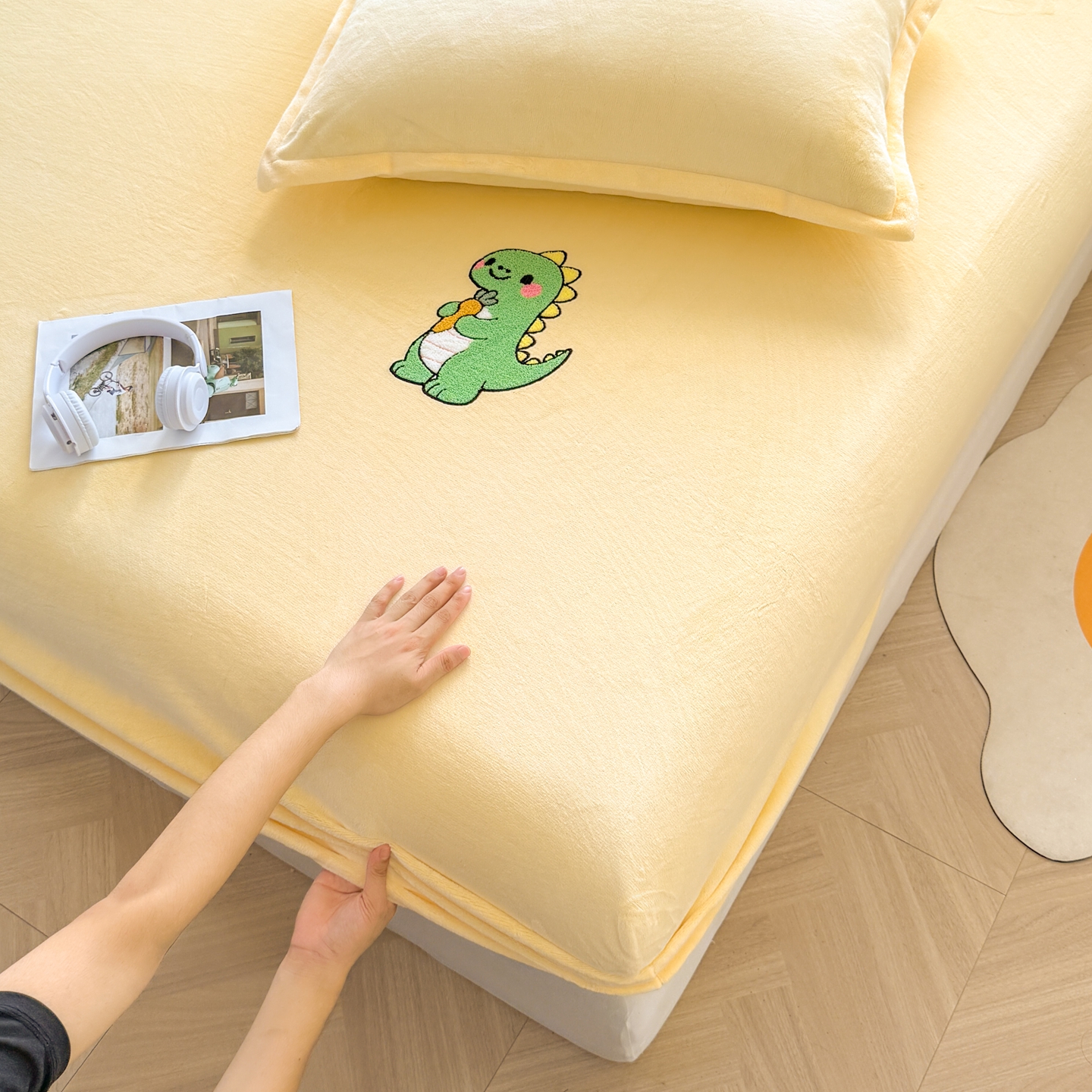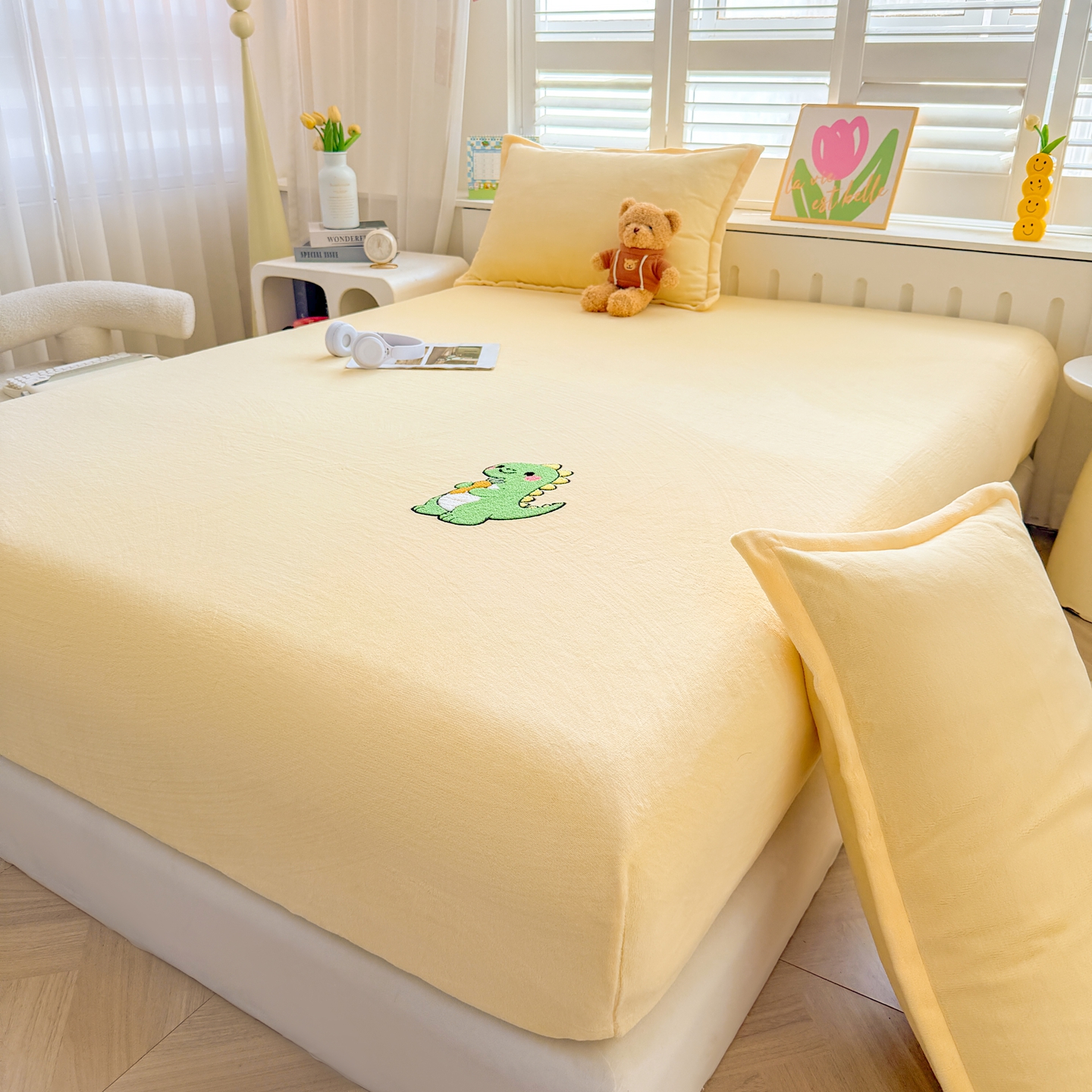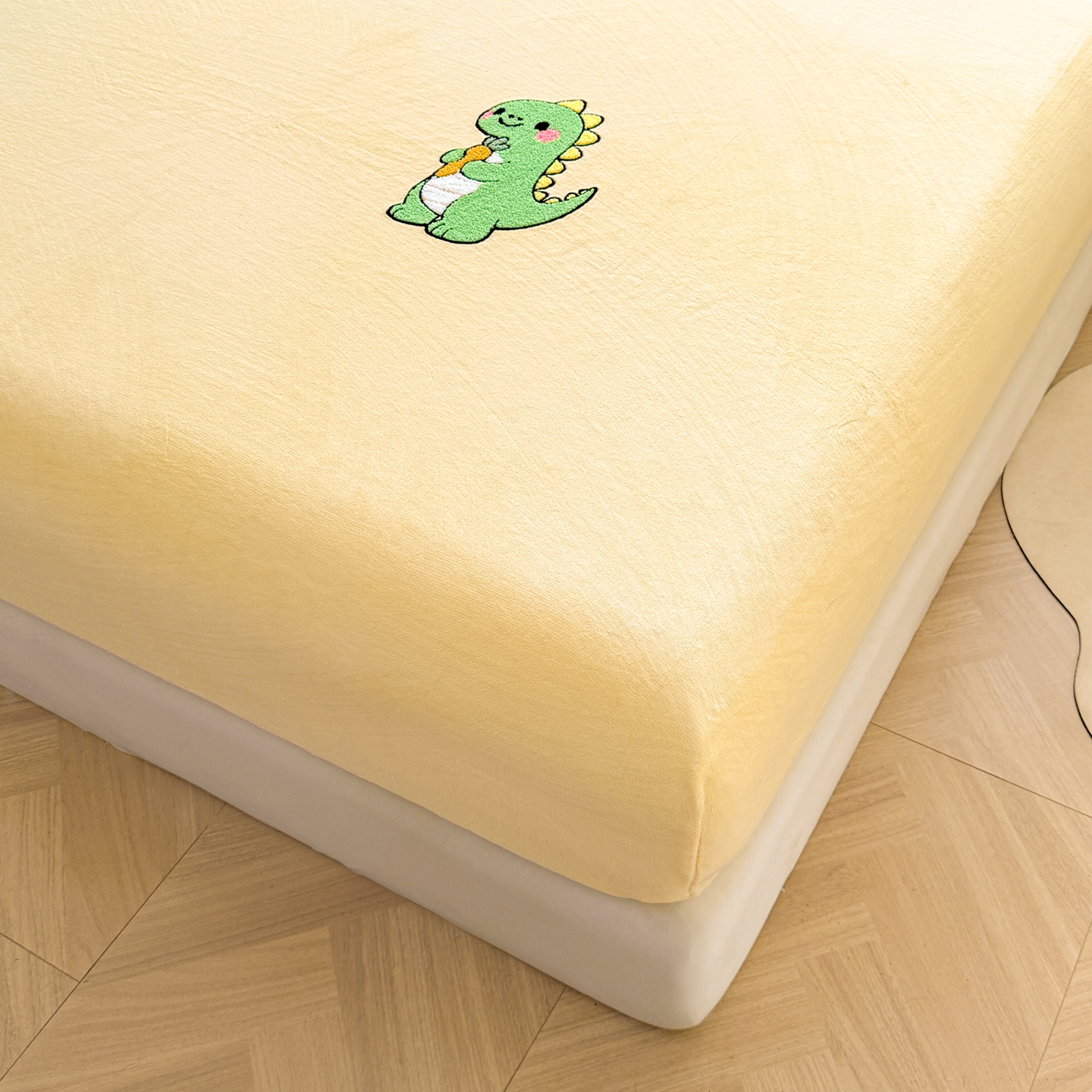 湘之帛 2025新款牛奶绒印花床笠 小恐龙-米黄