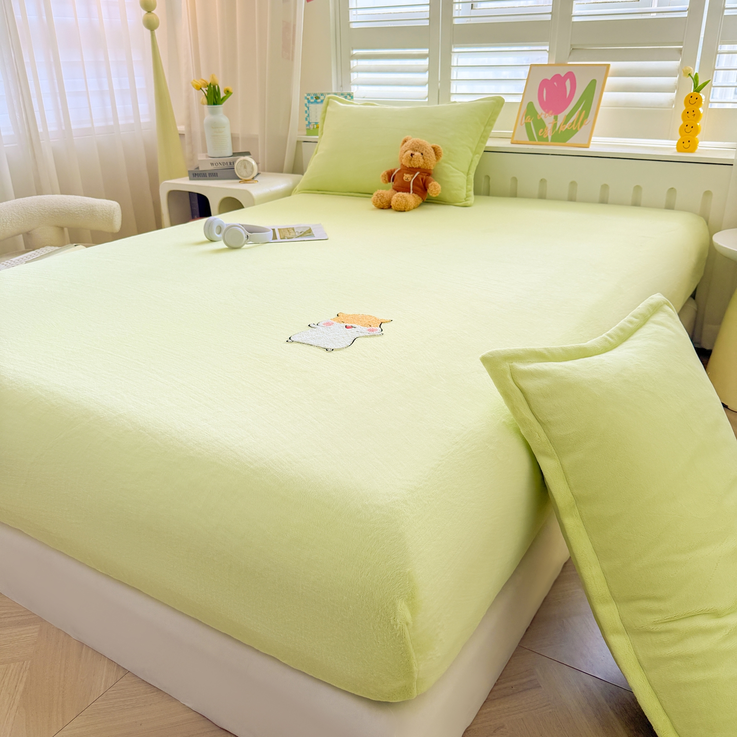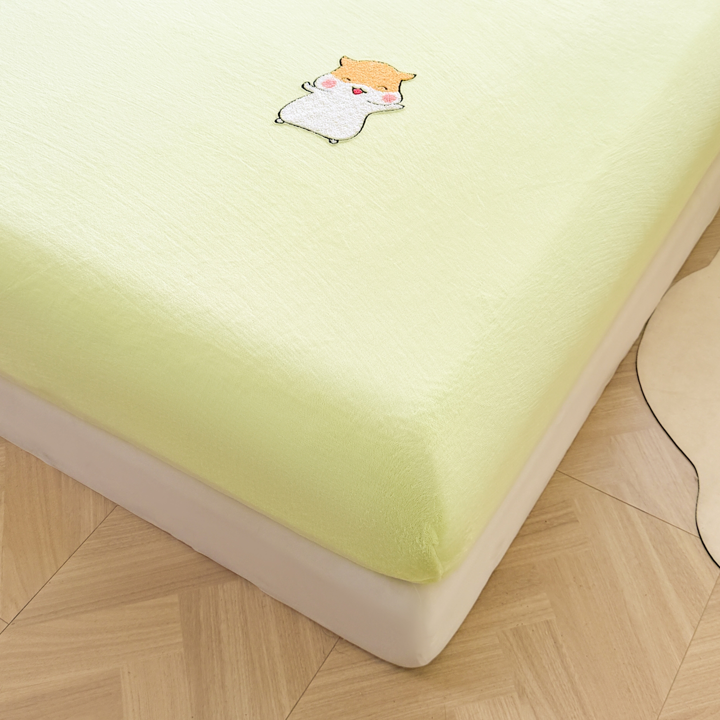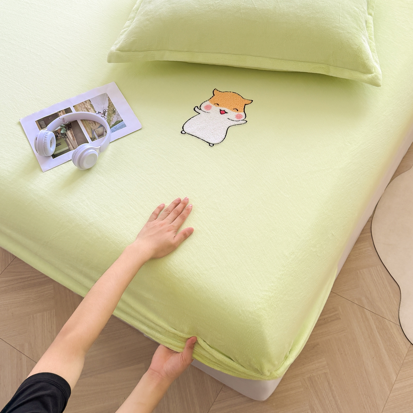 湘之帛 2025新款牛奶绒印花床笠 小松鼠-浅绿